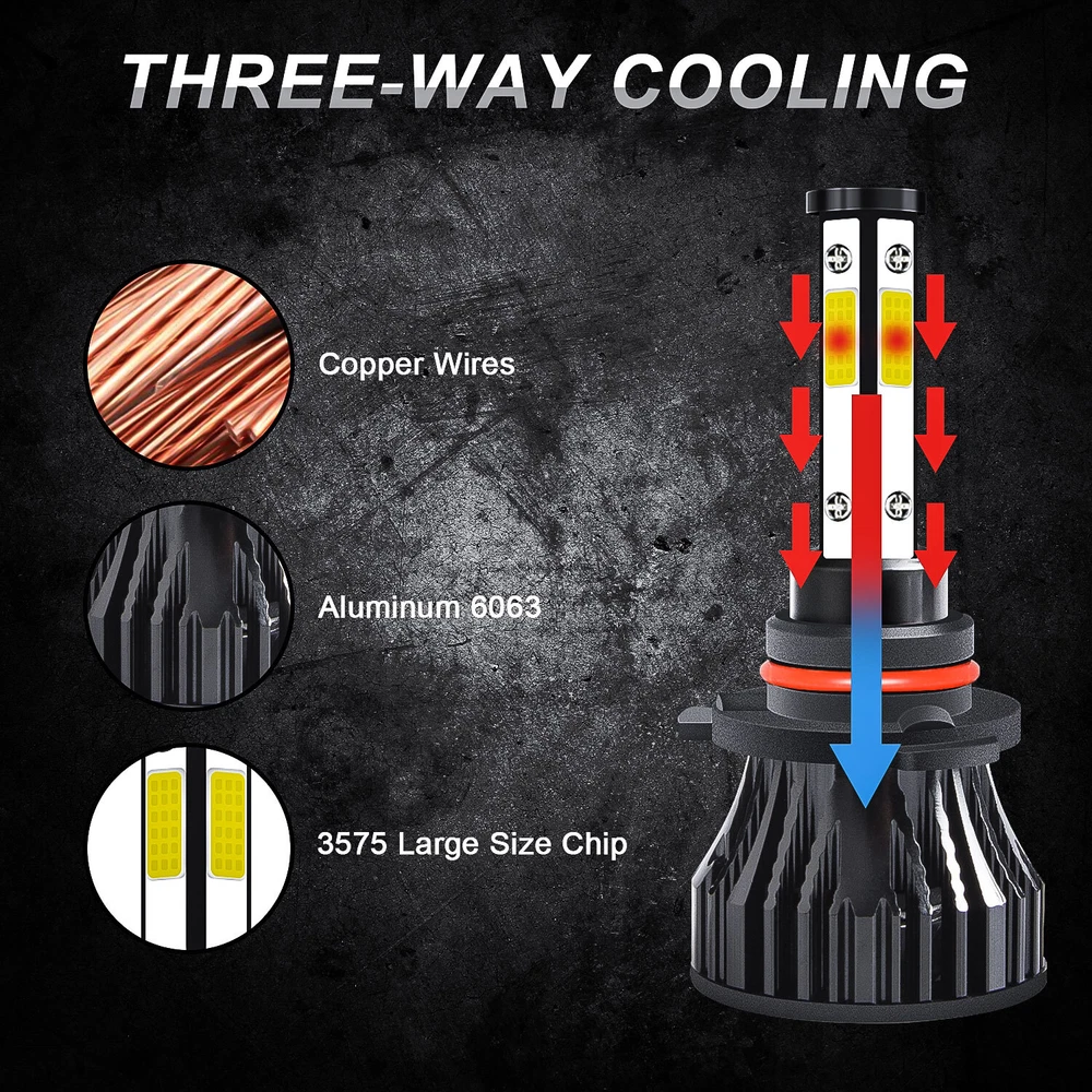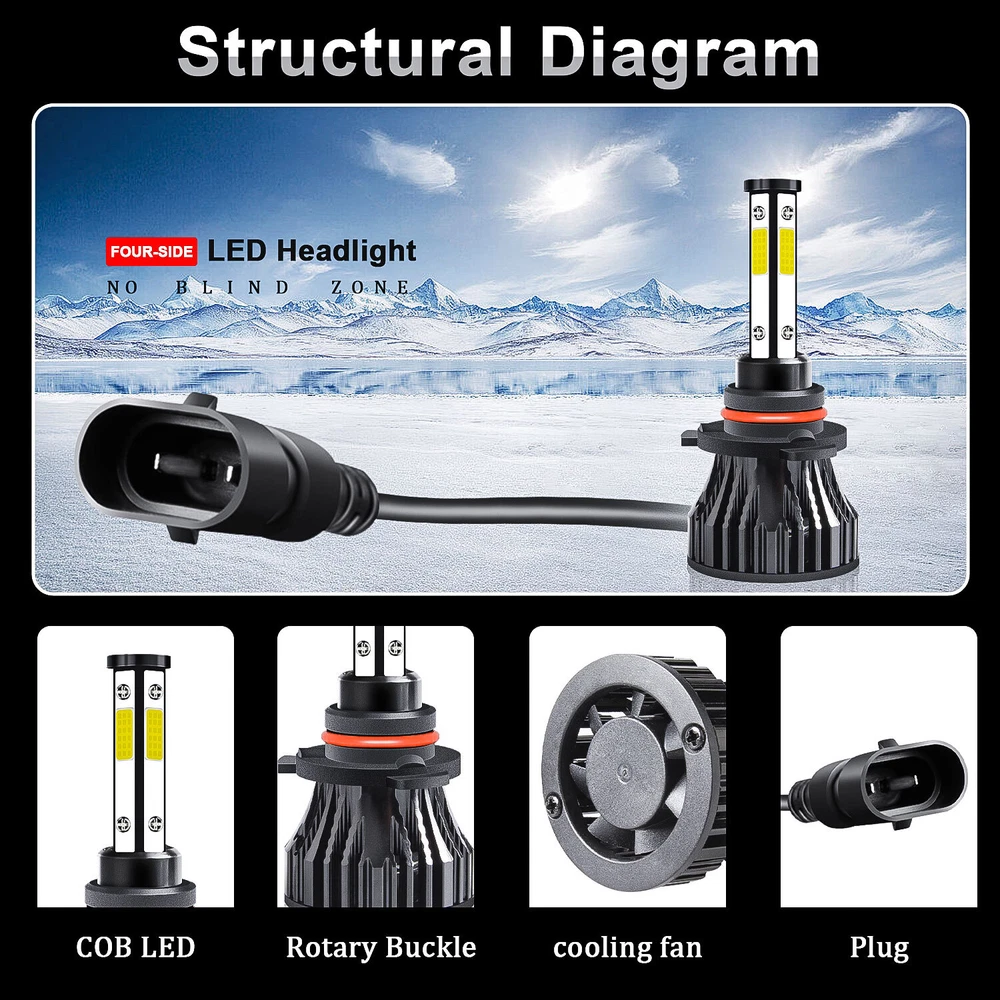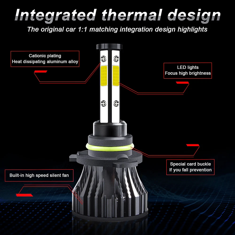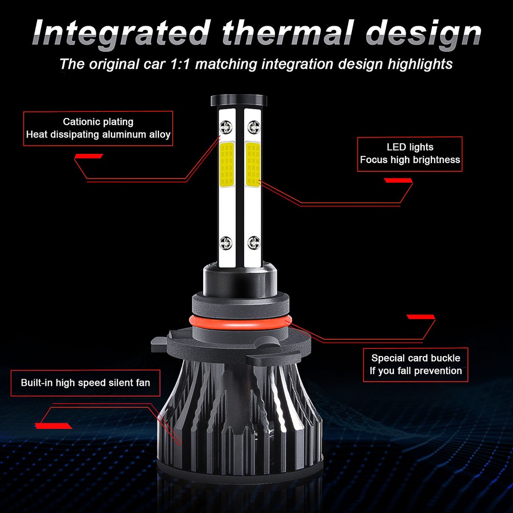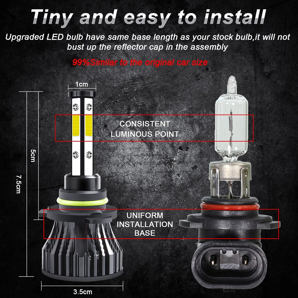 NOTE:Our LED bulbs only replace halogen or led headlamps.Can not replace the HID headlamps. Please double check before order. Product specifications: Product Name: LED Headlight Bulbs Luminous flux: 8000LM / SET (4000LM / bulb) Working voltage: DC9-32V IP rate: IP68 Wattage:52W Color temperature: pure white 6000K Materia:Aviation aluminum profile Product Features: *LINEAR LIGHT SOURCE - more durable and brighter - better focused beam technology *FULLY MATCHED ORIGINAL HEADLAMP - luminescence is consistent with halogen lampof original vehicle, installation need not worry - mini design *HIGH SPEED TURBINE FAN - imported high-speed turbo fan 10000RMP, in a short time to take more heat to make your lamp stable and long life *LONG SERVICE LIFE OF INTELLIGENT HEAT DISSIPATION - copper thermal conductor + aerial thermal conductive aluminum *HIGH BRIGHTNESSNO BLIND SPOTS - four side lamp bodyabright led lamp bead - the light type is full, no shadows, brightness and concentration increased by more than 50% Package Included: 2pcs LED Headlight Bulbs High Beam 2pcs LED Headlight Bulbs Low Beam
