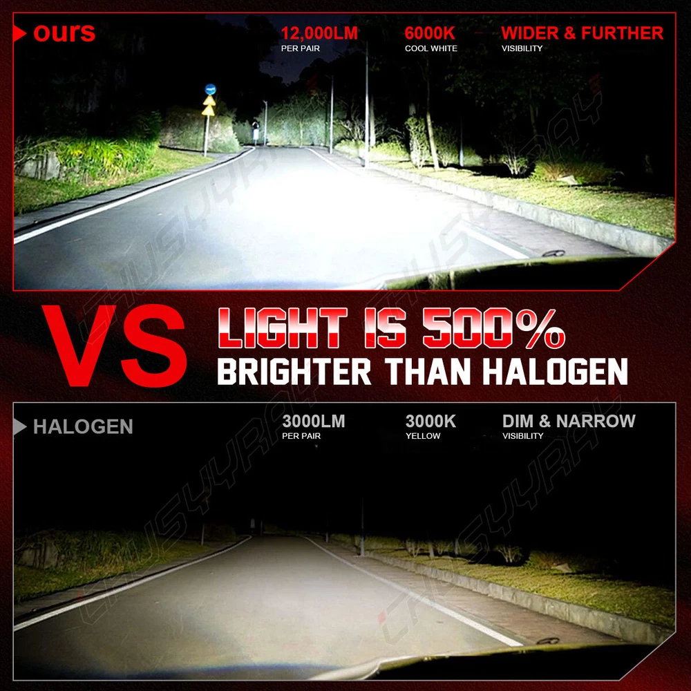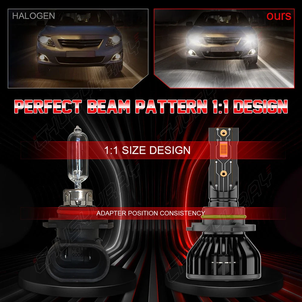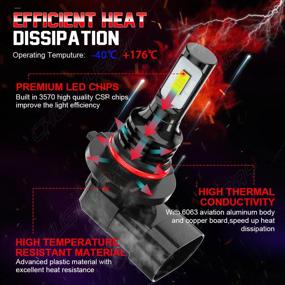Purchase Notes: *Compatible mentioned can not show up all Car model. Please check whether it is fit before purchase. *Professional installation is highly recommended if you have any difficult in installation. SPECIFICATIONS REAL 1:1 LED Headlight Beam Bulbs Kit White Bright Lamps Plug-Play Model: 9005/HB3&9006/HB4&9145/H10 Lumen: 12000LM/set Light Color: 6000K white LED TYPE: Upgrade Latest CSP LED LED Quantity(per bulb): 6pcs Temperature control: Without Heat Dissipation Mode: Aluminum heat dissipation Suitable for: Headlamp Service life: 50,000 hrs Waterproof: IP68 Features: *Real 1:1 plug-play size 1:1 Bulb size design, fit almost 99% vehicles installation. *Superior light type The light distribution distance is nearly 1mm, and the position of the luminescent point is the same as the original halogen lamp, which does not affect sight of the incoming car. *High brightness LED headlight features a better performance on brightness, providing further and wider visibility for you to see the deer, wild animals, falling rocks, or other obstacles in advance to ensure safer driving at night.(3-4 times brighter than the original car.) *Energy-saving Brighter light output with much less power consumption. *Simple installation 5-minute installation, plug-and-play design, with the exact specifications as factory halogen bulbs. No additional tools or modifications are needed. Simply twist off the original car lamp, insert the bulb, and rotate to lock it in place. If you encounter any issues with your vehicle model, please contact the customer service center for support. *EMC EMC resists electromagnetic interference to provide a safe driving environment. NOTE: Fits 99% of vehicles: In-built fully upgraded CANbus. Some sensitive car brands such as for Mercedes-Benz, for BMW, for Volvo, for Dodge, for Ford Fusion, for Ford Focus, for Ford Escape, etc, may flicker after installation (not a quality issue),specific Canbus