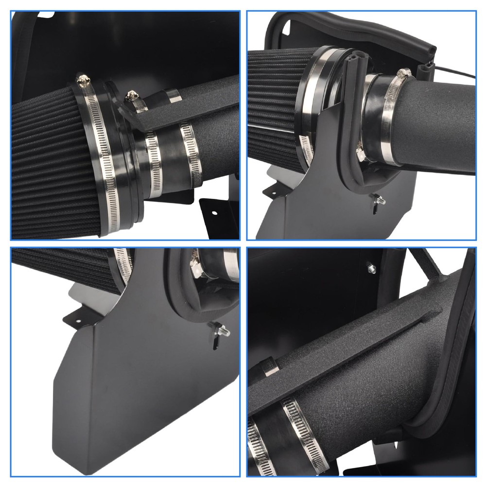【Compatibility】:This Cold Air Intake System Kit with GMC Chevro.let 1999 2000 2001 2002 2003 2004 2005 2006 V8 4.8L/5.3L/6.0L 【Features】:It's the ultimate performance Cold Air Intake Kit with Heat Shield. This steel heat shield that features a durable carbon-black coating for long lasting good looks. The air intake kit can help your engine to draw in more cold air resulting in better throttle response and higher explosive horsepower output 【Customer Supports】:This Cold Air Intake to make sure this part fits your exact vehicle, input your make, model and trim level into the garage tool. Our company attaches great importance to the shopping experience of each customer. If you find any quality problems, please in time 【Easy to Install】:This Cold Air Intake System can increase 8-10% of Horsepower and 6-8% of torque. Easy to install and easy to fit with simple tools. Professional installation in highly recommended 【Package Includes】:This 4" Cold Air Intake System Kit includes:1x coated steel heat shield, 1x Air Filter (Washable and Reusable), 1x 4" High Quality Silicone Coupler (NOT CHEAP RUBBER), 1x 4" High Quality Silicone Coupler 90° (NOT CHEAP RUBBER)