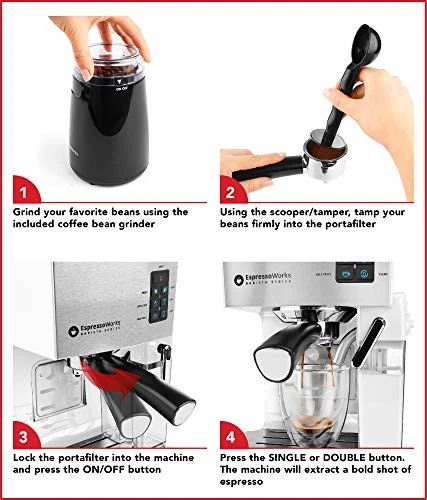 Return Policy Fast Delivery Trusted seller 19-Bar Espresso, Latte and Cappuccino Maker 10-Piece Set - Brew Cappuccino and Latte with One Button - Espresso Machine with Milk Steamer 1250W - Coffee Gifts (White) Product Description Enjoy Espresso, Cappuccino and Latte: With the touch of a button, our espresso machine easily brews 1 or 2 shots, cappuccino, latte, and froths milk. 19-bar espresso maker with advanced thermoblock heating system is ready to use in just 45 seconds One-Touch Control Panel with LED Indicators: Simply press one of the 4 pre-made drink selections on the panel to brew a tasty latte, foamy cappuccino, creamy espresso, or frothed milk. Heat tray on the top of the machine warms your cup before brewing Deluxe Coffee Gifts for Coffee Lovers: Delight the coffee enthusiast in your life with an all-in-one espresso gift set that contains everything needed to make iced and hot espresso drinks all year long 10-Piece Set: Cappuccino machine also includes an electric coffee grinder, high-quality portafilter with single and double shot baskets, measuring spoon and tamper, 2 double-walled espresso cups, and 2 double-walled cappuccino cups Latte Art: Latte machine also includes 16 cappuccino and latte art stencil templates to impress others or yourself with your barista skills Espresso Machine with Grinder: Espresso grinder included for a fresh cup. 120V plug-in coffee grinder will grind coffee and espresso beans to your desired level. Grind espresso beans finely, but not too powdery for a full-bodied cup of espresso Countertop-Friendly Espresso Machines for Home: Espresso and latte machine neatly fits on the countertop. Clear, removable water tank with handle has a 1.4L capacity. machines carry a 1-year manufacturer warranty Shipping Returns Payment Shipping Shipping is FREE to all addresses other than APO/PO boxes in the lower 48 states. All our stock ships from US-based warehouses. Shipped via USPS or UPS (depending on location and package weight) Unless stated otherwise, all orders will ship within 24-72 hours of your payment being processed. Check our feedback to see the great reviews of FAST shipping we offer. Returns Seller does not accept returns Payment We currently accept payment via eBay managed payments only. Once payment is cleared, we will dispatch your shipment within 1-3 business days. Please refer to the "Shipping" tab for more information regarding shipping speed to your destination.