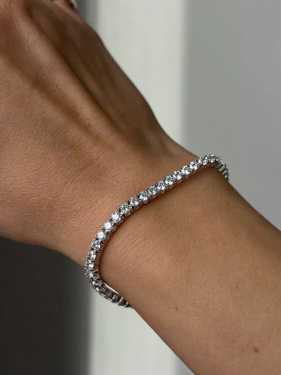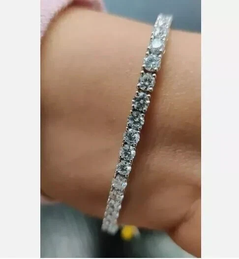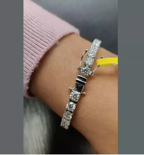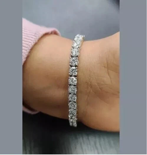 Main Stone Creation: Unknown Handmade: Yes Secondary Stone: Diamond Main Stone Color: White Closure: Lobster Charm Type: Tennis Sizable: Yes Main Stone Width: 4 mm Color: White Base Metal: Silver Main Stone: Diamond Metal Purity: 925 Wholesale: Yes Customized: Yes Main Stone Shape: Round Gemstone Clarity Grade: Eye Clean Style: Tennis Main Stone Treatment: Not Enhanced Main Stone Depth: 4 mm Setting Style: Solitaire Brand: The Jewel Box Diamond Color Grade: D Cut Grade: Excellent Country/Region of Manufacture: United States Occasion: Anniversary, Birthday, Christmas, Engagement, Graduation, Mother's Day, Valentine's Day, Wedding Theme: Beauty Chain Type: Tennis Colored Diamond Intensity: Fancy Personalize: Yes Shape: Round Country of Origin: United States Certification: The Jewel Box Certified Collection: The Jewel Box Bracelet Type: Bracelet Total Carat Weight: 19.00 TCW Item Length: 7 in Seller Warranty: Yes Diamond Clarity Grade: Very, Very Slightly Included (VVS1) Features: Adjustable, Nickel-Free Main Stone Length: 4 mm Number of Diamonds: 21 Metal: Sterling Silver