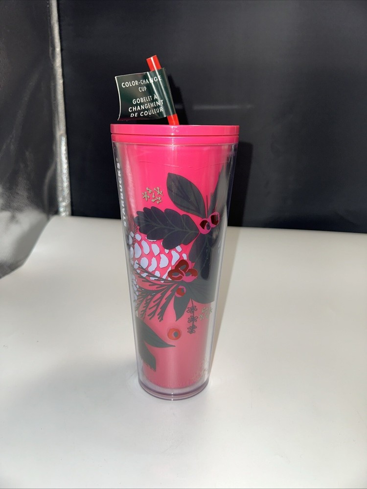 Home#19D Starbucks Pink Floral Color Changing Cup Christmas Holiday 2021 Tumbler