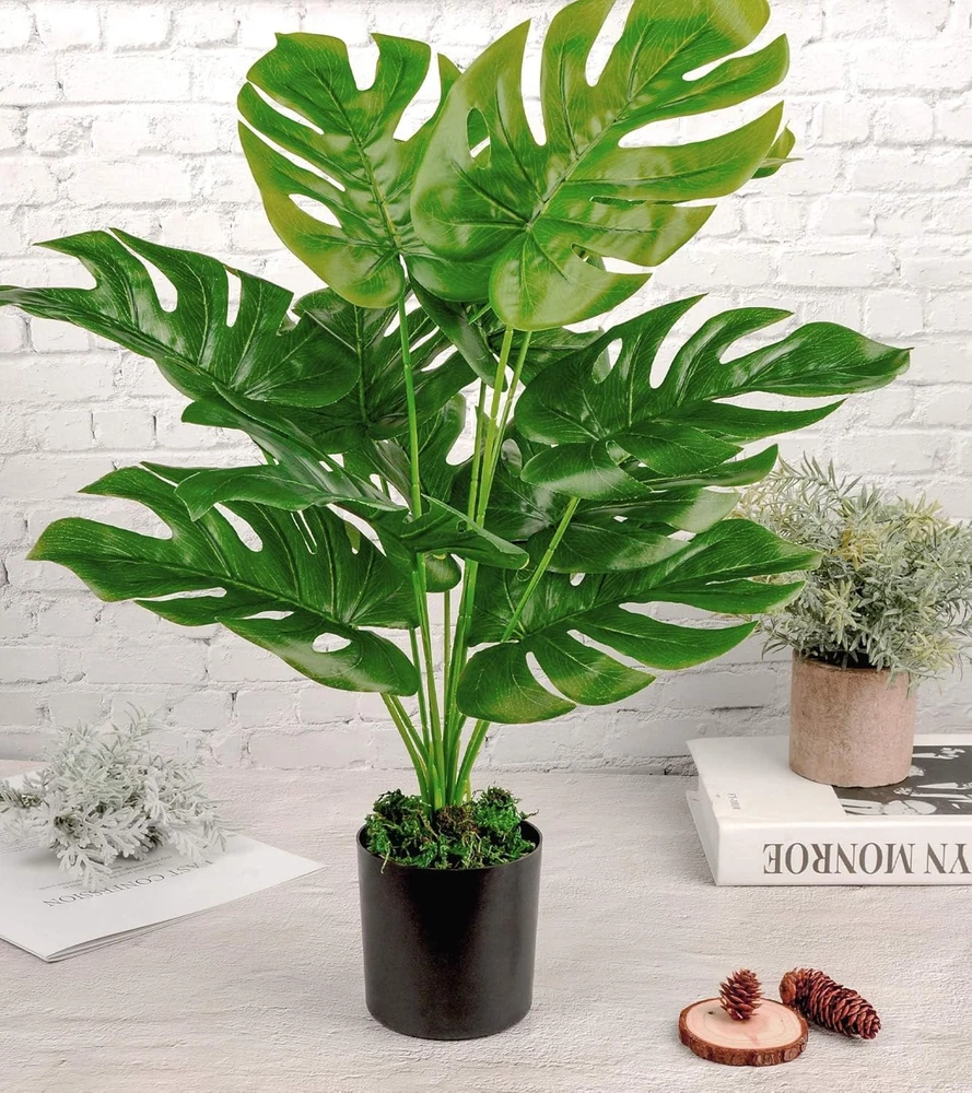 Toopify 19" Large Fake Plants Artificial Palm in Pot for 19Inch, Green Product Details Brand: Toopify Plant or Animal Product Type: Ficus Color: Green Material: Plastic Product Dimensions: 3.93"D x 3.93"W x 19"H Recommended Uses For Product: room decor aesthetic, bedroom decor aesthetic, desk accessories, room decor, home decor, bathroom decor, boho decor, bedroom decor, kitchen decor, living room decor, office decor Specific Uses For Product: Hotel Decor, Home Decor, Office Decor, Exhibition Indoor/Outdoor Usage: Indoor Package Information: Pot Occasion: Bridal Shower, Wedding, Baby Shower, Anniversary, Birthday Number of Items: 1 Room Type: Bathroom, Kitchen, Bedroom, Living Room, Dining Room Container Material: Plastic Special Feature: Dust Resistant, Fade Resistant, UV Resistant Container Shape: Cylinder Included Components: Container Item Package Quantity: 1 Unit Count: 1.0 Count Seasons: All Package Type: Traditional Manufacturer: Toopify Item Weight: 1.1 pounds 19 Inch Tall: The dimensions of fake outdoor plants with pot: 21.6"H , planter: 3.93"H X 3.54"D Adjustable Branches and Leaves: Our artificial plants outdoor has sturdy inner metal wires, you can adjust the trunk and insert leaves to the shape you liked No Maintenance Required: The fake palm tree will never wither or die, it requires no watering, sunlight or soil Material: This outdoor artificial plants is made of durable and premium polyester material which looks like the real tree Perfect Decoration: Our faux plants outdoor deliciosa tree has the realistic branches and leaves, which let you feel the presence of nature. Perfect for any room or office decor