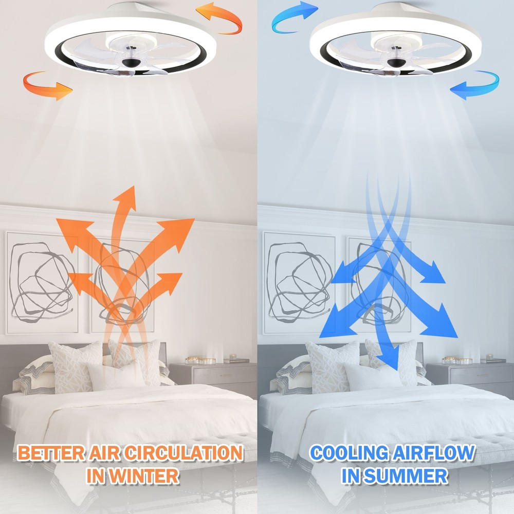 Introducing the perfect addition to your modern home a ceiling fan with a stunning matte finish that will elevate any room's décor. With its six fan speeds and three light temperature options, this fan provides you the ultimate cooling and illuminating experience . Its reversible whisper-quiet motor ensures that the fan operates smoothly and quietly, giving you the ultimate relaxation experience. With phone app control, you can easily operate the fan from anywhere in the room, adjusting the 6 fan speed or 3 light temperature to suit your needs.Features: Eye-catching matte white finish adds a touch of modern style to your décor Remote control and phone apps control give your the most convenient ceiling fan experience. 6 fan speeds, 3 light temperatures and dimming function are for you Free Shipping Over $49.99* Details CurveCurio 19" Matte White Flush Ceiling Fan App Control Remote Control 6 Speed Product Description: Introducing the perfect addition to your modern home a ceiling fan with a stunning matte finish that will elevate any room's décor. With its six fan speeds and three light temperature options, this fan provides you the ultimate cooling and illuminating experience . Its reversible whisper-quiet motor ensures that the fan operates smoothly and quietly, giving you the ultimate relaxation experience. With phone app control, you can easily operate the fan from anywhere in the room, adjusting the 6 fan speed or 3 light temperature to suit your needs. Features: Eye-catching matte white finish adds a touch of modern style to your décor Remote control and phone apps control give your the most convenient ceiling fan experience. 6 fan speeds, 3 light temperatures and dimming function are for you to choose from, able to meet the needs of all kinds of occasions Reversible whisper-quiet motor that circulates air in the winter and cools your space in the summer. Dimensions: 19.7 * 19.7 * 4.9 Additional Info : 19-inch ceiling fan is perfect for small rooms (up to 75 sq ft.) Slope Ceiling supported up to 15 degrees This product is UL listed for a dry environment MaterialSteel, Plastic ColorWhite FinishMatte LightIncluded LED Kit Light Wattage28W Light Kit replaceableYes DimmableYes Light color tone3warm light(3000k); warm white(4500k); white light(6000k) Motor wattage15W PRM501-599-692-788-892-994 (6 speeds) Fan blades7 reversibleYes Phone App ControlYes RemoteYes Remote control included (battery not included, please use AAA batteries) WarrantyLifetime on motor and one year on all the other parts