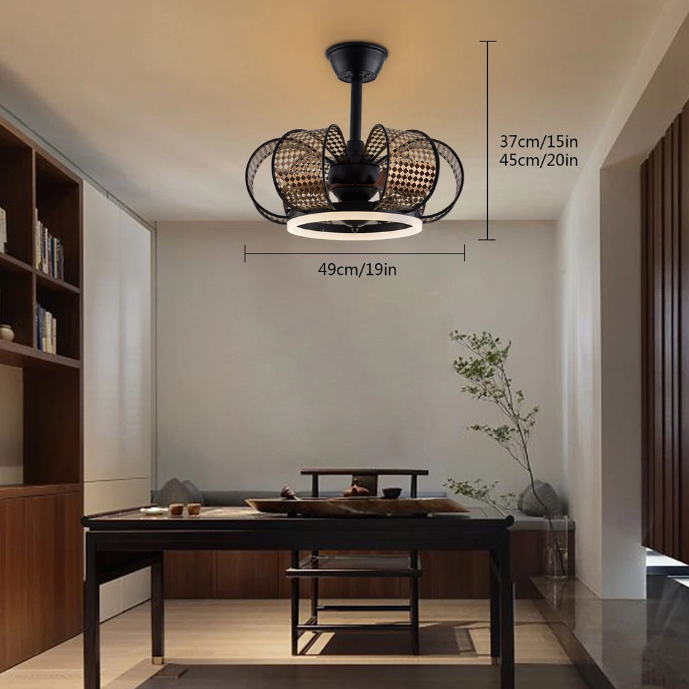 Specification Material: Iron Style: Retro Color: Black, Gold Process: High-temperature Baking Paint Voltage: 85-265V Power: 40W(Fan), 24W(Light) Efficiency: E Motor: Pure Copper Motor Light Source: LED(Included) Applicable Area: 10-15m2/107.63-161.45ft2 Timing: 1, 2, 4 h Fan Gears: 6 Light Colors: White, Yellow, Neutral Number of Lampshades: 6 Number of Fan Blades: 3 Mounting Type: Ceiling Mount Shape: Flower Lampshade Size: 49*49*20cm/19*19*7.87in LED Light Diameter: 30cm/11.81in Base Diameter: 15cm/5.9in Product Height: 45cm/20in, 37cm/15in Support Rod Height: 12cm/4.8in, 25cm/9.8in 💖 WELCOME 💖 Description The Exquisite Ceiling Fan Lamp Not Only Adds Elegant and Luxurious Style to the Room but Also Creates a Comfortable and Warm Home Environment for You. the Three-color Adjustable Led Ring Light Band Allows You to Easily Adjust the Light Color According to Your Needs. at the Same Time, the Ceiling Fan Lamp with the Function of Timing Gives You a Better Experience. Key Features High-quality Materials : Our Ceiling Fan Light Is Made of High-quality Iron. the High Hardness and Strength of the Iron Make the Lampshade Strong and Durable. Six Wind Speeds : Our Ceiling Fan Light Has Six Wind Speeds to Meet Your Different Needs. the Higher Wind Speed Can Cool the Temperature Quickly, While the Middle Wind Makes You Feel the Natural Cool Breeze. the Lower Speed Wind Can Keep You Cool at Night Without Getting Cold. Pure Copper Motor : This Ceiling Fan Light Uses a Pure Copper Motor to Power It. the Pure Motor Has less Resistance so It Is More Durable. and Compared with the Aluminum Motor, the Pure Copper Motor Generates less Heat and Is More Energy-efficient. Easy to Operate : Our Ceiling Fan Light Is Equipped with Remote Control. Whether Lying or Sitting You Can Control the Wind Speed by Pushing the Button, Which Is Very Easy and Convenient. Timing Function : Our Ceiling Fan Light Has an Intelligent Timing Function, You Can Set the Timing for 1, 2, or 4 Hours According to Different Needs. the Thoughtful Timing Function Guards the Health of You and Your Family so That You Can Sleep with Peace of Mind. Quiet Operation : Our Ceiling Fan Light Uses a Low-noise Pure Copper Motor. Such a Low-noise Operation Fan Light Creates a Cool, Comfortable, and Quiet Environment for You, Whether Reading, Studying, or Sleeping Without Being Disturbed. Wear-resistant and Rust-proof : the Ceiling Fan Light Adopts an Exquisite High-temperature Baking Paint, so It Is Wear-resistant and Rust-proof . Such a Baking Paint Surface Makes This Ceiling Fan Light More Durable. Easy to Clean : the Baked Lacquer Surface and Smooth Fan Blade of This Ceiling Fan Light Are Easy to Clean. You Only Need to Use a Damp Cloth to Wipe Gently. Eye Protection : the Ceiling Fan Lamp Uses a Non-flashing Led Ring Light Band to Provide You with Soft and Non-dazzling Light. Whether You Are Watching Tv or Reading at Home, It Can Protect Your Eyes from Vision Loss. Retro Appearance : Six Petal-shaped Hollow Lampshades, Brown Fan Blades, and a Black Paint Base Create a Retro Elegant Style, Which Can Decorate Rooms of Different Styles. Adjustable Heights : t he Product Comes with Two Different Lengths of down Posts to Meet Different Needs and Different Ceiling Heights. the Total Height of the Product Is 20/15 Inches When the Long/Short Post Is Installed. Customer Service : We Aim to Provide Quality Products and Services. If You Have Any Problems, Please Feel Free to Contact Us. We Will Reply and Solve the Problem for You As Soon As Possible. Details Wider Fan Blades : the Fan Blades Are Widened to Increase the Contact Area with the Air, Which Is Not Only Durable but Also Strong in Wind Power. Mesh Lampshade : the Unique Mesh-type Lampshade Makes the Light More Even and Soft, Which Will Bring You a More Comfortable Experience. Thickened Base : the Base Is Thickened to Make It More Sturdy. the Thickened Baking Paint Base Can Support the Lamp Very Well. Remote Control Rack : the Wall-mounted Remote Control Rack Allows You to Fix the Remote Control on the Wall for Easy Access to Prevent Loss. Application This Ceiling Fan Light Is Suitable for Use in Bedrooms, Living Rooms, Study Rooms, Etc. with an Area of 107.63-161.45ft 2 . Our Ceiling Fan Light Will Bring You Bright Light and a Cool Breeze. Package Included 1*Ceiling Fan Light 1*Remote Control 1*English User Manual All Accessories Needed for Installation Notes Please Allow the Slight Color Difference Caused by the Shooting Light and 1-3cm Error Due to Manual Measurement. Please Make Sure You Do Not Mind Before You Order. Payment Delivery details Terms of sales About us Contact us Payment We accept ebay payment 。 Fees such as import duties, taxes are not included in the item price or shipping costs. These charges are the buyer's responsibility. Delivery details Shipping: 2-9 working days to: USA Terms of sales We maintain high standards of excellence and strive for hundred percent customer satisfaction. Feedback is very important to us. We hope that you contact us immediately before you give neutral or negative feedback, so that we can address your concerns. It is impossible to address issues if we do not know about them! About us Your satis faction is our ultimate goal. We work hard to earn your trust and future business. Our certified technicians have tested each item before shipping. The unit comes with 1 year limited warranty on all manufacturing defects. a) If you receive a defective item, you may return it or ask for a discount. Please contact us within 14 days after you receive the package. b) What you returned must be intact and in its original packaging as re? u. Customer is responsible for shipping costs of the returned item. c) We will cover the cost of shipping back t with the shipping rate indicated in the registration page. We will send you a new unit or refund the full payment you paid. Thank you. Contact us Business Hour Business Hour: Monday To Friday: 8:30 AM to 5:00 PM (Be
