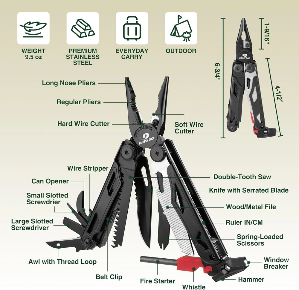 Compact 19-in-1 Multitool: Stainless Steel EDC Gear for Outdoors & Emergencies ‹ › ‹ › ‹ › ‹ › ‹ › ‹ › ‹ › ‹ › ‹ › Compact 19-in-1 Multitool Enhance your outdoor experience and be prepared for any situation with our exceptional Compact 19-in-1 Multitool. Crafted from ultra-durable stainless steel, this everyday carry (EDC) gear is not only designed for convenience but built to last. With an impressive range of functions, this multitool embodies the spirit of adventure! Features: 19-in-1 Functions: Long nose pliers, regular pliers, hard wire cutter, soft wire cutter, awl with thread loop, large slotted screwdriver, small slotted screwdriver, can opener, wire stripper, double-tooth saw, wood/metal file, window breaker, hammer, spring-loaded scissors, whistle, fire starter, ruler (in/cm), belt clip, and serrated blade knife. Essential Survival Tools: Equipped with a reliable window breaker, a strong hammer for repairs, a quick ignition fire starter, and a high-pitched whistle for emergency situations. Convenient Self-Locking Design: Effortlessly open and close the tools within the handles for swift accessibility, ensuring safety without compromising on efficiency. EDC Pouch & Pocket Clip: Comes with a durable black pouch and pocket clip for effortless portability. Slip it over your belt or backpack strap for easy access. Premium Materials & Construction: Made from high-quality stainless steel, ensuring longevity and corrosion resistance for a variety of outdoor activities. Make Every Moment Memorable: Gift Dad something meaningful this Father's Day. This multitool strikes the perfect balance between practicality and personalization, making it a thoughtful choice that shows appreciation and understanding. Why Choose Our 19-in-1 Multitool? When exploring the great outdoors or preparing for emergencies, don’t settle for less than the best. Our Compact 19-in-1 Multitool is engineered to meet your every need, providing unparalleled function and reliability in both everyday uses and critical situations. Elevate your adventure and ensure you are always prepared with this multifunctional, stylish essential! Order yours today and be ready for life's unexpected moments! Shipping Free & Fast Shipping - We offer free shipping to most of the USA with a normal delivery time of 3-7 days. However, due to the current situation, additional delivery time (up to 3 weeks) may be required for some items. Alternative Carriers - We may use alternative carriers (e.g. USPS, FedEx, UPS, etc.) to ensure your package arrives safely and on time. Due to the use of multiple carriers, we are unable to provide a tracking number automatically. Handling Time - Orders are processed and shipped within 1-2 business days of receiving cleared payment. Shipping Restrictions - Shipping to Alaska, Hawaii, Puerto Rico, Guam, and other US territories may incur shipping charges or delivery restrictions. Please contact us before ordering, or your order can be refunded/cancelled. State Restrictions - There may be restrictions based on your state of purchase. For example, certain items may not be shipped to California due to state regulations. Contact for Tracking Updates - If you require tracking updates or have any concerns about the delivery of your order, please feel free to contact us, and we will be happy to assist you. Return 30-Day Hassle-Free Returns - We want you to be completely satisfied with your purchase. If you are not, you can return the item within 30 days of receiving it for a full refund or exchange. Easy Return Process - To start a return, simply contact us and we will provide you with a prepaid return shipping label and detailed instructions. Restocking Fee - There are no restocking fees for returns. However, the buyer is responsible for return shipping costs if the return is not due to a seller's error. Refund Processing Time - Refunds will be processed within 5 business days of receiving the returned item in its original condition. Payment We accept all major credit cards, PayPal, and Apple Pay for your convenience. Your payment information is secure and encrypted to ensure a safe and seamless transaction. Please complete your payment within 3 days of purchase to avoid any delays in shipping. Feedback Your feedback is extremely important to us. We strive to provide the best products and customer service possible. If you are satisfied with your purchase, please take a moment to leave us a positive review. If you have any concerns or issues with your order, please contact us before leaving negative feedback. We are committed to resolving any problems and ensuring your satisfaction. Contact Us If you have any questions or concerns, please feel free to reach out to our customer support team. You can contact us through the eBay messaging system. We are available Monday to Friday, 9:00 am to 5:00 pm EST, and we will do our best to respond to your inquiry within 24 hours. Buy it now and enjoy a pleasant shopping experience! UPC: Not Set Blade Length: Multitool Closed Length: Multitool Model: Multitool Item Weight: 10.5 ounces Overall Length: Not Set Unit Quantity: 1 Tools Included: Can Opener,Plier,Wire Stripper,Long Nose Pliers,Regular Pliers,Hard Wire Cutter,Soft Wire Cutter,Awl with Thread Loop,Large Slotted Screwdriver,Small Slotted Screwdriver,Double-Tooth Saw,Wood/Metal File,Window Breaker,Hammer,Spring-Loaded Scissors,Whistle,Fire Starter,Ruler in/cm,Belt Clip,Serrated Blade Knife Material: Stainless Steel Blade Material: Stainless Steel Features: Corrosion Resistant,Ergonomic Handle,Lanyard Included,Lightweight,Non-Slip Grip,Sheath Included Brand: Unbranded Type: Multi-Tool Number of Tools: 19 Blade Edge: Serrated Color: Black Country/Region of Manufacture: Not Set Manufacturer Warranty: Not Set MPN: Not Set Unit Type: oz