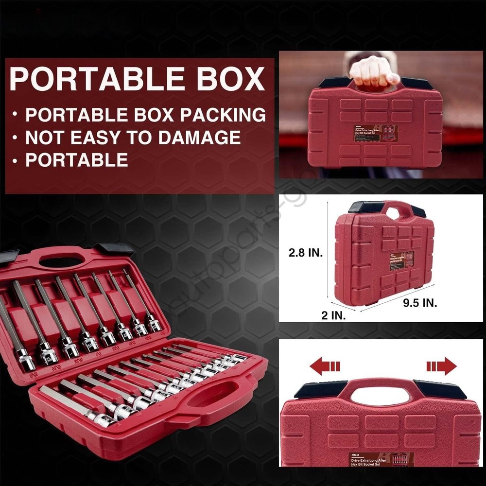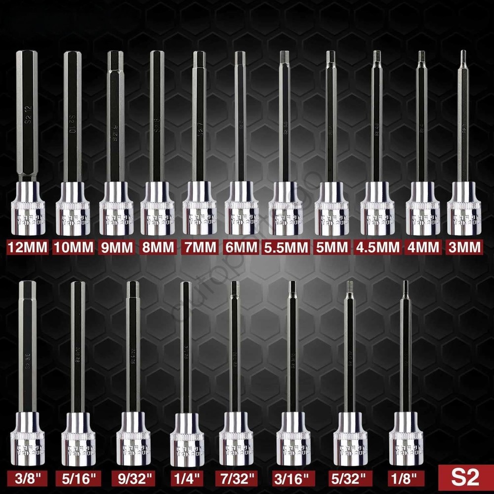 Store Categories Store Categories eBay Motors Parts & Accessories Automotive Tools & Supplies Details 19pcs 3/8" Drive Extra Long Allen Hex Bit Socket Set, Standard SAE & Metric 【HIGH PERFORMANCE】 This allen socket set made of S2 alloy steel, heat treatment after forging, high hardness, strong torque. After plating and polishing to provide superior rust resistance. Each sleeve has a precise size and bevel for easy use to protect bits and fasteners 【COMPLETE IN SPECIFICATIONS】3/8"Driver hex socket set 11pcs the Metric system(3mm|4mm|4.5mm|5mm|5.5mm|6mm|7mm|8mm|9mm|10mm|12mm);8pcs SAE(1/8”|5/32”|3/16”|7/32”|1/4”|9/32”|5/16”|3/8”) 【PACKAGING EXQUISITE】The allen wrench socket set is equipped with a 9.5 "*2.8" *2 "plastic box made of ABS material, which is durable, dustproof, and has specifications on the box for easy access 【USING RANGE】This 3/8"hex bit socket set is equipped with electric drill, ratchet wrench and other tools, mainly used for mechanical repair, DIY creation and more 【THE BEST GIFT】Exquisite packaging, excellent quality, is the best gift for family and friends If you have any questions, please contact us. Product Description: AMM 19-Pieces 3/8 Inch Drive Long Hex Bit Socket Set comes with a heavy duty storage case, easy to carry. Meets or exceeds ANSI performance standards. Bits made of premium S2 alloy steel for superior hardness and insure longevity, Cr-V steel sockets provide superior torque for greater turning power. Size Display: 19PC 3/8" Drive Extra Long Allen Hex Bit Socket Set 11PC METRIC: 3mm|4mm|4.5mm|5mm|5.5mm|6mm|7mm|8mm|9mm|10mm|12mm 8PC SAE: 1/8”|5/3 2”|3/16”|7/32”|1/4”|9/32”|5/16”|3/8” 1PC HEAVY DUTY PLASTIC BOX S2 ALLOY STEEL Made of S2 alloy steel, heat treatment after forging, high hardness, strong torque. After plating and polishing to provide superior rust resistance. CHAMFERING ACCURATE High precision machine tool precise chamfering. LONGER DESIGN Extra-long design allow bit to reach deep into especially narrow, recessed areas. Insert smoothly with precision chamfered bit ends TOOL BOX With high quality blow molding box, easy to carry and store. Push the buckle to both sides to open the plastic box. Note: Please check the OE code on your old part before purchasing! It would be highly appreciated if you might contact us first once you have any problems concerning the items. And you can expect all the issues would be resolved ASAP! About Us Shipping Policy Payment Method Returns Policy Contact Us About Us High-performance automotive components that pass stringent durability and functionality tests, ensuring longevity under demanding conditions. We combine cutting-edge logistics with uncompromised quality, making vehicle maintenance faster, simpler, and more efficient. With a user - friendly shopping environment and efficient customer service, we strive to offer you a seamless shopping experience. 24/7 customer support available—follow us for updates! Shipping Policy All items are shipped from our United States local warehouse. All orders will be shipped within 3 business days after payment is cleared. We only ship to Paypal confirmed address, please make sure that the address is correct before you check out. Payment Method Please use the eBay checkout system when paying for your order. Paypal allows to pay by Credit Card, Direct Debit, VISA, eCheck, or other methods, please kindly check Paypal for more information. Returns Policy 30 Days Free Return and Money Back. If you are not satisfied with your purchase for any reason ( and the part is brand new, has not been installed or damaged in any way) please return it within 30 days for a refund. Please contact us before return. Contact Us Customer satisfaction is always our top priority! If you have any questions while shopping,please contact us first via eBay Messaging—we’re here to resolve issues swiftly and ensure your satisfaction! Before submitting your feedback, if you have any concerns or require assistance, please feel free to reach out through our channels. We firmly believe that through open communication, we can prevent unnecessary misunderstandings and work together to provide you with a satisfactory resolution. Home Payment Shipping About us Contact us Store Categories Store Categories eBay Motors Parts & Accessories Automotive Tools & Supplies Details 19pcs 3/8" Drive Extra Long Allen Hex Bit Socket Set, Standard SAE & Metric 【HIGH PERFORMANCE】 This allen socket set made of S2 alloy steel, heat treatment after forging, high hardness, strong torque. After plating and polishing to provide superior rust resistance. Each sleeve has a precise size and bevel for easy use to protect bits and fasteners 【COMPLETE IN SPECIFICATIONS】3/8"Driver hex socket set 11pcs the Metric system(3mm|4mm|4.5mm|5mm|5.5mm|6mm|7mm|8mm|9mm|10mm|12mm);8pcs SAE(1/8”|5/32”|3/16”|7/32”|1/4”|9/32”|5/16”|3/8”) 【PACKAGING EXQUISITE】The allen wrench socket set is equipped with a 9.5 "*2.8" *2 "plastic box made of ABS material, which is durable, dustproof, and has specifications on the box for easy access 【USING RANGE】This 3/8"hex bit socket set is equipped with electric drill, ratchet wrench and other tools, mainly used for mechanical repair, DIY creation and more 【THE BEST GIFT】Exquisite packaging, excellent quality, is the best gift for family and friends If you have any questions, please contact us. Product Description: AMM 19-Pieces 3/8 Inch Drive Long Hex Bit Socket Set comes with a heavy duty storage case, easy to carry. Meets or exceeds ANSI performance standards. Bits made of premium S2 alloy steel for superior hardness and insure longevity, Cr-V steel sockets provide superior torque for greater turning power. Size Display: 19PC 3/8" Drive Extra Long Allen Hex Bit Socket Set 11PC METRIC: 3mm|4mm|4.5mm|5mm|5.5mm|6mm|7mm|8mm|9mm|10mm|12mm 8PC SAE: 1/8”|5/3 2”|3/16”|7/32”|1/4”|9/32”|5/16”|3/8” 1PC HEAVY DUTY PLASTIC BOX