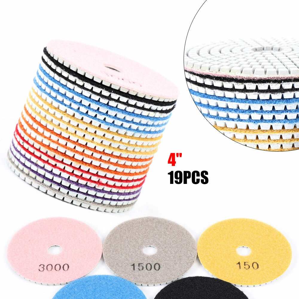 Feature: Aggressive and durable made with quality diamond powder impregnated in resin. The pad holder are with water feed hole, can be used for wet polishing. Diamond polishing pads 4 inch wet 19 piece set granite stone concrete marble. Strong grinding force and smoothness. High wear resistance, polishing effect is good. Perfect for granite, concrete, marble, stone, tiles etc. Specification: Diameter: approx.4'' (100mm) Thickness: approx.3mm Backer diameter: approx.4''(100mm) Pad thread: M14 female thread Pad grit: 30, 50, 150, 300, 500, 800, 1500, 3000 Recommended RPM use is 5000 RPM or less Package included: 3pcs x 30 grit 3pcs x 50 grit 3pcs x 150 grit 3pcs x 300 grit 2pcs x 500 grit 2pcs x 800 grit 1pc x 1500 grit 1pc x 3000 grit 1pc x backer pad 19pcs 4" Diamond Sanding Pads Set M14 Female Thread for Granite Concrete Marble 19Pcs 4" Diamond Polishing Pads Buffing Kits Wet/Dry For Granite Concrete Stone Feature: Aggressive and durable made with quality diamond powder impregnated in resin. The pad holder are with water feed hole, can be used for wet polishing. Diamond polishing pads 4 inch wet 19 piece set granite stone concrete marble. Strong grinding force and smoothness. High wear resistance, polishing effect is good. Perfect for granite, concrete, marble, stone, tiles etc. Specification: Diameter: approx.4'' (100mm) Thickness: approx.3mm Backer diameter: approx.4''(100mm) Pad thread: M14 female thread Pad grit: 30, 50, 150, 300, 500, 800, 1500, 3000 Recommended RPM use is 5000 RPM or less Package included: 3pcs x 30 grit diamond polishing pad 3pcs x 50 grit diamond polishing pad 3pcs x 150 grit diamond polishing pad 3pcs x 300 grit diamond polishing pad 2pcs x 500 grit diamond polishing pad 2pcs x 800 grit diamond polishing pad 1pc x 1500 grit diamond polishing pad 1pc x 3000 grit diamond polishing pad 1pc x backer pad Payment Delivery details Terms of sales About us Contact us Payment We accept ebay payment 。 Fees such as import duties, taxes are not included in the item price or shipping costs. These charges are the buyer's responsibility. Delivery details Shipping: 2-9 working days to: USA Terms of sales We maintain high standards of excellence and strive for hundred percent customer satisfaction. Feedback is very important to us. We hope that you contact us immediately before you give neutral or negative feedback, so that we can address your concerns. It is impossible to address issues if we do not know about them! About us Your satis faction is our ultimate goal. We work hard to earn your trust and future business. Our certified technicians have tested each item before shipping. The unit comes with 1 year limited warranty on all manufacturing defects. a) If you receive a defective item, you may return it or ask for a discount. Please contact us within 14 days after you receive the package. b) What you returned must be intact and in its original packaging as re? u. Customer is responsible for shipping costs of the returned item. c) We will cover the cost of shipping back t with the shipping rate indicated in the registration page. We will send you a new unit or refund the full payment you paid. Thank you. Contact us Business Hour Business Hour: Monday To Friday: 8:30 AM to 5:00 PM (Beijing China time) Due to time zones, our reply to your questions may not be immediately. But within above working time, we will reply your email within 24 hours. If it's non-workdays, please kindly be patient and wait till Monday. Please contact us with ebay message. Please feel free to contact us if you have any questions. Monday To Friday: 8:30 AM to 5:00 PM (Beijing China time) Due to time zones, our reply to your questions may not be immediately. But within above working time, we will reply your email within 24 hours. If it's non-workdays, please kindly be patient and wait till Monday. Please contact us with ebay message. Please feel free to contact us if you have any questions. Type Polishing Pad Voltage N/A Connection Type Female Thread Model N/A Sanding Grade Medium MPN N/A Application Grinding/Sanding Brand Unbranded Note Not ship to Canarias Number of Items in Set 19 Diameter approx.4'' (100mm) Thickness approx.3mm Backer diameter approx.4''(100mm) Pad thread M14 female thread Pad grit 30, 50, 150, 300, 500, 800, 1500, 3000
