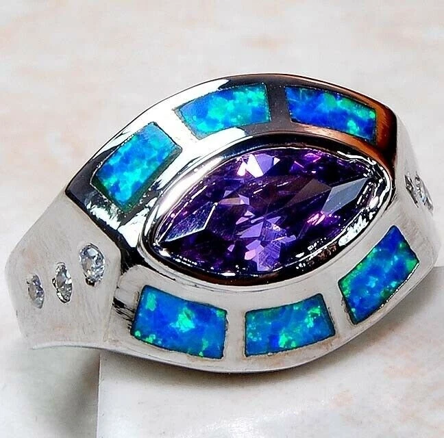 Diamond Color Grade: Not Applicable Country/Region of Manufacture: Thailand Features: Nickel-Free Diamond Clarity Grade: Not Applicable Brand: Handmade Style: Charm, Cocktail UPC: Does Not Apply Number of Gemstones: Not Applicable Secondary Stone: Opal Colored Diamond Intensity: Not Applicable gtin13: Does Not Apply Certification: Not Applicable Cut Grade: Excellent Color: Blue Main Stone Color: Purple Number of Diamonds: Not Applicable Ring Size: 6 Setting Style: Prong Main Stone Shape: Marquise Metal Purity: 925 Sizable: Yes Occasion: Anniversary/Engagement/Birthday/Confirmation/Communion Country of Origin: Thailand Base Metal: Sterling Silver Type: Ring Theme: Fashion & Costumes, Holiday Band Width: Not Applicable Main Stone: Amethyst Material: Gemstone Main Stone Treatment: Not Enhanced Gemstone Clarity Grade: Eye Clean Metal: Sterling Silver Total Carat Weight: 1