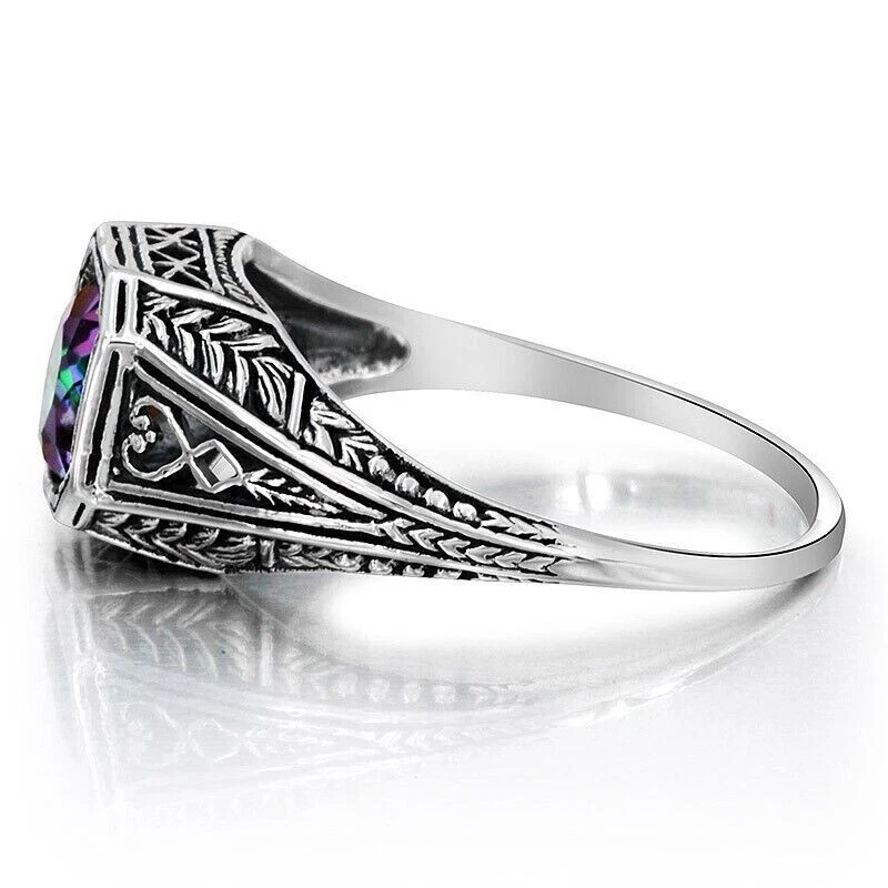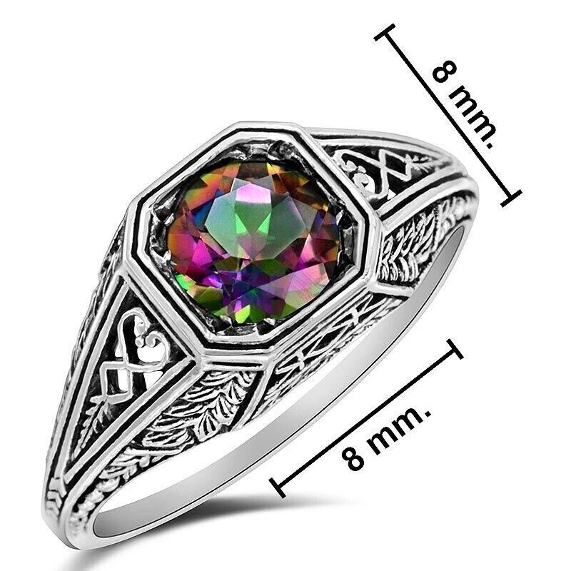 1CT Natural Rainbow Topaz 925 Sterling Silver Victorian Style Ring Sz 6 ZF-3
