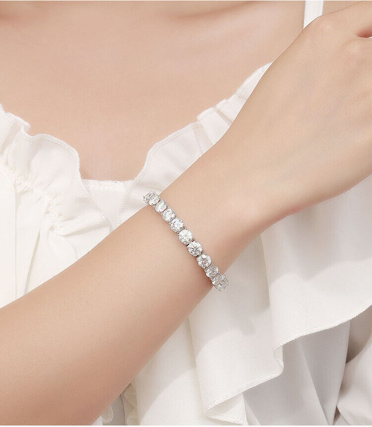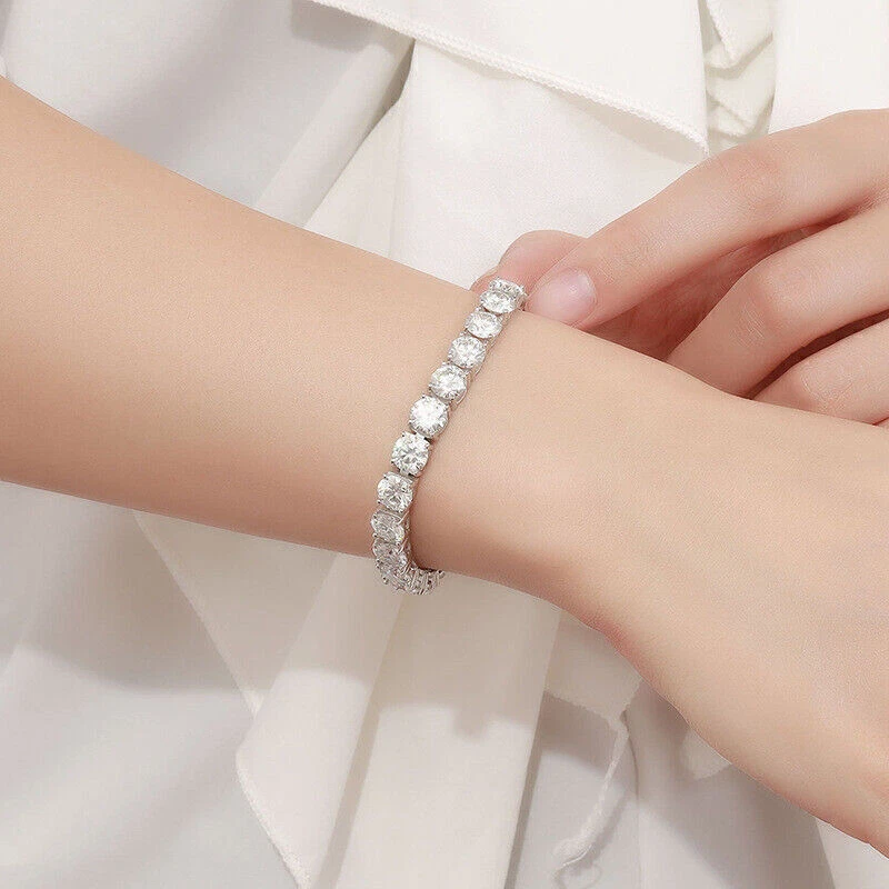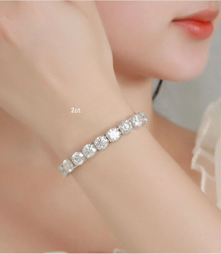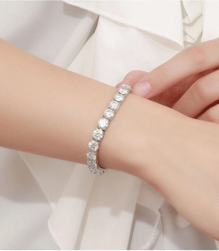 Moissanite offers timeless beauty and exceptional value. The stones we use are GRA certified VVS1 clarity Moissanite . The details matter so we do not buy simply the cheapest stones on the market. We only purchase the most beautiful ideal cut moissanite stones that offer the highest fire and brilliance. This is the best compromise between cheap fakes (CZ, crystal, rhinestone) and extremely expensive diamond solitaire stones. Natural diamond equivalent bracelets cost $2,000 - $50,000+ for larger sizes. Get the same look at a much better price! -VVS1 Clarity D Color GRA certified Moissanite Stones -Hearts and Arrows Pattern Ideal Cut. Excellent Rating -9.5 Hardness Rating. Diamonds are perfect 10, cheap fakes are 3-4. This means Moissanite won't dull over time. -925 Sterling Silver With Rhodium Plating or 14K Yellow Gold Plating -Passes many commonly used Diamond Testers -Comes with box with certificate (NOTE only 3mm and up have GRA certificate) ny, anniversaries,etc. -It is the best gift for Mother's Day, Valentine's Day, Christmas, birthday, graduation ceremony, anniversaries,etc.