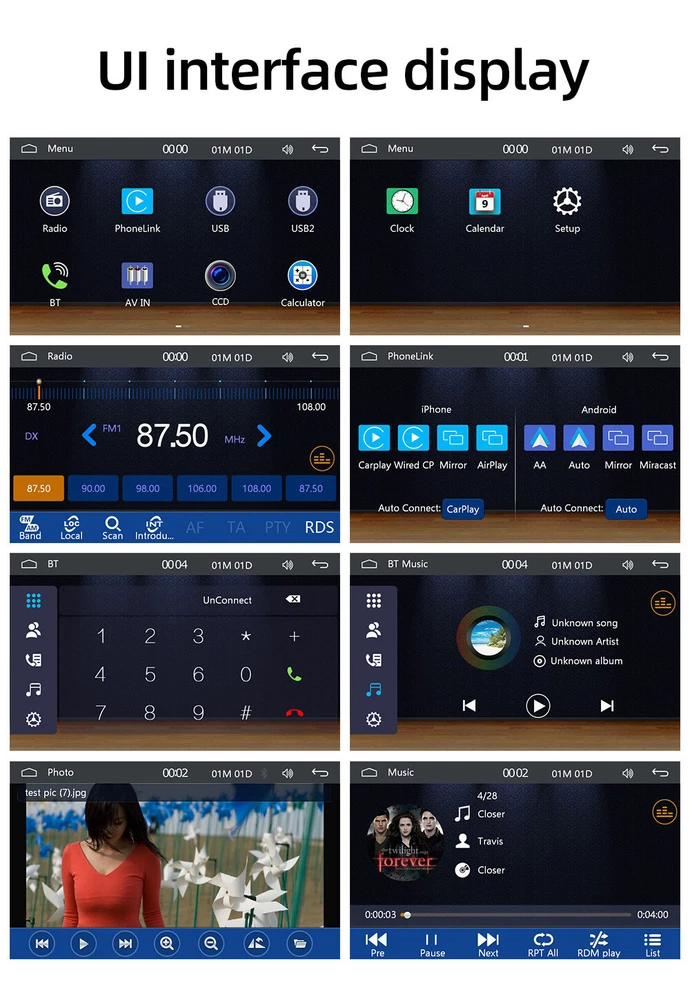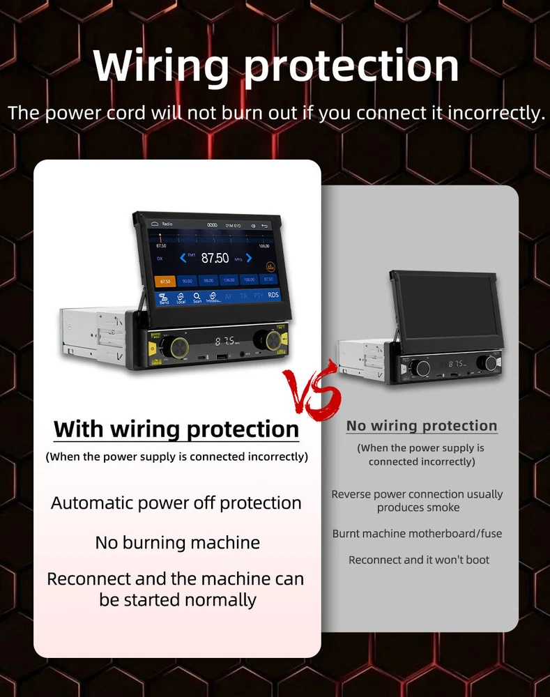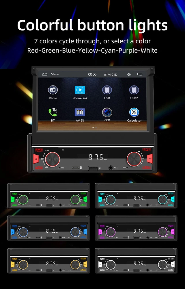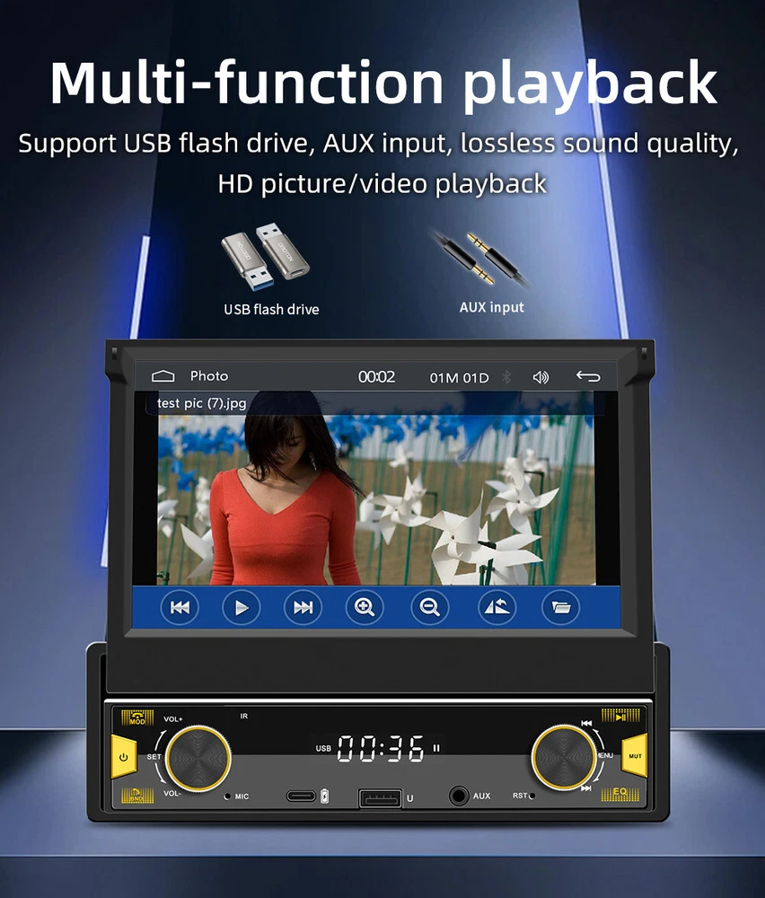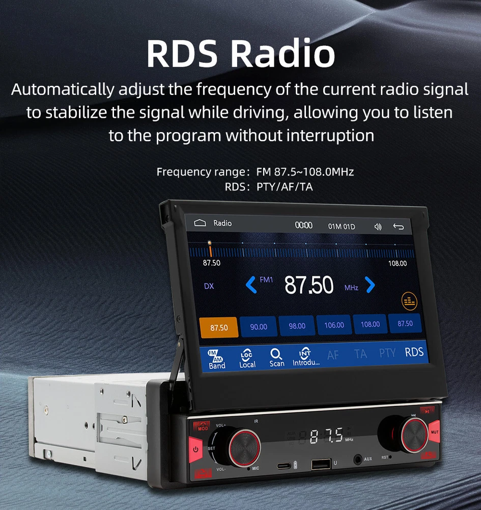 Product View Detail 1 Din Car Radio 7" Retractable Screen Multimedia Video Player MP5 Car Audio Video Bluetooth Head Unit Support For Apple Carplay Android Auto Note:Please check size whether fit for your car before purchasing !!! Basic parameters Type: Car MP5- Manual retractable screen (capacitive screen) System: Overview Melis System Software solution: F133 Radio frequency: FM 87.5~108.0MHz AM 522~1620KHz (switchable between radio frequencies in China, America 1, America 2, Japan, Russia, Middle East, and Europe) Radio IC: 9636 Amplifier IC: CD7388CZ Output power :60Wx4 Working voltage: 12~14.4V Working temperature: -10~60 ℃ Bluetooth version: 5.1 (default name: SWL-BT) WiFi frequency:can be selected as 2.4G, 5.2G, or 5.8G (automatically switched according to the frequency band of the hotspot connected to the phone, connected) ,Used for Android AUTO and Apple CARPLAY Performance parameters CPU: F133 Running memory: 533M Display resolution: 1024x600 Screen size: 7 inches+LED digital tube Installation size: 178x53MM Shell size: 188x58MM Host depth: 165MM Functional parameters Mobile Internet : supports: √, does not support: × For Apple CarPlay: wired √, wireless √; Android Auto: wired √, wireless √; IPhone screen mirroring: wired √, wireless √; Android screen mirroring: wired √, wireless √ Screen rotation: not supported Reverse image: support (optional camera) Video playback warning: support Steering wheel control: supports button learning Video output: support USB interface: front USB 2.0+front TYPE-C charging+rear USB 2.0 TF card : not supported External microphone input: support (rear, optional external microphone configuration) Reset button: support The dash cam: supports external USB dash cam (optional camera) Audio output: 2 channels (left channel+right channel) Video output: 2 channels AUX input: before audio input (left channel+right channel) Video input: 1 channel Reverse video input: 1 channel Audio format :MP3/AAC/APE/OGG/M4A/RA/WAV Video format :H263/H264/H265/DIVX HD/AVI/FLV/MKV/MPEG/MP4/WMV9/VC/ASF/TS/QT Image format: JPEG/PNG/BMP/GIF/TIFF Language parameters: English/Chinese/French/German/Arabic/Italy/Japanese/Portugal/Russian/Spanish/Hebrew/Polish/Turkish/Czech/Korean/Indonesian/Thai/Ukrainian/Greek/Dutch Factory password: 113266 Accessories 1. Host 2. Manual 3. Power cord 4. Remote control 5. Disassembly key (accessories, manual, packaging may be updated from time to time, subject to actual receipt) Basic functions 1. Radio 2. Read USB flash drive (audio/video/image) 3. AUX function 4. Bluetooth function 5. RCA audio output can be connected to a subwoofer 6. Reverse rearview function 7. Video output function, video input function 8. Original steering wheel learning function 9. Colorful lights 10. Wired and wireless phone screen mirroring, wired and wireless Apple CarPlay, wired and wireless Android AUTO 11. RDS function 12. Power supply positive and negative polarity reverse protection function Shipping Policy Payment Method Returns Policy Shipping Policy Payment Method Returns Policy Copyright © 2017 DataCaciques Home Payment Shipping About us Contact us BCSMMCAR Store Categories Store Categories Other Product View Detail 1 Din Car Radio 7" Retractable Screen Multimedia Video Player MP5 Car Audio Video Bluetooth Head Unit Support For Apple Carplay Android Auto Note:Please check size whether fit for your car before purchasing !!! Basic parameters Type: Car MP5- Manual retractable screen (capacitive screen) System: Overview Melis System Software solution: F133 Radio frequency: FM 87.5~108.0MHz AM 522~1620KHz (switchable between radio frequencies in China, America 1, America 2, Japan, Russia, Middle East, and Europe) Radio IC: 9636 Amplifier IC: CD7388CZ Output power :60Wx4 Working voltage: 12~14.4V Working temperature: -10~60 ℃ Bluetooth version: 5.1 (default name: SWL-BT) WiFi frequency:can be selected as 2.4G, 5.2G, or 5.8G (automatically switched according to the frequency band of the hotspot connected to the phone, connected) ,Used for Android AUTO and Apple CARPLAY Performance parameters CPU: F133 Running memory: 533M Display resolution: 1024x600 Screen size: 7 inches+LED digital tube Installation size: 178x53MM Shell size: 188x58MM Host depth: 165MM Functional parameters Mobile Internet : supports: √, does not support: × For Apple CarPlay: wired √, wireless √; Android Auto: wired √, wireless √; IPhone screen mirroring: wired √, wireless √; Android screen mirroring: wired √, wireless √ Screen rotation: not supported Reverse image: support (optional camera) Video playback warning: support Steering wheel control: supports button learning Video output: support USB interface: front USB 2.0+front TYPE-C charging+rear USB 2.0 TF card : not supported External microphone input: support (rear, optional external microphone configuration) Reset button: support The dash cam: supports external USB dash cam (optional camera) Audio output: 2 channels (left channel+right channel) Video output: 2 channels AUX input: before audio input (left channel+right channel) Video input: 1 channel Reverse video input: 1 channel Audio format :MP3/AAC/APE/OGG/M4A/RA/WAV Video format :H263/H264/H265/DIVX HD/AVI/FLV/MKV/MPEG/MP4/WMV9/VC/ASF/TS/QT Image format: JPEG/PNG/BMP/GIF/TIFF Language parameters: English/Chinese/French/German/Arabic/Italy/Japanese/Portugal/Russian/Spanish/Hebrew/Polish/Turkish/Czech/Korean/Indonesian/Thai/Ukrainian/Greek/Dutch Factory password: 113266 Accessories 1. Host 2. Manual 3. Power cord 4. Remote control 5. Disassembly key (accessories, manual, packaging may be updated from time to time, subject to actual receipt) Basic functions 1. Radio 2. Read USB flash drive (audio/video/image) 3. AUX function 4. Bluetooth function 5. RCA audio output can be connected to a subwoofer 6. Reverse rearview function 7. Video output function, video input function 8. Original steering wheel learning function 9. Colorful lights 10. Wired and wire
