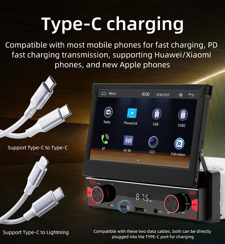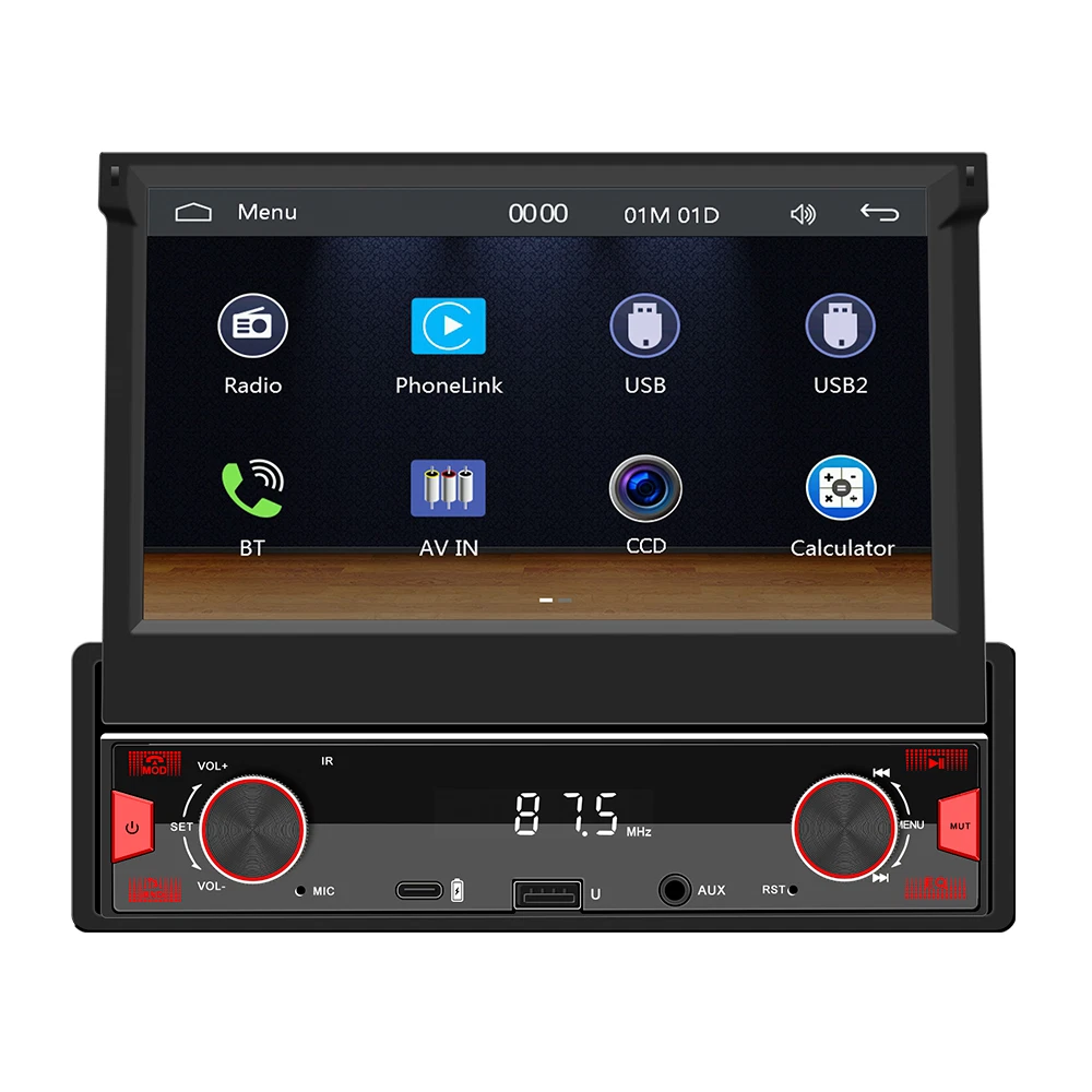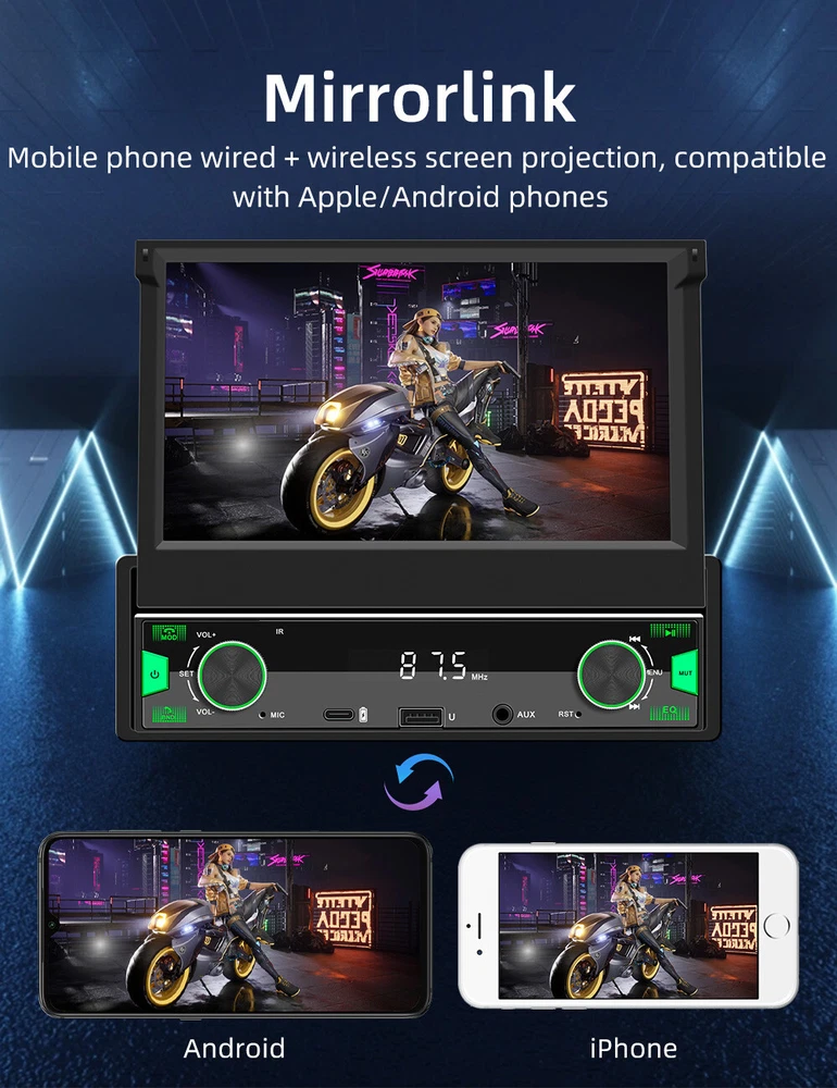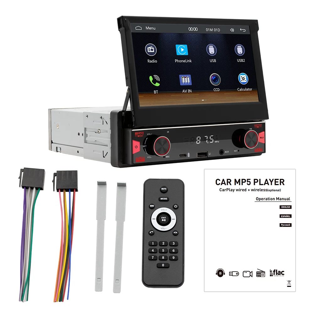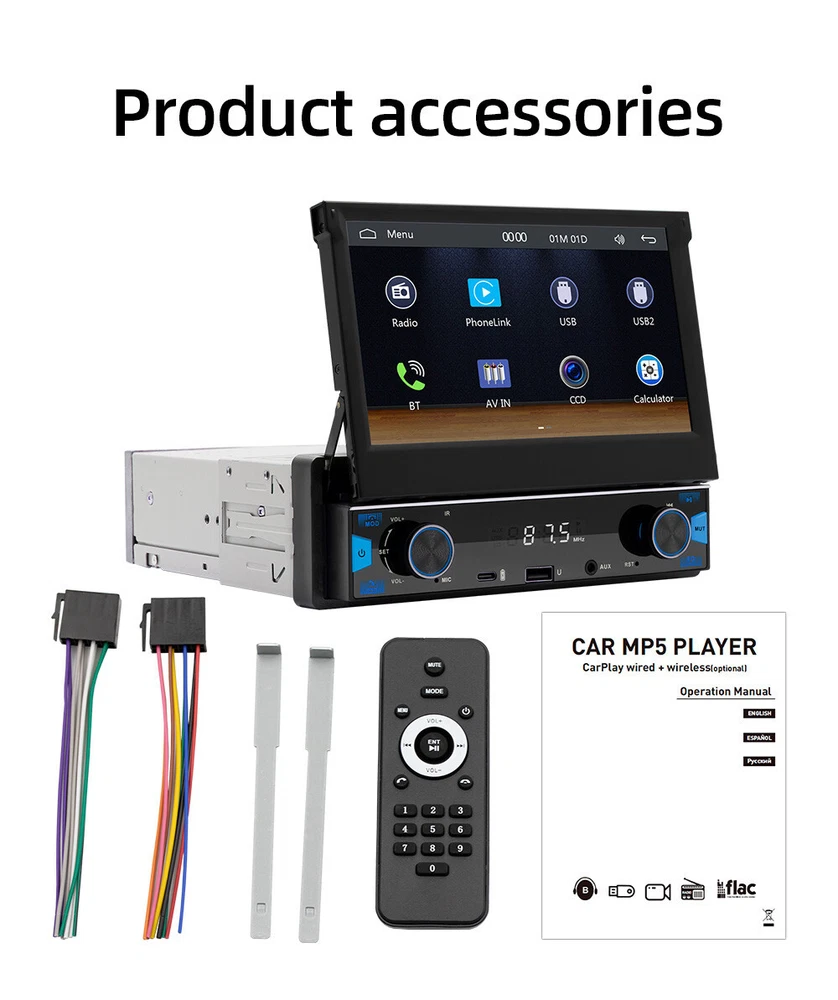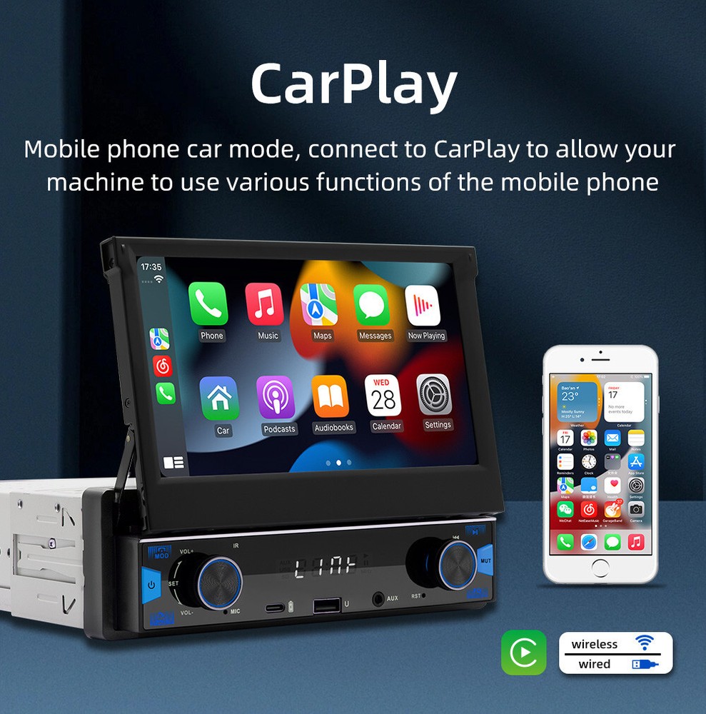 1DIN Car Stereo with Apple CarPlay, Bluetooth, Mirror Link, AUX, RCA & MP5 Playback