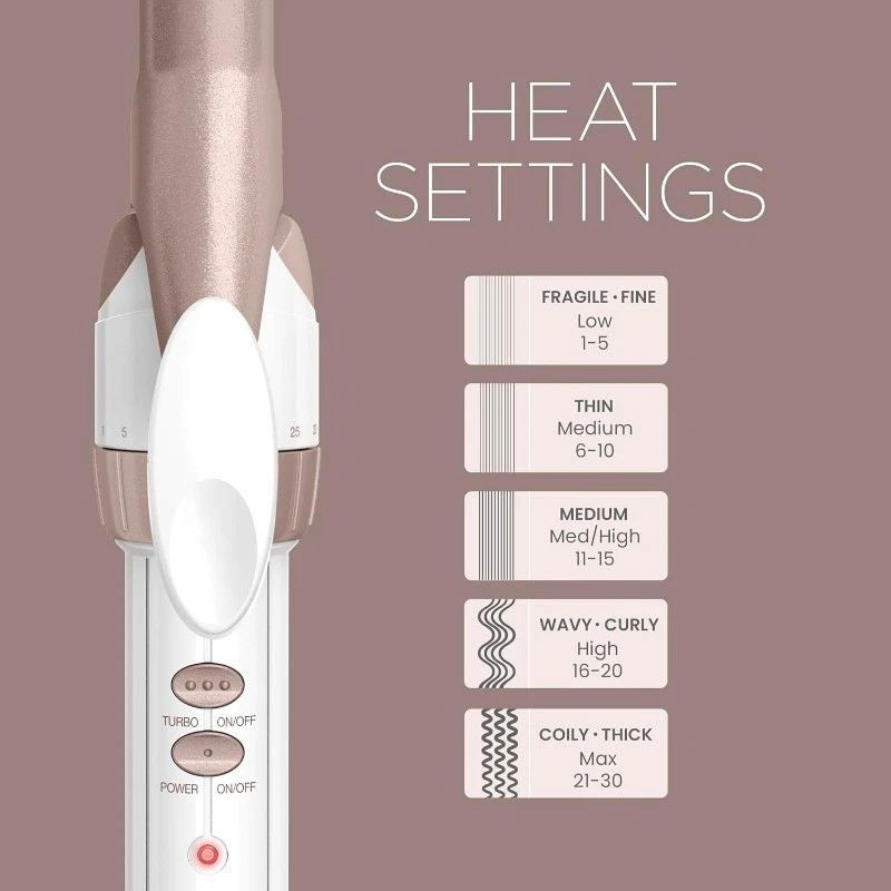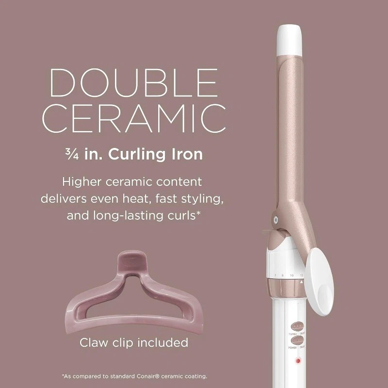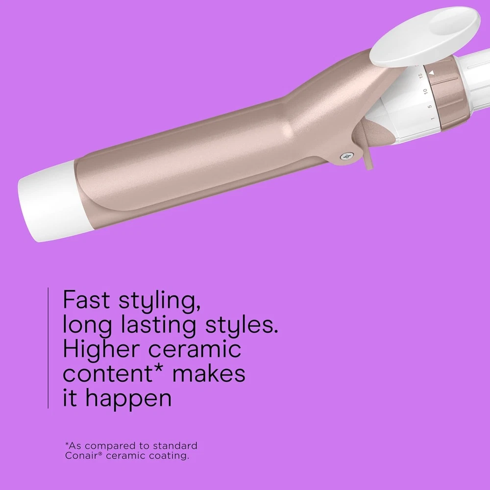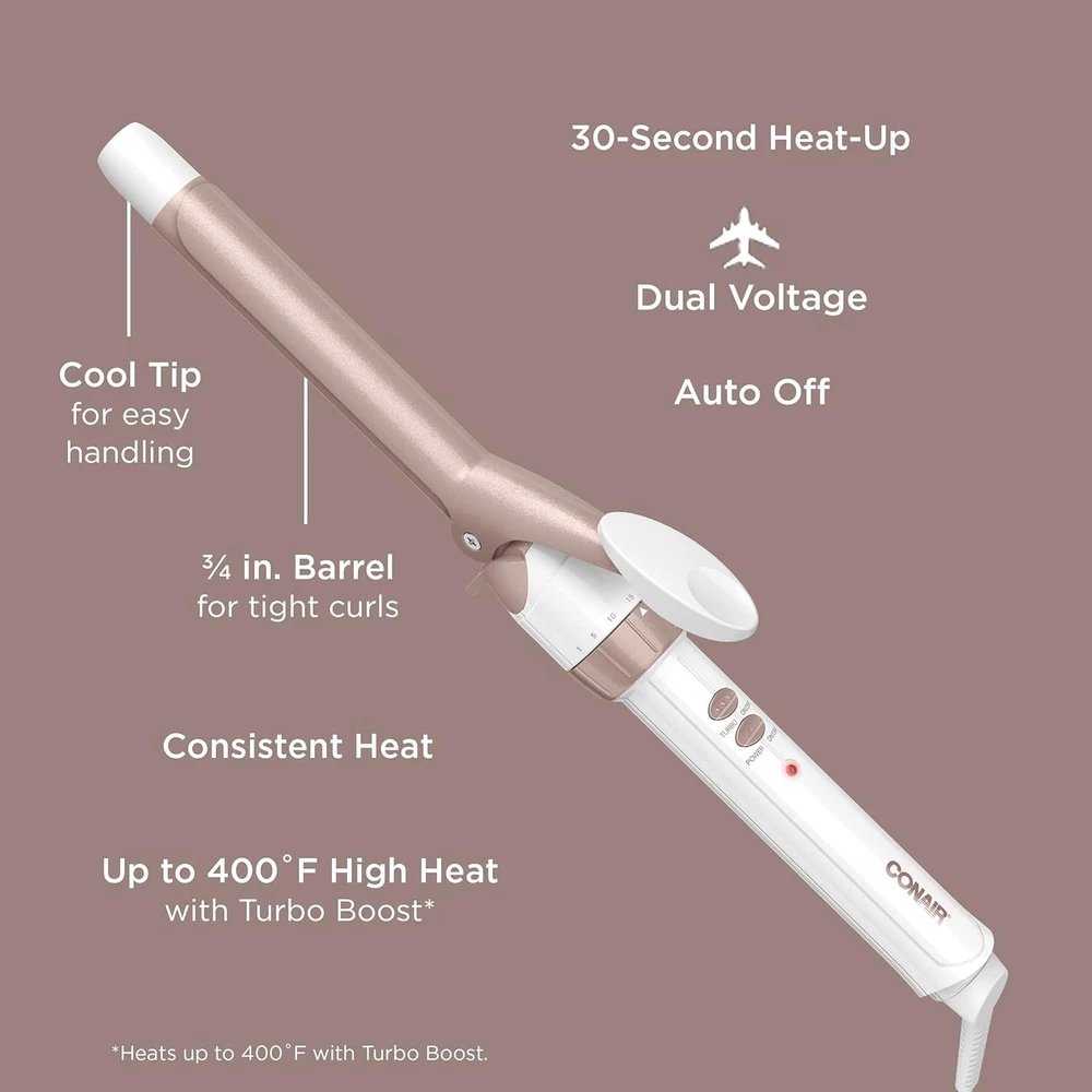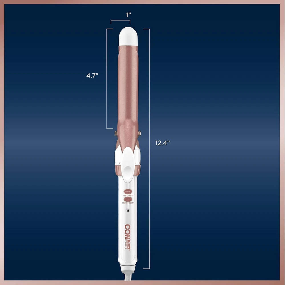 来自制造商 产品描述 隆重推出全新 Conair 双陶瓷 1 英寸玫瑰金卷发棒,专为打造经典靓丽卷发而设计。更高的陶瓷含量带来均匀加热效果,打造持久亮丽的造型,减少毛躁。30 档热力设定,可瞬间加热至 400 度,包括涡轮增压,有效应对难以造型的部位。独特的冷头设计,安全便捷,并配备自动关机功能。附赠双电压,方便国际旅行携带,以及便携包。