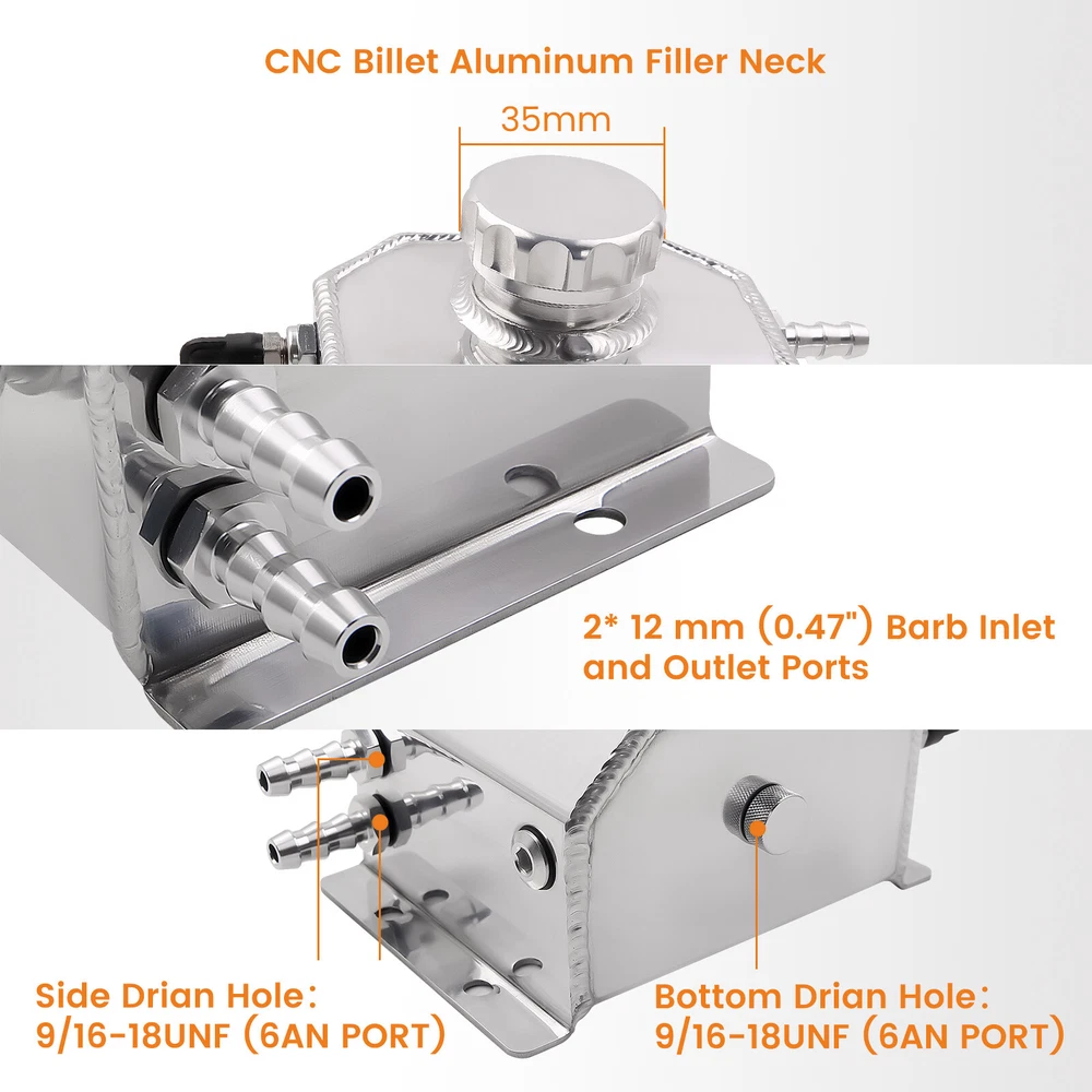zjpss LOGO Home Contact us Promotion WHY CHOSE US Manufacturer We know our products Easy Return Quick, Simple Guaranteed Fitment Always the correct part PRODUCT DISPLAY 1L Aluminum Car Engine Oil Catch Can Reservoir Water Tank Bottle w/ Cap 1L Fast Shipping International Shipping 30 Days Return Policy Secure Shopping DESCRIPTION Universal High quality aircraft 6061-T6 aluminium coolant overflow tank. Constructed from fully TIG welded. Application: 1L Aluminum Coolant Overflow Tank Features: -2mm OD "screw-on" hose barb Inlet -9/16-18UNF (6AN PORT) bottom and side drian hole -CNC billet alumibum filler neck 35mm ID -Dimension(Outline): 170mm(L) x 86mm(W) x147mm (H) -Wall thickness: 3mm -Material: The coolant overflow tank is made of 6061 aluminum, stronger, anodized finish and durable, better than plastic material - High Performance:Catch overflow coolant from radiator and store it. Due to the way coolant and radiators work, air is drawn into the radiator instead of the coolant, which will cause rust to appear. Installing an overflow bottle for your radiator will help prevent rust in your cooling system. Also, to improve the cooling effect, our coolant overflow tank is made of aluminum Specification: Condition: 100% New and High Quality Overall Length (include flange) : 170mm Overall Width:86mm Overall Height (include cap): 147mm Inlet/Outlet Size : 10mm Type:Radiator Warranty : 2 year Package Include: 1 * Aluminum Coolant Tank 1 * Billet Aluminum Cap Notice: Please allow 2-3mm Measurement error If there any questions, please feel free to contact us. SHIPPING US Domestic Shipping Notice - All items will be dispatched within 24hrs(Mon-Fri) Our carrier collects all the parcels at 4:30am PDT, any payment paid after 5:00am PDT will be shipped the next day at 4:30am PDT. If you paid Item Shipped On Est.Delivery Time Before Apr. 1st at 4:30am Apr. 1st at 5:00am Apr. 5th - Apr. 7th After Apr. 1st at 4:30am Apr. 2nd at 5:00am Apr. 6th - Apr. 8th If our estimated delivery time and eBay’s are contradictory,please refer to the standard delivery time of ours. Estimated Delivery Time From To Service Est.Delivery Time US US UPS or Fedex Ground 3-5 Business days Outside of US DHL FedEx 4-7 Business days Tracking number will be updated in 24 hours after shipment Please provide the following shipping information for your order Full physical address Telephone number Otherwise your shipment will be deferred. We are not responsible for any shipping lost caused by wrong shipping information Shipping rate If our ebay item listing doesn't show the shipping cost to your place. Please contact us to calculate the shipping fee for you. International Shipment For international shipment, we do not cover any import taxes or duties. Import tax is charged by the government, not us. Our item price and shipping cost do not include any import tax which will be charged by the shipping company when you got the parcel. Please be noted that is not the extra shipping fee. ` NO hidden charge!!! WARRANTY Free 2 Year Warranty: All AutoModPlanet products have 2 year warranty (unless otherwise stated). In the very unlikely event that you have a problem with our product, please contact us via eBay messages. Easy Return: If you are unhappy with your purchase for any reason, you can return it to us in an un-used condition in the original packaging within 30 days of purchase and we'll give you a refund or exchange. The refund/Exchange will not include postage/eBay costs. Please note you MUST contact us to obtain a Return Authorization Number before returning any part. Any parcel without the Return Authorization Number will be rejected. If your item is faulty or was incorrect, you must contact our sales representative before returning the parcel and we will endeavour to solve the problem effectively. Video or picture is required to show the item condition before we issue the Return Authorization Number. Important notice: 1. Any returned item(s) without Return authorization number will be rejected. 2. Please return your item(s) in original packaging and ensure that all packages are securely wrapped 3. We will not accept responsibility for loss or damage of goods during transit, please ensure that the insurance cover option is taken where possible 4. Upon receipt, all products will be inspected at our discretion in 3-5 business days. Then, the updated result will be informed. If you have made a mistake on purchase and wish to cancel the order before it is dispatched please contact us by ebay massages or email as quickly as possible. Note: All parcel will be collected by carrier at 8:00am on Monday to Friday. FAQ Will this fit my car? We have used the eBay compatibility list as a guide for buyers to use, but the eBay data system is not accurate and incomplete sometimes. Please make sure you have read through the whole listing and paid attention to “note” and “notice”. If there is any uncertain, please use the eBay message to check with our sales first. How much does delivery cost and how long will it take? You can check the delivery cost in the listing “Shipping and payments” section by selecting your country and entering your zip code. If it is not specified, please provide us your shipping address and zip code via eBay message. For US domestic shipping to 48 states, the delivery time is around 3-5 business days. The international shipment delivery time is around 4-7 business days. What payment methods do you accept? We currently only accept payment via PayPal. You can also use PayPal as a guest and pay using a debit or credit card. When will my order be dispatched? We will arrange the shipment in 1 business day after the payment is cleared. The tracking number will be updated on eBay in 24 hours after the shipment. Please notice that there is no shipment during weekend and holidays. Can I amend my order? Sorry no. Once the payment is cleared, we cannot amend any item(s), quantities, or add or remove items. We are also unable