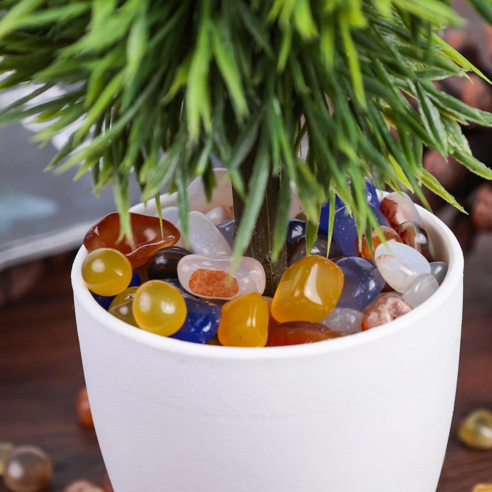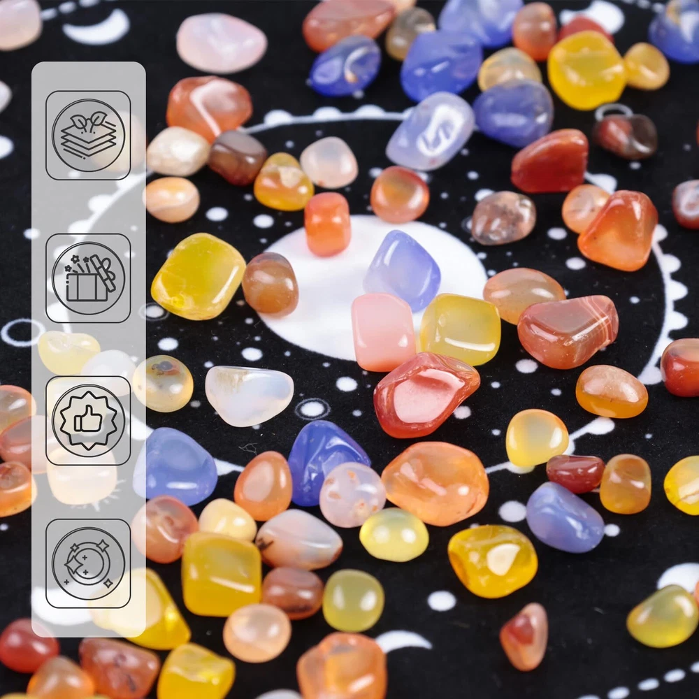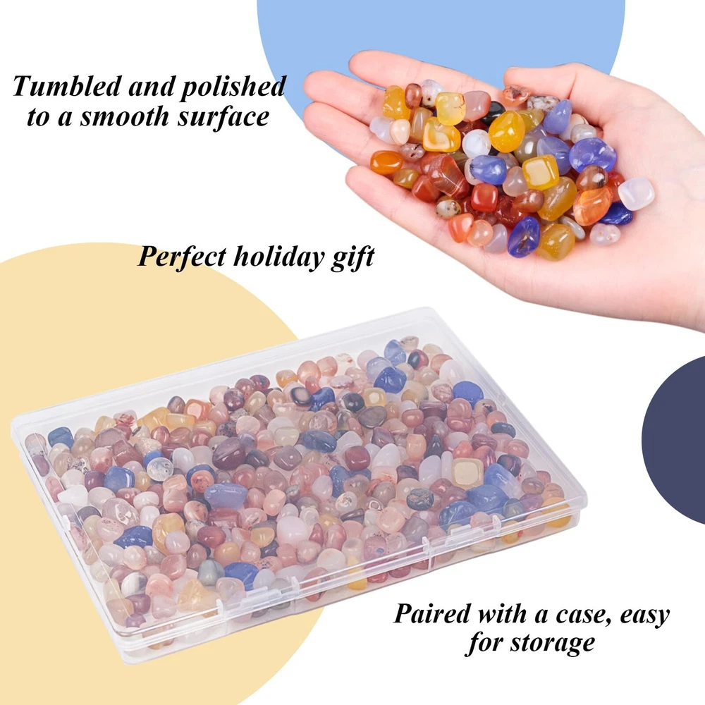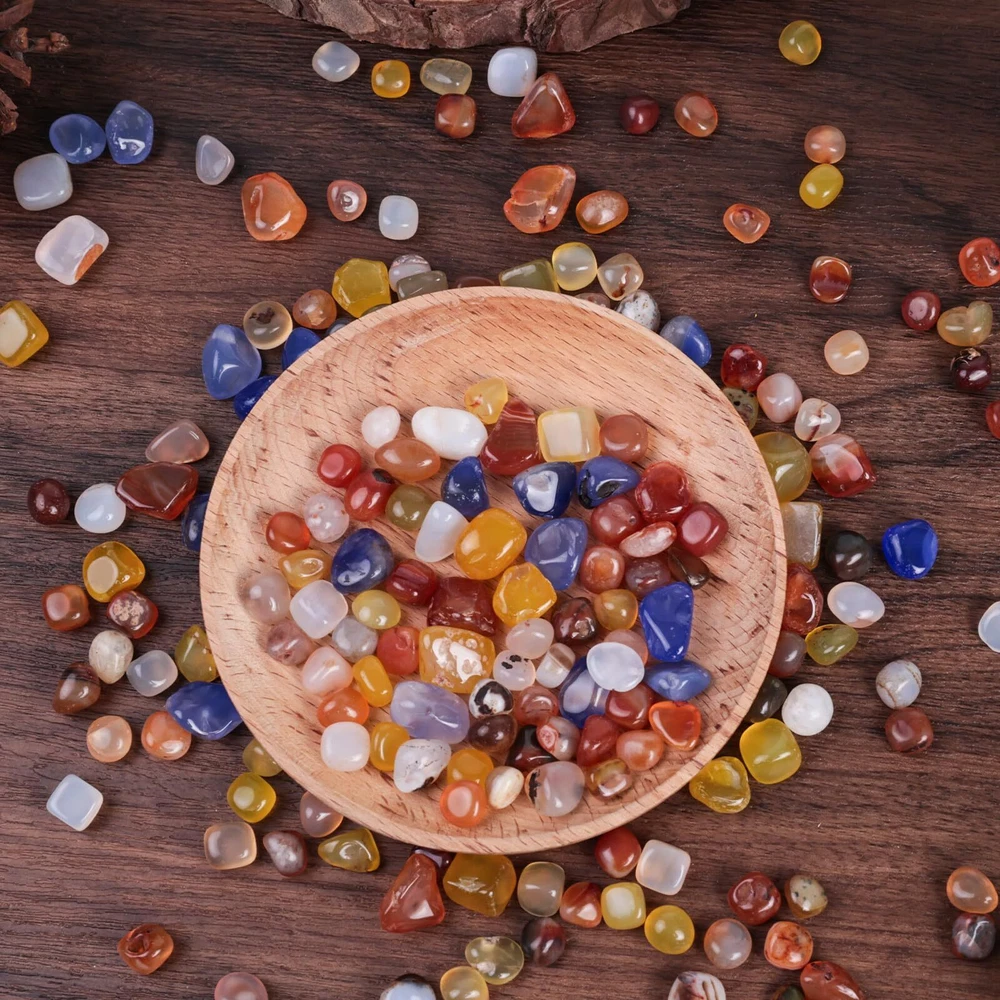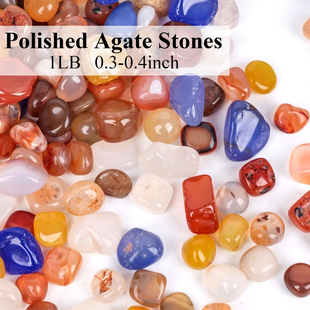 Versatile Decorative Assistance - These small chip stones serve as invaluable additions for enhancing your indoor home decor, creating captivating scenes, embellishing fish tanks, decorating flowerpots, nurturing air plants, providing plant bedding, promoting feng shui to enhance your energy, and facilitating various craft projects. Natural Materials - We carefully choose natural rough stones that exhibit a gentle texture, are easily carved, and boast a rich oil texture and vibrant colors. These stones are meticulously crafted into unique and irregular shapes using refined techniques. Perfect Wrapping - Our assorted tumbled stones are all wrapped in a mesh bag, in addition, the whole bag of stones is packed in a sturdy box, assuring that you will receive these stones without any scratches. Mind Healing - This polished stone set makes for an ideal gift, whether for yourself or loved ones intrigued by crystals and their profound benefits. Moreover, polished stone set doubles as a stunning home decor accent, infusing your space with vibrant colors and positive energy. Super Value Pack - You will get about 1LB (450g) polished agate stones, each is about 0.3"-0.4", with a wide variety of colors and types, meeting your various demands.