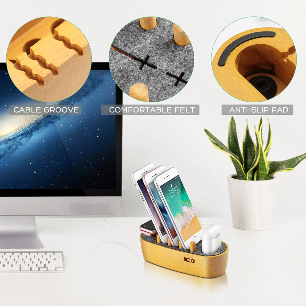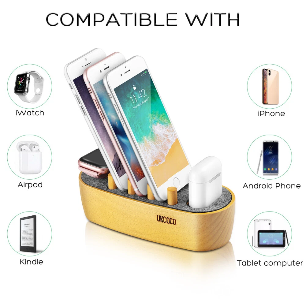 Feature: cell phone charging stations UPC: does not apply Type: 5 in 1 stand Country/Region of Manufacture: China Item Width: 7.60cm gtin13: does not apply Manufacturer Warranty: 30 days Item Weight: 330.00 Material: beech silicone felt Item Height: 6.00 MPN: 105254NWGK4T7J Brand: UKCOCO Item Length: 17.00cm Color: As Shown