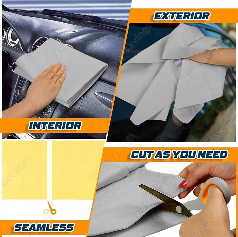 Free eBay listing template designed by dewiso.com Premium Absorbent Car Drying Towel, 60X40CM" Large Chamois Cloth Shammy Towel for Vehicle Features: 1.Chamois synthetic leather, eco-friendly. 2.This car washing towel is of close texture, possessing high tensile strength yet not easy to deform, easy to wring out. 3.With strong ability to absorb water, oil, dirt and dust, it can be widely used for cleaning cars, windows, furniture, mobile phones, cameras, jewelry, etc. 4.Scratch-free and spotless, the car and windows will quickly dry without leaving any water marks and scratches by using this chamois synthetic leather. 5.Exquisite soft chamois synthetic towel, convenient to carry and store. 6.Can be cut into pieces according to your need. Specification: Material: 1PC Size: 60*40cm Package Includes: 1 x Car Washing Towel (Color random) Contact us We can be contacted at any time through eBay messages if you have any questions, comments or product requests. We will respond to you within 24 hours and do our best to help you out! We encourage our customers to contact us with any questions or concerns! We'd like to be sure you are completely satisfied with your purchase. 【Scratch/Streak/Spot Free】 Our car chamois drying towel is made of high-quality PVA material with a delicate and smooth texture. When you use our chamois towel to wash and dry your car, it will glide over the surface of the car without leaving any marks and scratches. Say goodbye to cotton fibres and water spots on your car! 【Super Soft & Absorbent】Idemeet shammy towel for car has excellent water absorption, like a sponge that can quickly absorb and hold a large amount of water. If the car shammy towel is excessively soaked, you can easily wring it dry and keep going. Idemeet car shammy towel makes car care easier and more efficient for you when washing your lovely car! 【Warm Prompt】To keep your shammy towel in tip-top shape, store it slightly moist in its plastic tube. Whenever your shammy towel dries up and becomes hard, just soak it in water to revitalize it, and remember not to tear the towel forcefully! Additionally, if you want to keep it in its best condition, use your towel on smooth surfaces like car paint and mirrors, and avoid using it on rough surfaces like vehicle wheels as much as possible. Good care will maximize the effectiveness of your towels! 【Seamless and Easy to Cut】Idemeet chamois cloth is produced by integrated injection molding technology, which ensures better stable, and reliable product quality. The towel is perfect for drying your car's surfaces. Also, our chamois cloth allows you to cut it to the desired size for cleaning small surfaces like your car mirrors and seats, leaving your car gleaming from the inside out! 【Durable & Reusable】Our PVA chamois cloth is flexible, abrasion-resistant, and can last for years with normal use. It's a no brainer that our chamois cloth is not only perfect for drying cars, but also a good choice for cleaning water stains, dust, and is also safe for pet hair drying Free eBay listing template designed by © dewiso.com .