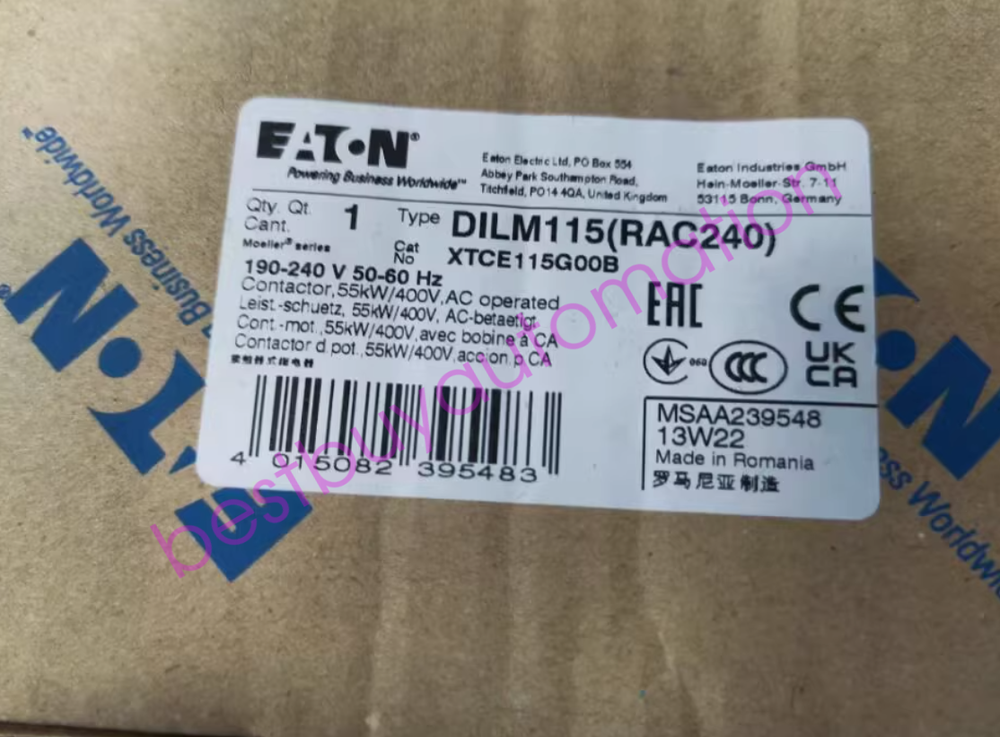 MPN: Does Not Apply Controller Platform: 90-20 Country of Origin: China Model: DILM115(RAC240) Brand: EATON MOELLER