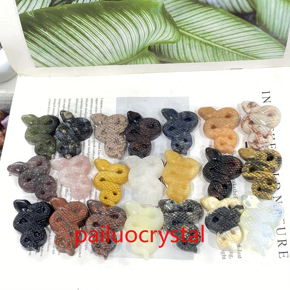 $ 8.131pc Natural Labradorite Snake Skull Quartz Crystal Skull Carved Figurines Gem 2"