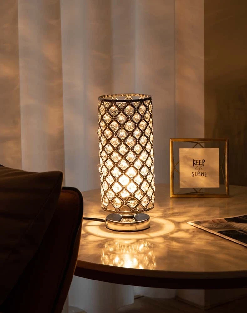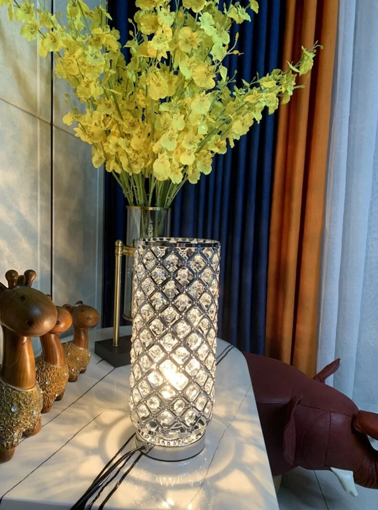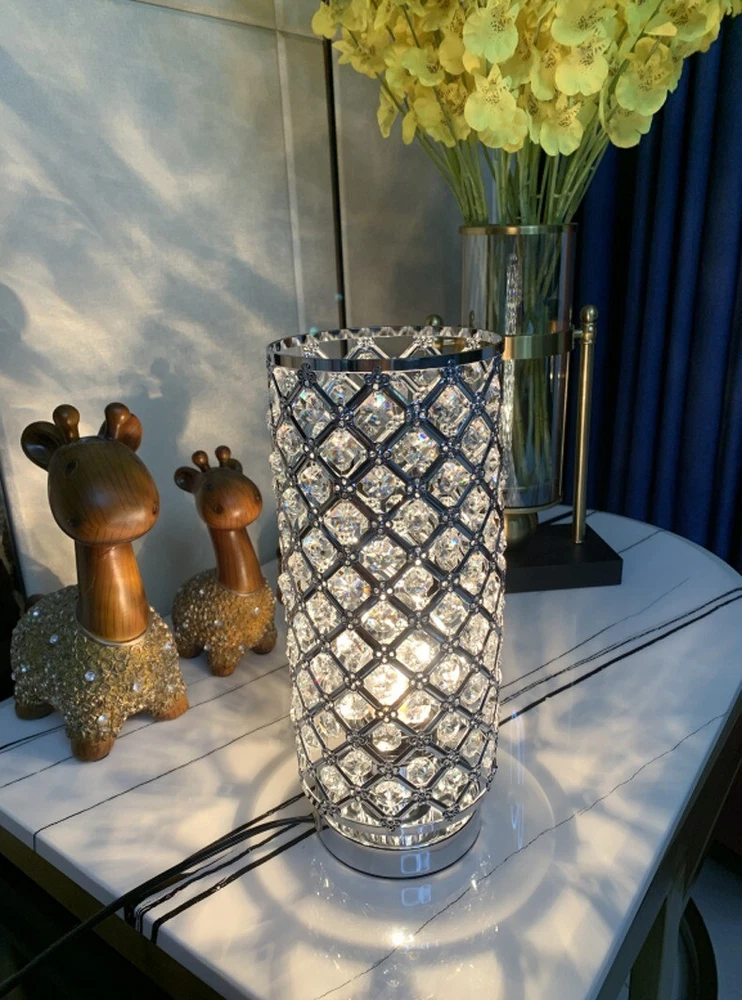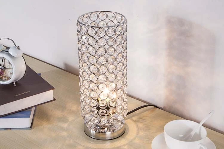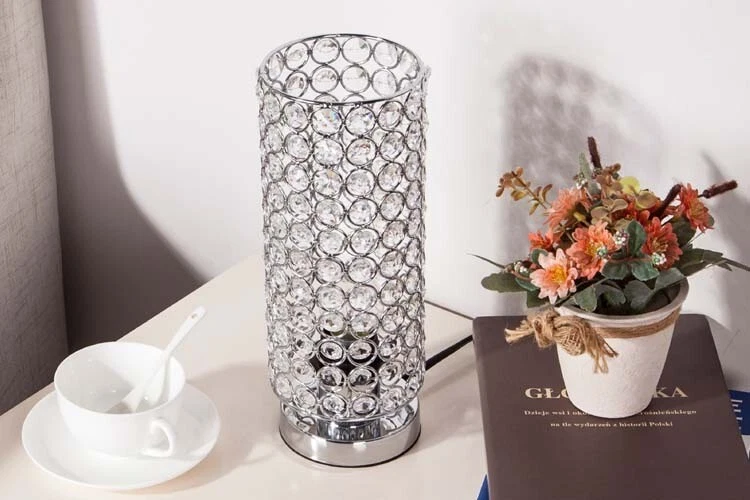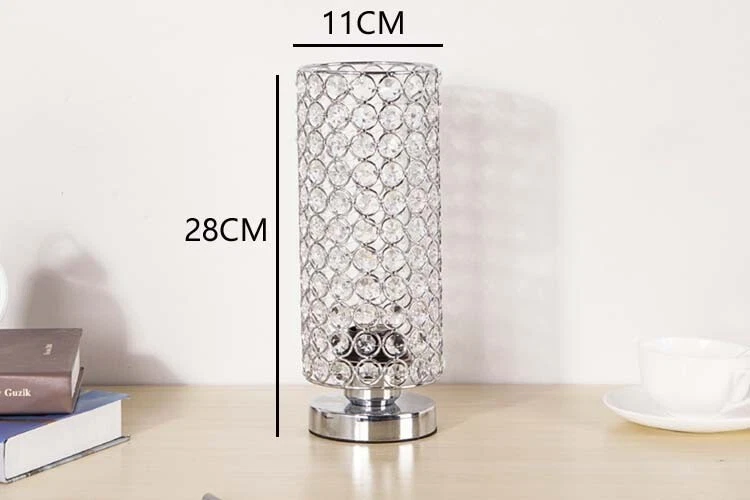 Product Description If you have any questions, please contact customer service first, do not open disputes easily, thank you! Features: Modern crystal design is simple, elegant and stylish. Fine workmanships and exquisite appearance, a nice decoration on the desk of your room. Suitable for living room, dinning room, foyer, bedroom, kitchen, restaurant, hotel, study, etc. Specifications: Item Type: Desk Lamp Material: Iron, Crystal Lamp Bulb Specification: E27 Light color: warm/cool/neutral (3 in 1) Voltage: 110-240V Switch Type: Press Button Plug Type: US Plug Color: Silver Size: 11*28cm(Diameter*H) Package Included: 1* Desk Lamp Notes: 1. Please allow 2-3% difference according to manual mearsurement. 2. The real color of the item may be slightly different from the pictures shown on website caused by many factors such as brightness of your monitor and light brightness. About Us We accept all payments authorized by eBay. powered by