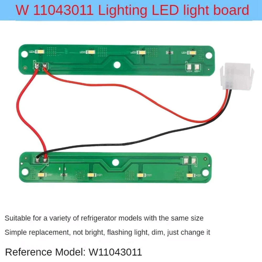 Product Description Features: Perfect match with the original natural white light: The LED light source that matches the original natural white light ensures that the replaced LED light board can maintain the comfort and consistency of the internal lighting of the refrigerator, bringing you a more pleasant experience. High quality cooling material, prolong the service life: The selection of high-quality lightweight aluminum plate as the substrate material, has excellent heat dissipation effect, effectively reduce the temperature of the LED lamp in the working process, thus extending the service life of the LED lamp, reduce the frequency of replacement. Comprehensive protection to ensure safety and reliability: The use of food-grade waterproof paint, with good insulation, moisture resistance, leakage resistance, vibration resistance, dust resistance, corrosion resistance, aging resistance and corona resistance and other multiple protective functions, fully protect the internal wiring and light source of the LED lamp board, to ensure safe and reliable use. Easy installation and cost savings: The reserved holes of the LED panel are perfectly matched to the original housing, and you can easily install the new LED panel by removing the old panel and using the original screw fasteners. No need to purchase additional enclosures and installation accessories, effective cost savings. Specifications: Material: PCB (Aluminium plate) Size: As picture show OEM Part Number: W11043011 Replace Part Number: AP6047972, W10866538, PS12070396, EAP12070396, 4533926 Compatible Brand: For Whirlpool, for Kenmore, for Maytag, for Amana, for Ikea, etc. Compatible Models: WRF555SDHV01, WRF555SDHW00, WRX735SDHZ00, WRX735SDBM04, WRX735SDHW00, MFI2570FEZ06, MFI2570FEB01, AFI2539ERB02, AFI2539ERM03, AFI2539ERW02, WRX735SDHZ01, WRF555SDHB00, WRF555SDHV02, WRX735SDHV00, WRX735SDBE02, MFI2570FEZ05, MFI2570FEZ04, MFI2570FEZ03, WRX735SDBH02, IX7DDEXGZ002, MFI2570FEW01, IX7DDEXGZ001, etc. Package Included: 1 x LED Light Board Payment Shipping Returns Contact Us We accept all verified payments from ebay. Orders will be shipped after receiving cleared payment. Payment due within 7 days after auction ends and for buy it now listings. We ship most of our orders within 24 hours, and may up to 48 hours for. If you want faster shipping way. Please contact us before making payment. Sometimes due to problems with our transportation company system, your shipping information may be delayed to update. We recommend that you try again after 3-4 days. If you still haven't checked the shipping information, you can contact us by ebay message. Always believe we can figure things out with communication, if it comes to return, the pacakge must be intact and the same as you receive. If you have any questions, please feel free to email our service specialists 24 Hours a Day, 7 Days a Week. We will reply you ASAP. Return/refund is accepted within 30 days after the buyer receives the item. NO exchange will be accepted after 30 days from the date when the item is received. Please contact us first before returning your product!!! If you have any questions, our Customer Service staffs welcome you to email us. We strive to answer all questions and resolve any problems as quickly as possible. You can contact us 7*24, we will reply at the first time, and we will surely solve your problems. Note: 1.We try our best to reply to your emails as soon as possible, however, due to high volume of daily incoming emails and time zone difference, we may not be able to reply your emails immediately. Please allow 1 business days for us to response. If you do not receive any reply from us, please check your email ensuring your mailbox has not reached full size. 2.Due to some ISP SPAM filter settings, you may not be able to receive our replies; if you have problems receiving our emails, you may need to use a different email account to contact us. 3.Please give us the opportunity to resolve any problem. We understand the concerns and frustrations you might have, and will try our best to resolve the issues. Please email us before leaving any negative feedback or open any dispute on PayPal. 4.We care about our valued customers, and will always try to help you. So if you have any problems, please e-mail us immediately. Payment We accept all verified payments from ebay. Orders will be shipped after receiving cleared payment. Payment due within 7 days after auction ends and for buy it now listings. Shipping We ship most of our orders within 24 hours, and may up to 48 hours for. If you want faster shipping way. Please contact us before making payment. Sometimes due to problems with our transportation company system, your shipping information may be delayed to update. We recommend that you try again after 3-4 days. If you still haven't checked the shipping information, you can contact us by ebay message. Returns Always believe we can figure things out with communication, if it comes to return, the pacakge must be intact and the same as you receive. If you have any questions, please feel free to email our service specialists 24 Hours a Day, 7 Days a Week. We will reply you ASAP. Return/refund is accepted within 30 days after the buyer receives the item. NO exchange will be accepted after 30 days from the date when the item is received. Please contact us first before returning your product!!! Contact Us If you have any questions, our Customer Service staffs welcome you to email us. We strive to answer all questions and resolve any problems as quickly as possible. You can contact us 7*24, we will reply at the first time, and we will surely solve your problems. Note: 1.We try our best to reply to your emails as soon as possible, however, due to high volume of daily incoming emails and time zone difference, we may not be able to reply your emails immediately. Please allow 1 business days for us to response. If you do not receive any reply from us, please check your email ensuring yo