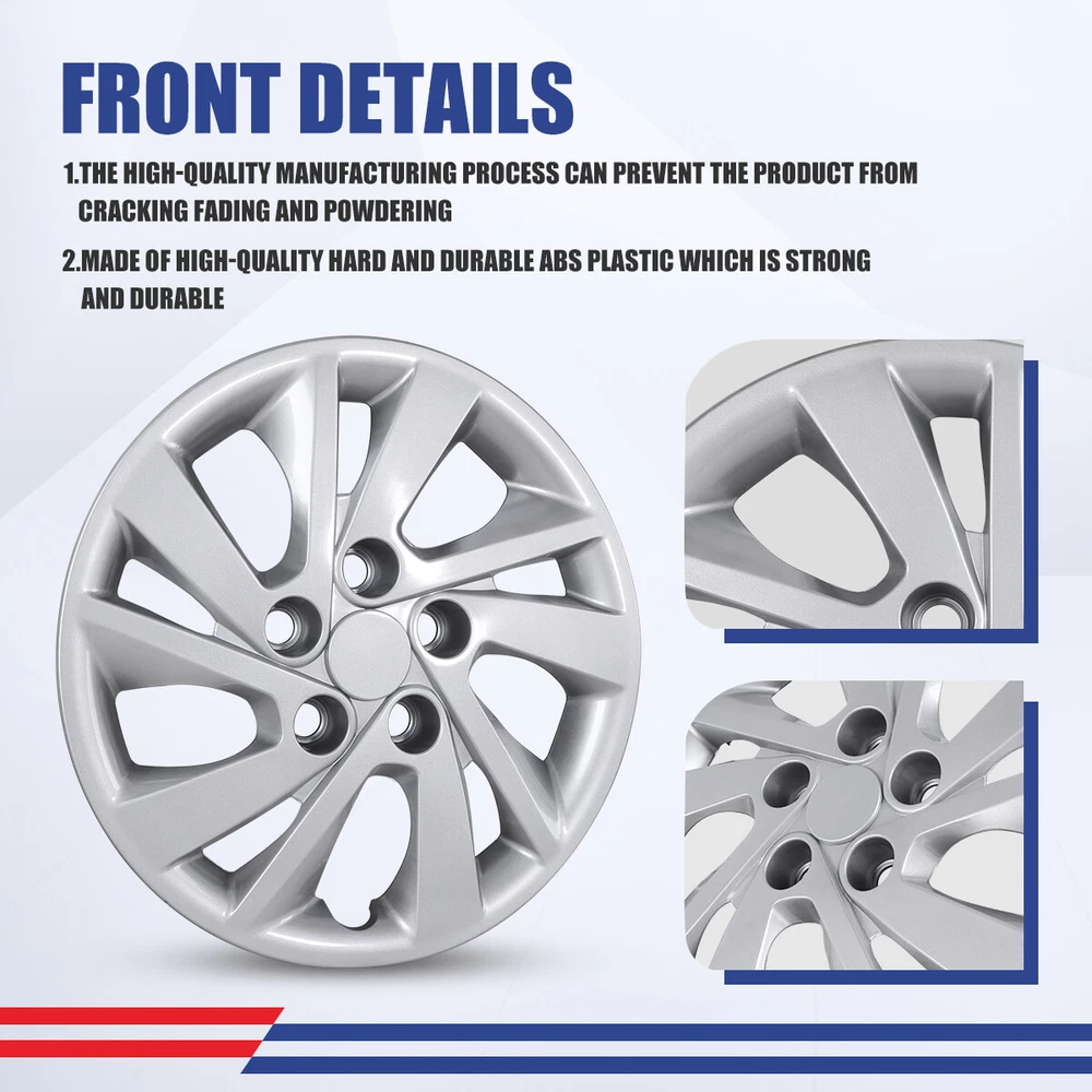 Title Other Head Lights For Jeep For Ford For Dodge For Chevy/GMC For Honda For Toyota For Nissan For Subaru For Mazda For Acura For Mitsubishi For Audi For MINI Tail Lights For Jeep For Dodge For Chevy/GMC For Toyota For Nissan For Honda For Volkswagen For Mazda For Subaru For Isuzu For Mitsubishi For Cadillac For MINI Fog Lights For Jeep For Ford For Honda For Dodge For Toyota For Chevy/GMC For Nissan For Mazda For Subaru For Infiniti For Cadillac For Scion For Lincoln For Acura For BMW For Hyundai For Volkswagen For Buick For Chrysler For Lexus For Mercedes Benz For Kia For Audi For MINI Turn Signal Lights For Jeep For Ford For Dodge For Chevy/GMC For Toyota For BMW For Subaru For Nissan For Cadillac For Lincoln 1PCS 15" Hub Caps for Hyundai Elantra Sedan 2017-2020 Wheel Rim Covers Bolt-On π₯Specification: Type: Wheel Hub Caps Color: Silver Compatible Wheel Diameter: 15 inch Features:Car Wash Safe, Easy to Install, No Tools Required Material: ABS Plastic Number in Pack: 4 Wheel Type: Steel Placement on Vehicle: Front, Left, Rear, Right π₯ Features: Fit For 2017-2020 Hyundai Elantra Sedan - Design for 15" wheel hubs. Please know that and check your wheel before purchase to ensure fitment. Protect Your Wheels - Keep your vehicle looking sleek and new with these universal-fit hubcaps that offer reliable protection against scratches, dings, and other types of damage. Easy to Install - Designed to fit most standard wheel size, these hubcaps can be quickly and easily snap on your wheels without the need for special tools, making them a great choice for busy vehicle owners. Durable - Made from high-quality ABS materials, these hubcaps are built to withstand the rigors of daily use, keep your vehicle looking great for years. Stylish - Upgrade the look of your car or truck with these sleek hubcaps to enhance the appearance of your vehicle. π₯ 4 PCS Package Includes 4* Wheel Cover Hubcaps Payment Delivery details Terms of sales About us Contact us Payment π€ We accept PayPal (Recommended), credit card, VISA, Google Pay & Discover etc. π€ Please submit your payment within 7 days after your purchase. π€ If not, eBay will automatically open an Unpaid Item Dispute on our behalf if the item(s) are not paid within 7 days. Delivery details π€ Please double check your delivery address and contact information. π€ All items will be shipped within 1 business days after payment received. π€ Tracking numbers will be easily accessible ASAP they are created and processed. Terms of sales π€ Free 60 days Return, we will cover the return post fee. π€ If a defective product was received, please do not hesitate to message us via eBay message. π€ We will response in 24 hours in business to resolve the problem π€ We stand behind our products. Items can be returned for exchange or full refund within 60 days from the date you receive. About us π€ Winjet has a huge warehouse and office located in the United States. π€ All US domestic 48 states customers are able to benefit from the FREE SHIPPING services. π€ Our experienced, professional customer service representatives offers prompt and courteous service. π€ Best quality products, outstanding services and professional experience keep our customers. Contact us π€ Please feel free to contact us if you have any problems. π€ Emails will be replied within 24 hours in working days. π€ After hours emails will be replied on the next business day. Country/Region of Manufacture United States OE/OEM Part Number Steel Wheel: 52910-F3000, Wheel Cover: 52960-F3000, 52960-F2000 Interchange Part Number For 2017-2020 Hyundai Elantra Sedan 15" Wheel Rims Cover, Compatible With Steel Wheels Type Hub Cap Features Anti-fade Protection, Easy to Install, Flexible, No Tools Required Manufacturer Part Number 5096G Universal Fitment No Placement on Vehicle Front, Left, Right, Rear Brand Winjet Manufacturer Warranty 1 Year Material PP Finish Glossy, Matte Shipping Fee Free shipping within 48 states Fast Shipping Time Same day shipping before 1pm PST order Return Shipping Seller pays. Free return shipping within 48 states Performance Part Yes Vintage Part No Number in Pack 1 Compatible Wheel Diameter 15 in Installation Bolt-On On Mar 6, 2025 at 03:07:28 PST, seller added the following information: