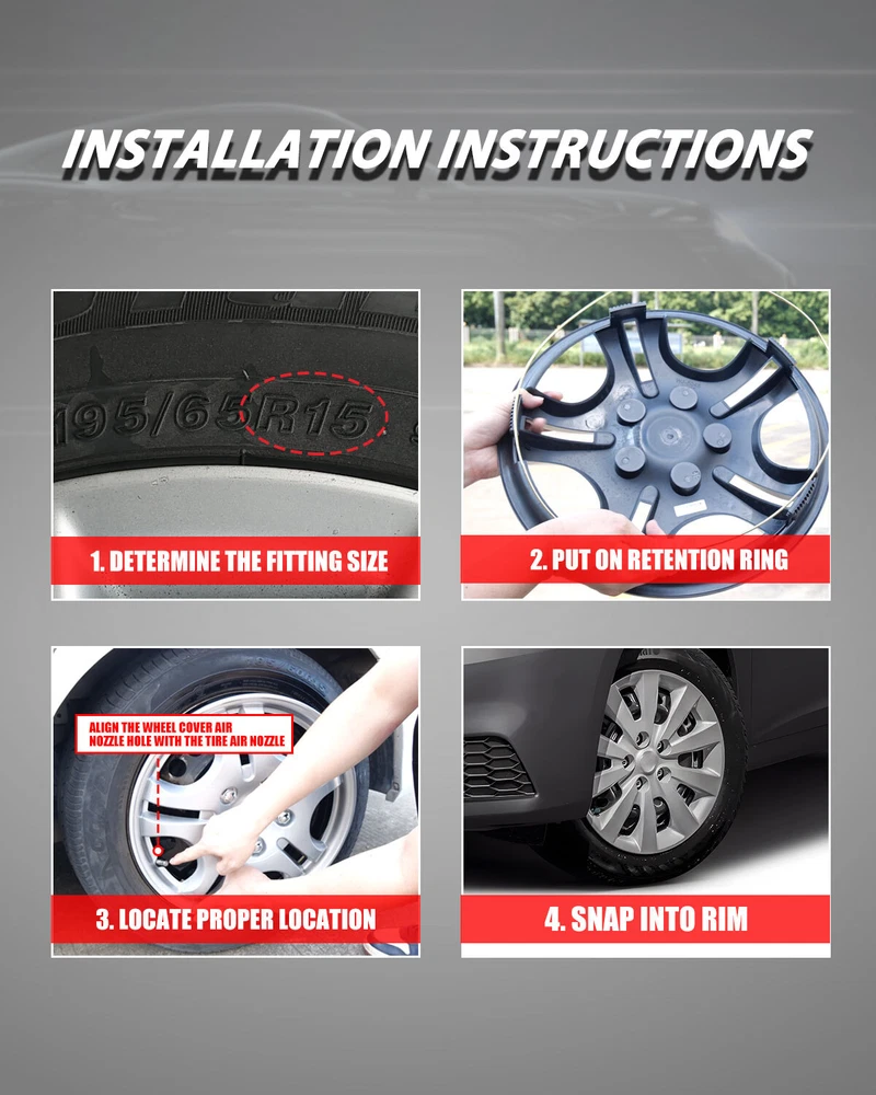 $ 20.064pcs 13-16 Inch Full Rim Snap-On Hub Caps for Tire & Steel Wheels