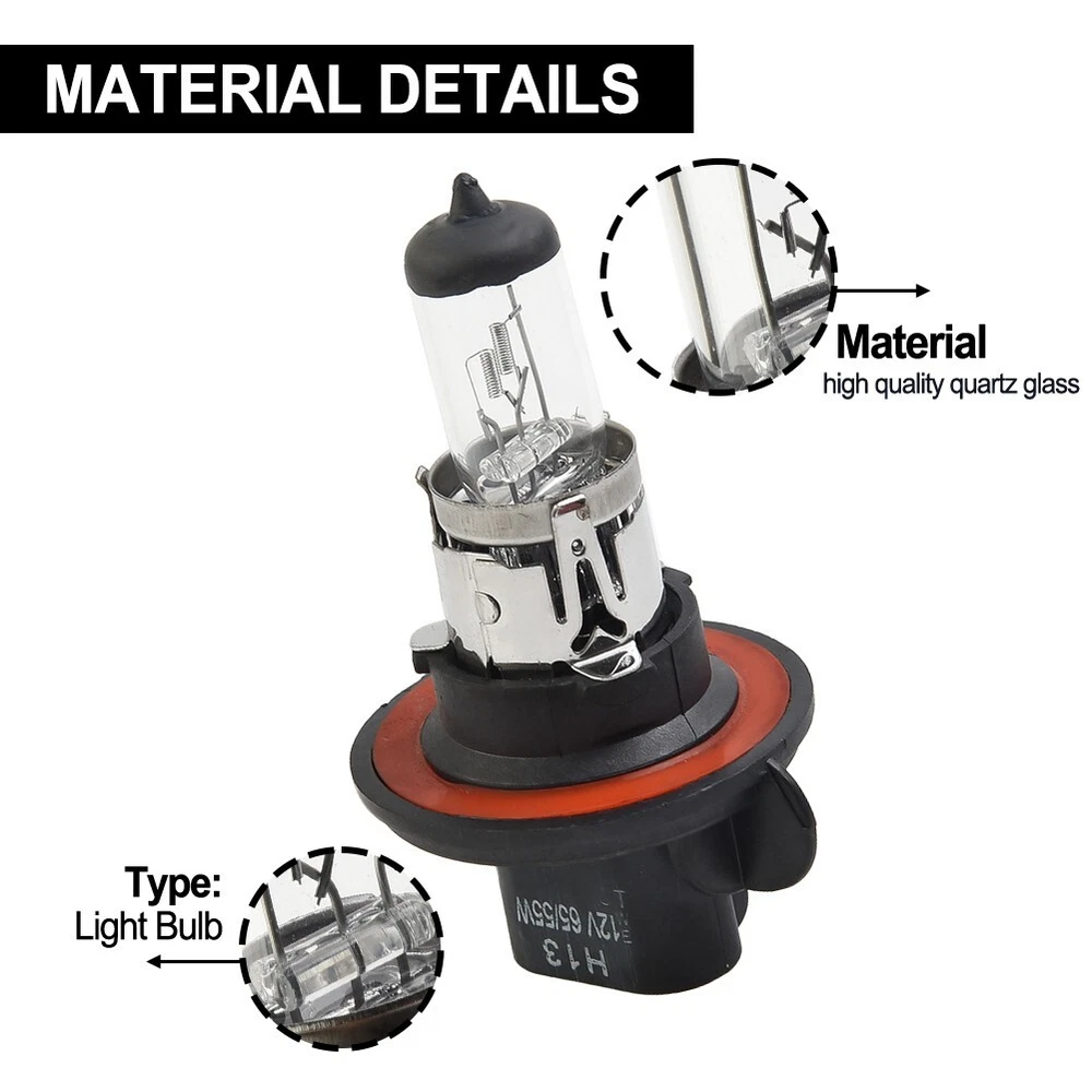 1PCS H13 Halogen Headlight Bulb for Car Quartz Material Clear White Light DESCRIPTION Product Description : Condition:New Performance Part:No Model:H13 OE/OEM Part Number:H13, 9008 Voltage:12V Wattage:55W Type:Light Bulb Material: high quality quartz glass Placement on Vehicle:Front Light Color:Clear White Lighting Technology:Halogen Beam Type:High Beam Lens Color:Clear Number of Bulbs: 1 Fitment Type:Direct Replacement Package Content: 1* Quartz Halogen Bulb POLICES Shipping Payment WARRANTY We only ship to confirmed Paypal addresses. Please comfirm that your paypal address is in line with your shipping address. Please kindly note that the c ombined shipping is not provided because the shipping fee is calculated by weight. Also, the each additional item means exactly the the same color and size. It takes about 7 -15 working days to US; about 10-30 working days to other countries. Transit time may be a little delayed because of the bad weather and customs inspection . If you do not receive your item within 30 working days since payment finished, please contact us immediately for further assistance. We accept payment via Paypal only. Payment must be made within 5 days, Non-payment may result in an UPI (Unpaid Item), eBay will automatically close your account if you accumulate 4 UPI's total. Import cutoms duties or taxes which are not included in item price, if any, are on buyer's responsibility. You can check with your local customs office for further information prior to bidding/buying. We strive for 100% customer satisfaction! Positive Feedback is very important to us. If you have any questions, p lease feel free to contact us via "Ask seller a question" . We will reply your email within 24 working hours.
