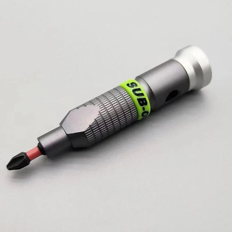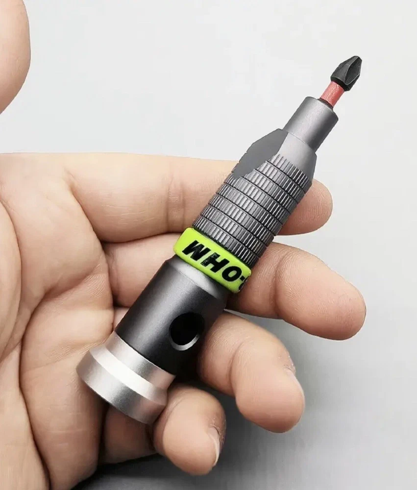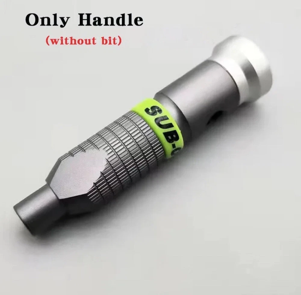 1PC Heavy Duty Metal Grip Hand Tool Mini Handle/Screwdriver 1/4" Hex Bit Holder. Material metal alloy Magnetic to hold bits May have minor Scratches or Dust due to storage and Handling Decorative Green Silicone Ring around the handle is removable . 1PCS Handle only . No bits included .