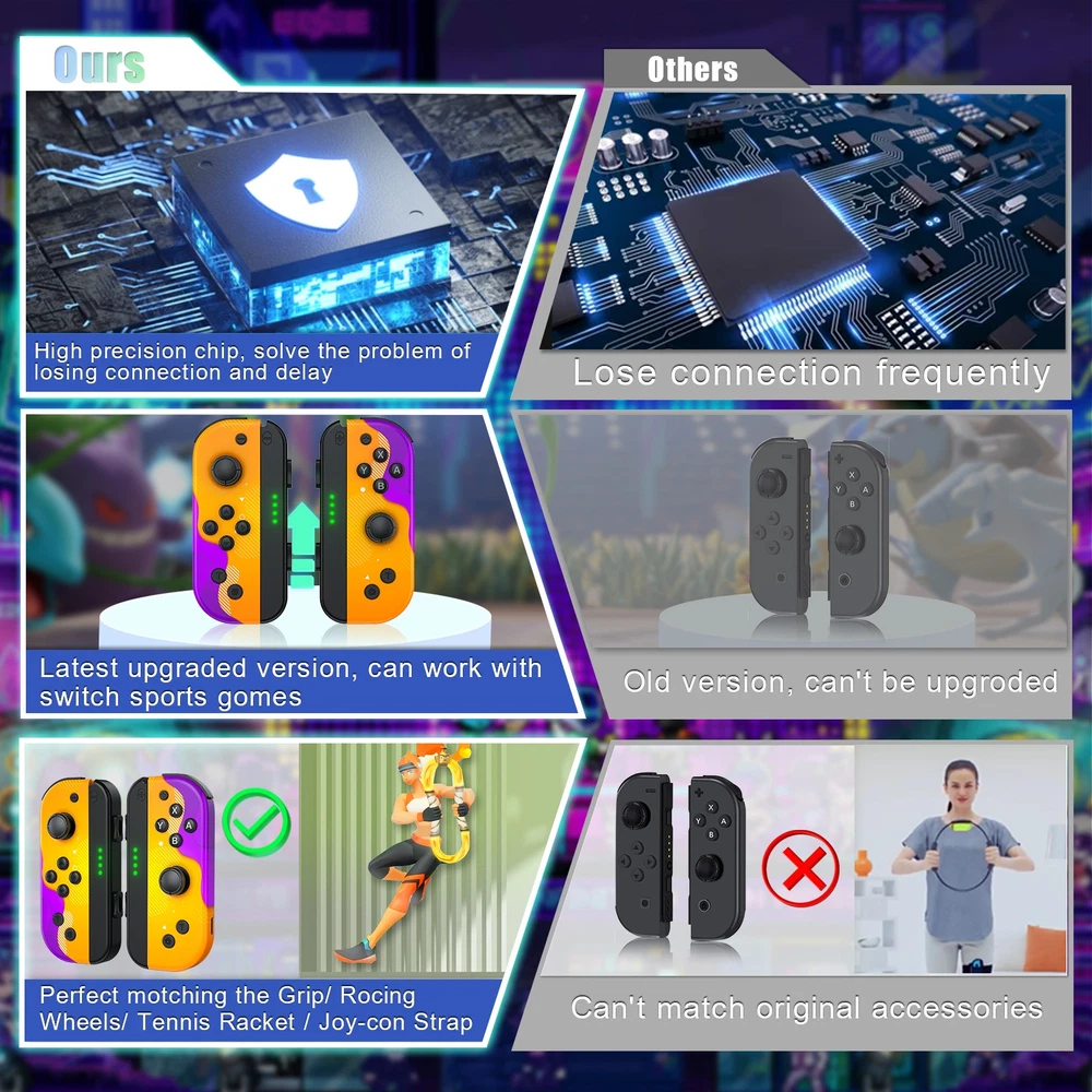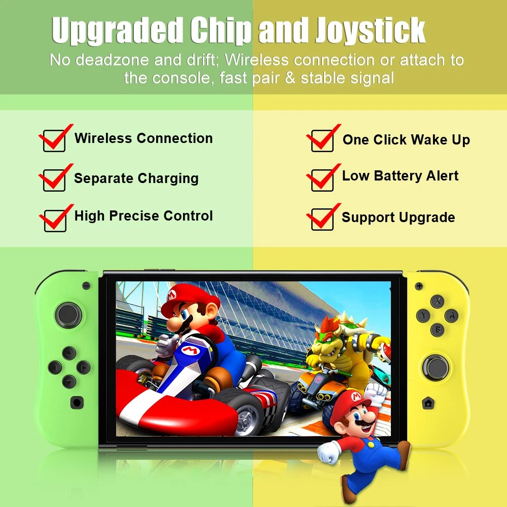 Product Description Wireless Pro Joy-Con Game Controller Console Gamepad Joypad For Nintendo Switch Features: 1) Connection: Bluetooth 2) Fitness ring mode: Support 3) Turbo function: Three gear Fast/medium/slow; Press the turbo+joystick to increase the continuous frequency; hold down the Turbo+joystick down the continuous frequency; The default is the slow gear rate 4) About upgrade: Support 5) Reset function: Support 6) Sensor calibration: Support Description 1) Designed for Switch & Switch OLED- Ideal replacement for Switch Joy-con; The same set of original Joy-con buttons; Could be used independently in each hand or attached to console for use in handheld mode; Superior textured crystalline button; Anti-scratch durable high-grade ABS material; 2024 Newest upgraded version - supports updating controller wirelessly via Switch console directly 2) Ergonomic Design for Long Playtime- Switch Joycon the switch controllers offer several surprising new ways for gamers to have fun; With the unique grip and ergonomic design to rest your palms and index fingers. Convenient to hold When using your Switch as a handheld. You can now play for hours without your hands hurting. Particularly suitable for large hands. The built-in rechargeable battery in each Joy Con controller provides 15-20 hours gaming session. 3) Built-In Linear Vibration Motion Control - Vivefox joy cons for switch nintendo designed with dual motors and built-in 6-Axis Gyro to detect detail movements, our switch controllers are capable of extremely precise speed, position and accurate control, rapid start/stop motion. It helps promote a more realistic gaming experience for the player. Support turning off the "vibration" to save power 4) Wide Compatibility & Stable Performance - Our switch joycons has strong anti-interference and stable signal, you can enjoy the game without lag issue. Perfect for almost all Switch games. Such as the legend of Zelda, Splatoon 2, Mario Kart 8 Deluxe, Just Dance, Pokémon Sword & Shield, Mario + Rabbids Kingdom Battle, Carnival Games, Luigi's Mansion 3, Super Mario Party, Minecraft, Super Mario Odyssey and more Package: 1 * Left Joy Pad Controller 1 * Right Joy Pad Controller 1 * Wrist rope for each Controller Note: These replacement Joy-Con controllers are not manufactured by Nintendo but are fully compatible and provide a high-quality alternative at an affordable price. Upgrade your gaming setup with these replacement Nintendo Switch Joy-Con controllers. Immerse yourself in your favourite games and enjoy seamless control and multiplayer fun. Order now and take your gaming experience to the next level! About Us Welcome to our store! We are a professional worldwide wholesale company. High quality product , reasonable prices, excellent customer service and a reliable credit standing is our tenet.If you like our products, please add my eBay shop to your "My Favorites" list. All the products we are selling include factory warranty , don’t cover items that have been abused, burned and damaged in any form. Payment We accpet payment via PayPal only . Import duties,taxes and charge are not included in the item's price or shipping cost.These charges are the buyer's responsibility. Please check with your country's customs office to determine what these additional costs will be prior to bidding or buying. Insurance is included in the Shipping & Handling costs paid. Shipping Items are generally shipped out in 1-3 business day after your payment has been cleared (Sat. & Sun. excluded.) Orders from the United States Warehouse will be shipped out via USPS or UPS. The shipment usually takes 3-7 business days(Saturday and Sunday excluded), if you need the item urgently, please contact us for detail before purchasing. Local pick up is not available. We do not ship to APO, FPO, Alaska, Hawaii and Puerto Rico addresses, and we are unable to ship to PO BOX for this item. Please provide your psychical address. Returns You have 60 days to return it from the date it was received. All returned items must be in the original package and you must provide us with the shipping tracking number,specific reason for the return and your ebay ID. We will refund your full winning bid amount , upon receipt of the item in its original condition and package with all components and accessories included. Contact Us Dear buyers,we appreciate your business, if you are satisfied with our service , please leave us a Positive feedback and rate the details of the transaction (Detailed Seller Ratings) with a " Pefect Stars ". If you have any concerns about your order,please contact us through eBay message or e-mail to resolve any issues before leaving a negative feedback or openin a dispute. We aim to provide best services and products in exchange your maximum statifaction. We will do our best to resolve your issue till your satisfaction. O ur working time is: 09:00 AM-18:00 PM(Chinese time from Monday to Saturday) .All emails will be answered within 24 hours except weekends and holidays powered by