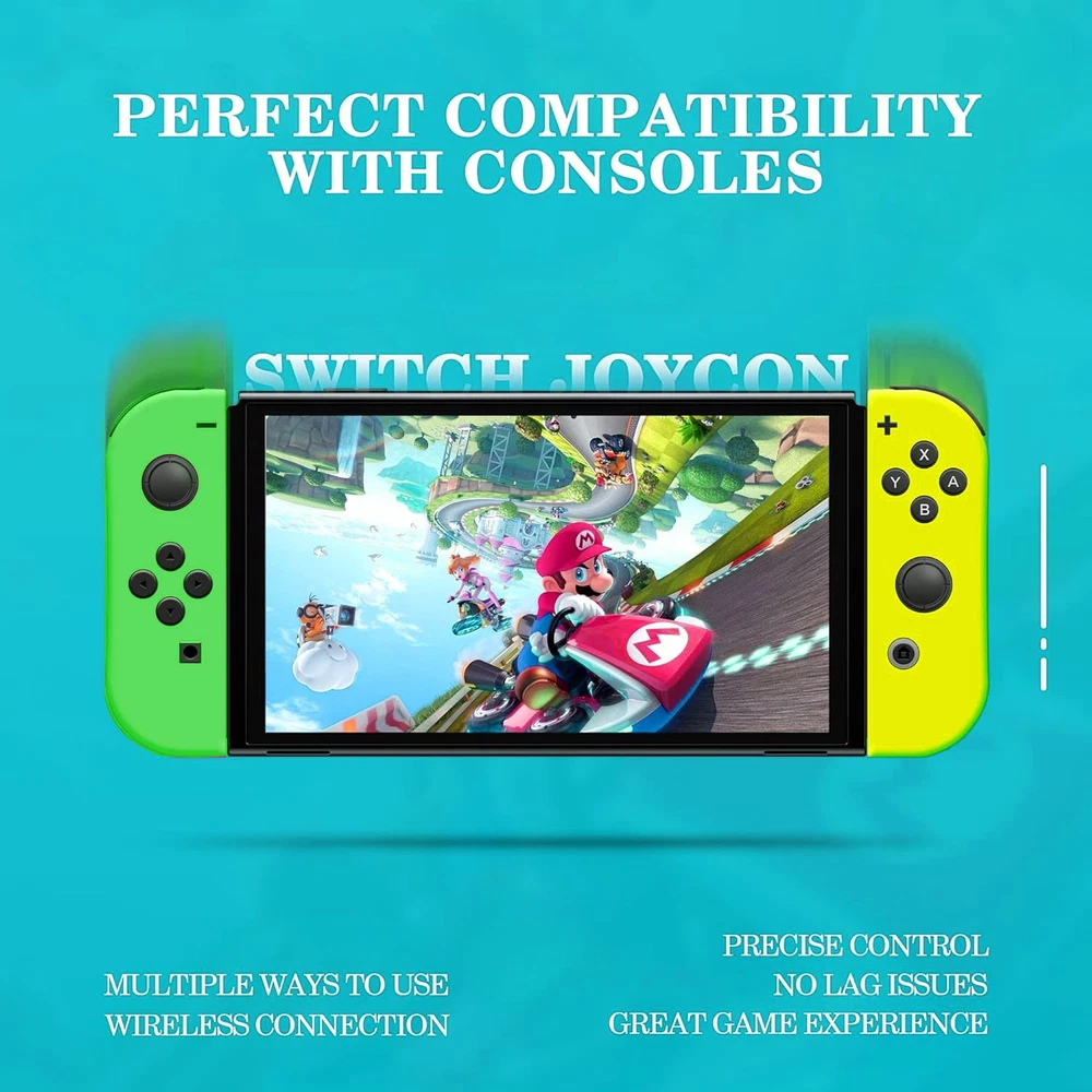 Product Description Wireless Pro Joy-Con Game Controller Console Gamepad Joypad For Nintendo Switch Features: 1) Connection: Bluetooth 2) Fitness ring mode: Support 3) Turbo function: Three gear Fast/medium/slow; Press the turbo+joystick to increase the continuous frequency; hold down the Turbo+joystick down the continuous frequency; The default is the slow gear rate 4) About upgrade: Support 5) Reset function: Support 6) Sensor calibration: Support Description 1) Designed for Switch & Switch OLED- Ideal replacement for Switch Joy-con; The same set of original Joy-con buttons; Could be used independently in each hand or attached to console for use in handheld mode; Superior textured crystalline button; Anti-scratch durable high-grade ABS material; 2024 Newest upgraded version - supports updating controller wirelessly via Switch console directly 2) Ergonomic Design for Long Playtime- Switch Joycon the switch controllers offer several surprising new ways for gamers to have fun; With the unique grip and ergonomic design to rest your palms and index fingers. Convenient to hold When using your Switch as a handheld. You can now play for hours without your hands hurting. Particularly suitable for large hands. The built-in rechargeable battery in each Joy Con controller provides 15-20 hours gaming session. 3) Built-In Linear Vibration Motion Control - Vivefox joy cons for switch nintendo designed with dual motors and built-in 6-Axis Gyro to detect detail movements, our switch controllers are capable of extremely precise speed, position and accurate control, rapid start/stop motion. It helps promote a more realistic gaming experience for the player. Support turning off the "vibration" to save power 4) Wide Compatibility & Stable Performance - Our switch joycons has strong anti-interference and stable signal, you can enjoy the game without lag issue. Perfect for almost all Switch games. Such as the legend of Zelda, Splatoon 2, Mario Kart 8 Deluxe, Just Dance, Pokémon Sword & Shield, Mario + Rabbids Kingdom Battle, Carnival Games, Luigi's Mansion 3, Super Mario Party, Minecraft, Super Mario Odyssey and more Package: 1 * Left Joy Pad Controller 1 * Right Joy Pad Controller 1 * Wrist rope for each Controller Note: These replacement Joy-Con controllers are not manufactured by Nintendo but are fully compatible and provide a high-quality alternative at an affordable price. Upgrade your gaming setup with these replacement Nintendo Switch Joy-Con controllers. Immerse yourself in your favourite games and enjoy seamless control and multiplayer fun. Order now and take your gaming experience to the next level! About Us Welcome to our store! We are a professional worldwide wholesale company. High quality product , reasonable prices, excellent customer service and a reliable credit standing is our tenet.If you like our products, please add my eBay shop to your "My Favorites" list. All the products we are selling include factory warranty , don’t cover items that have been abused, burned and damaged in any form. Payment We accpet payment via PayPal only . Import duties,taxes and charge are not included in the item's price or shipping cost.These charges are the buyer's responsibility. Please check with your country's customs office to determine what these additional costs will be prior to bidding or buying. Insurance is included in the Shipping & Handling costs paid. Shipping Items are generally shipped out in 1-3 business day after your payment has been cleared (Sat. & Sun. excluded.) Orders from the United States Warehouse will be shipped out via USPS or UPS. The shipment usually takes 3-7 business days(Saturday and Sunday excluded), if you need the item urgently, please contact us for detail before purchasing. Local pick up is not available. We do not ship to APO, FPO, Alaska, Hawaii and Puerto Rico addresses, and we are unable to ship to PO BOX for this item. Please provide your psychical address. Returns You have 60 days to return it from the date it was received. All returned items must be in the original package and you must provide us with the shipping tracking number,specific reason for the return and your ebay ID. We will refund your full winning bid amount , upon receipt of the item in its original condition and package with all components and accessories included. Contact Us Dear buyers,we appreciate your business, if you are satisfied with our service , please leave us a Positive feedback and rate the details of the transaction (Detailed Seller Ratings) with a " Pefect Stars ". If you have any concerns about your order,please contact us through eBay message or e-mail to resolve any issues before leaving a negative feedback or openin a dispute. We aim to provide best services and products in exchange your maximum statifaction. We will do our best to resolve your issue till your satisfaction. O ur working time is: 09:00 AM-18:00 PM(Chinese time from Monday to Saturday) .All emails will be answered within 24 hours except weekends and holidays powered by