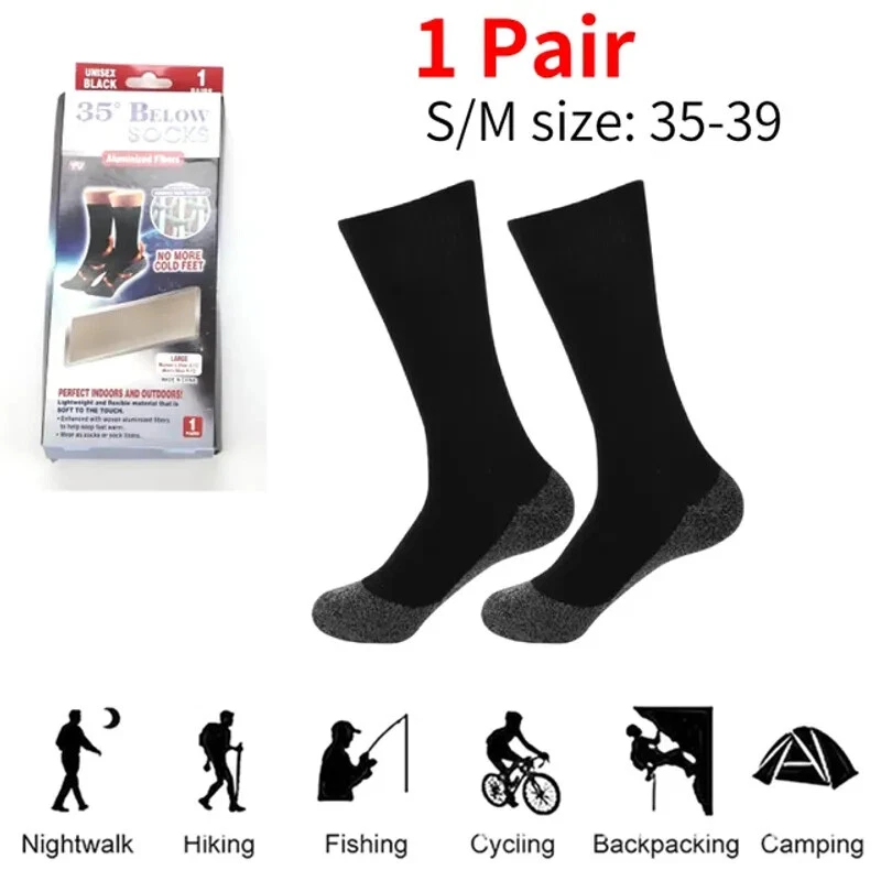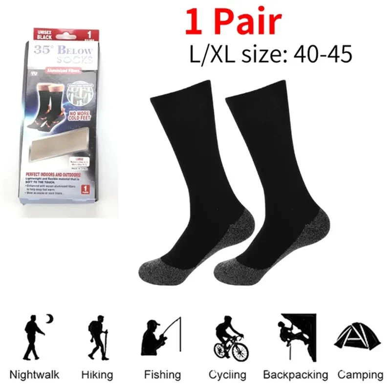 1Pair Winter Self-Heating Socks Thermal Heated Socks Soft Elastic Thicken Anti-Slip Socks For Women Men Outdoor Ski Tube Socks Gallery Description 1Pair Winter Self-Heating Socks Thermal Heated Socks Soft Elastic Thicken Anti-Slip Socks For Women Men Outdoor Ski Tube Socks Breathable 35 Degree Constant Temperature Heat Stockings Acetate Fibers Heating Fiber Stockings Thermal Socks for Indoor Outdoor Feature: 1. Breathable & Warm: Added real heating fiber. Comfortable and dry in the coldest, most extreme environments. Lightweight and breathable V-shaped aluminum wires reflect heat and moisture to keep feet warm and dry. 2. Medium Thickness: Despite their warmth, these boot socks are significantly thinner than other thermal socks, providing insulation and heat retention with a thinner construction. Wear these for all-day comfort beneath your boots, with shoes or slippers, or while lounging around the house. 3. Comfortable Fit: The warm socks have a snug fit and an elastic top that ensures they stay firmly on your feet without slipping or sliding. 4. Warmest Thermal Socks: These thermal socks will envelop your feet in cozy warmth, carrying you through the most brutal of winter days. Say goodbye to cold feet and frozen toes at the end of a long day spent outside in extremely cold weather. 5. Ideal For Winter Sports: Snow shoveling, running, hiking, skiing, snowboarding, hiking, hockey, and other sports. Specification: Hose Height: Knee-High Finger-separated: No Sport Type: Running Department Name: Unisex Material: Acetate Fiber Main fabric composition: Acetate Fiber Small size: 35-39 yards Large size: 40-45 yards Note: Due to the different monitor and light effect, the actual color of the item might be slightly different from the color showed on the pictures. Thank you! Please allow 1-2cm measuring deviation due to manual measurement. 1pair x Thermostatic Socks Shipping Free Worldwide Shipping Payment Policy Safe and secure payement with PayPal! Return Policy 30 Days returns!
