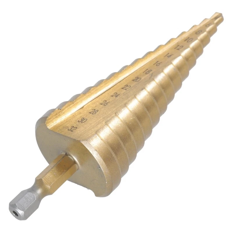 This HSS step drill bit is a game-changer for DIY projects! It cuts through steel, plastic, and brass effortlessly thanks to the high-quality steel and friction-reducing coating. No more swapping bits—the multiple sizes (4-32mm) handle different holes smoothly. The triangular shank ensures a secure grip, and the sturdy build lasts. Perfect for clean, precise drilling every time. Highly recommend!