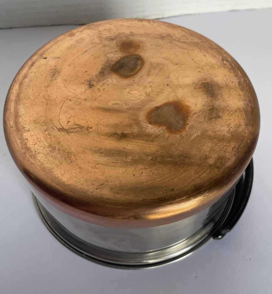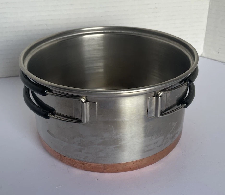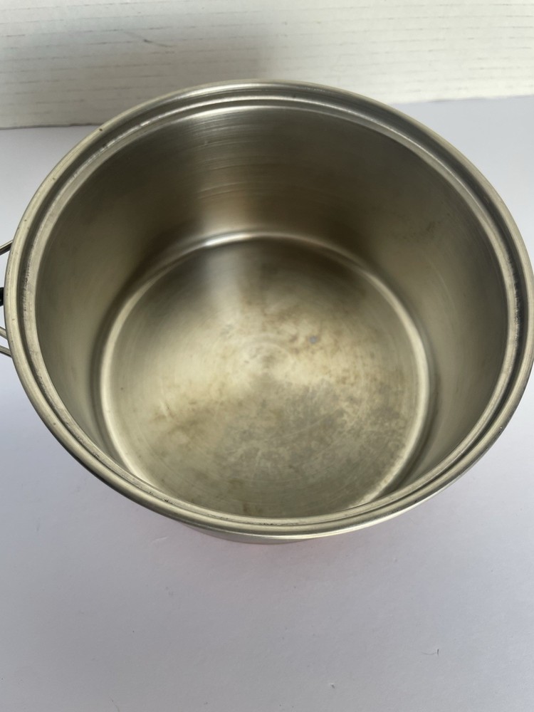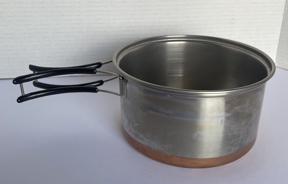 Camping 1Qt. Cooking Stainless Steel Cooking Pot Moveable Handles Copper Bottom. Condition is Used. Shipped with USPS Ground Advantage.