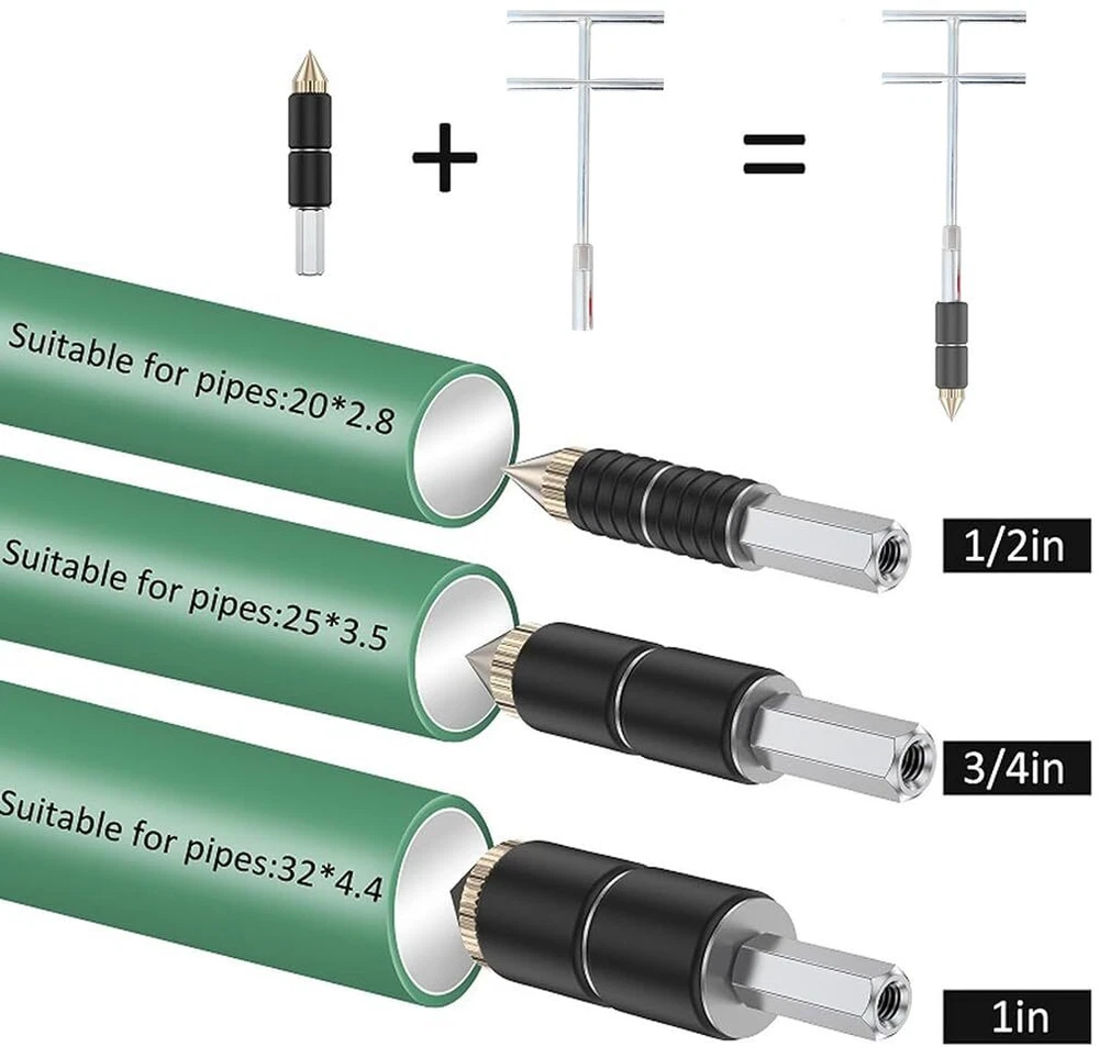 The Plumbing Hero: When a faulty water pipe or the main valve cannot be closed, the pipe repair by hot fusion becomes impossible. Worry not, for water stop needle plumbing kit is here! This clever pipe tool can seal under 60 lbs. of water pressure without draining the system. Ergonomic Design: Our pipe stopper pins allow for immediate shutoff of water supply lines! The included T-wrench hand tool includes an additional protective bar, setting it apart from the competition while assuring reduced torque and energy consumption - no more unwanted drips during repairs! Adaptive All-Rounder: With its high heat resistance, this ultimate plumber tool can be used for both indoor and outdoor cracks, on a variety of surfaces, including walls, corners, and tunnels. To stop the water flow, place the pipe water stopper on the pipe and twist the dowel to let the rubber slide. Reliable Convenience: This repair tools & home improvement solution uses rust-resistant stainless steel for rapid and long-lasting fixes to pipe leaks. Its lightweight, robust, weather-resistant build is ideal for year-round tasks, including home renovation, building maintenance, and drinking water operations. Leak Slayer Deluxe Kit: The kit contains three different-sized PPR Tube Water Stopper Needles (1/2", 3/4", and 1"), a release pin, a double-bar t-wrench, and extra rubber sleeves; all of which are suitable both as household gadgets and as professional plumbing tools.