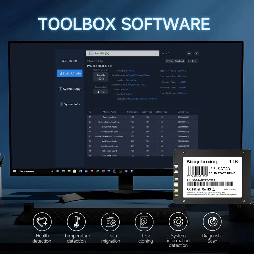 1TB 512GB 256GB SSD 2.5'' SATA SSD III 6Gb/s 560MB/s Internal Solid State Drive Solid State Disk Introduce: Physical dimension: 2.5 Inch(100mm×70mm×7mm) Product Model: SATA 2.5" Interface: SATAIII、SATAII、SATAI Application: Desktop、Laptop、Ultrabook、Computer integrated machine Features:quickness、stabilization、energy-saving、Mute、Light weight SSD Capacity: 32GB/60GB/64GB/120GB/128GB/360GB/480GB/512GB/1TB/2TB System support: Windows xp、windows 7、Windows8. 1、Windows 2003、Windows 2008、DOS、Linux、Unix. Warranty: 3 years Application scenario The 2.5 interface compliance for mostly desktop and laptop. Performance Testing There are differences in the read and write speeds of different capacities, different windows version or computer model still have speed differences, so please treat them rationally. In most times the speed of laptop should be lower than Desktop.