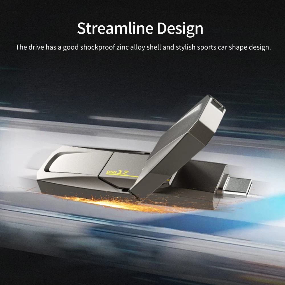 【Ultra-High-Speed Transmission】The 1TB USB 3.2 flash drive reads and writes up to 550MB/s and 420MB/s, 10 times faster than a USB 3.0 memory stick. Results may vary based on host equipment, interfaces, and usage conditions. 【Move Large Files Fast】A small, plug-and-stay, high-speed USB 3.2 flash drive for computers, game consoles, in-car music, and more. Easy transfers and storage. 【Keep Private Files Private】USB encryption safeguards important files against unauthorized access, your private files will remain secure. It protects data privacy and integrity. 【Portable and Easy to Carry】The 1TB Photos stick's tiny size makes you more: Lightweight, like lipstick, about 50g 78*23*9.65 mm. It's also highly portable. The jump drive is always available. 【What You Get】The flash drive comes with both a Type-C to C and a USB 3.2, a welcome guide, 5-year worry-free warranty, and friendly customer service are included.
