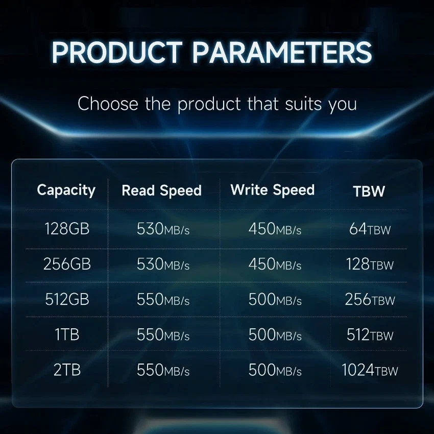 Solid State Disk Introduce: Physical dimension: 2.5 Inch(100mm×70mm×7mm) Product Model: SATA 2.5" Interface: SATAIII、SATAII、SATAI Application: Desktop、Laptop、Ultrabook、Computer integrated machine Features:quickness、stabilization、energy-saving、Mute、Light weight SSD Capacity: 1TB System support: Windows xp、windows 7、Windows8. 1、Windows 2003、Windows 2008、DOS、Linux、Unix. Warranty: 3 years Application scenario The 2.5 interface compliance for mostly desktop and laptop. Performance Testing There are differences in the read and write speeds of different capacities, different windows version or computer model still have speed differences, so please treat them rationally. In most times the speed of laptop should be lower than Desktop.