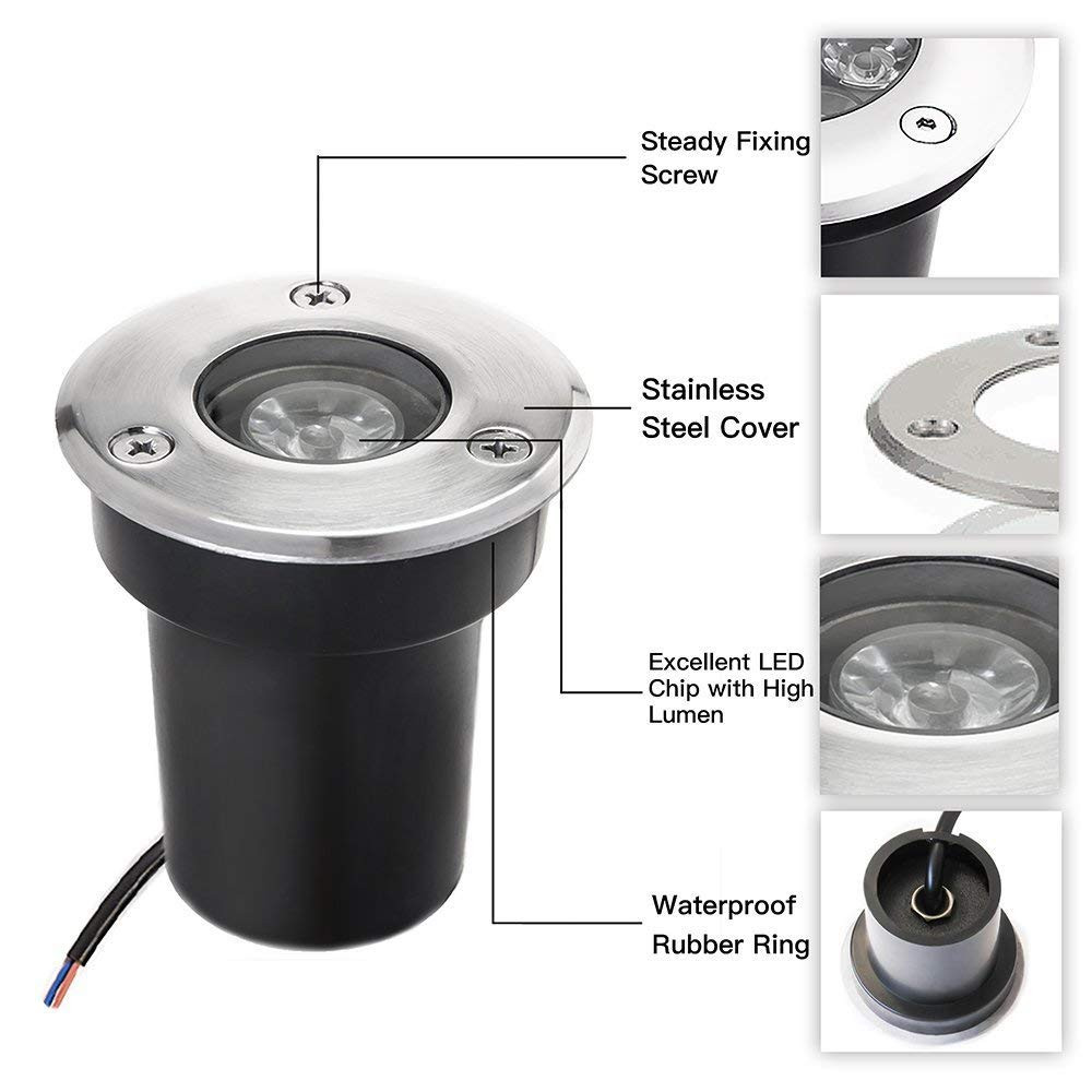 Premium Grade Components: The convex lens are clear, make these buried landscape paver lights appear brighter than the typical one. High temperature tempered soda-lime glass for high-impact resistance. High quality LED light chip, up to 30,000 hours. Safe Voltage: 12V or 24V working voltage, compatible with most low voltage landscape lights transformer. Easier and safer to install, and energy saving. (Transformer required to change 110V to 12V or 24V; (electrical wire and transformer NOT included) IP67 Waterproof: Water tight seals, pressure rubber gasket, rubber seal around wire exit. IP67 waterproof deck lights, perfect for outdoor lighting. Warm Light: The 100 lumen output and 90° beam angle makes these led landscape lights ideal for illuminating pathway, flower beds, trees, fences, flag, walkway, stone wall, doorway, swimming pool and more.