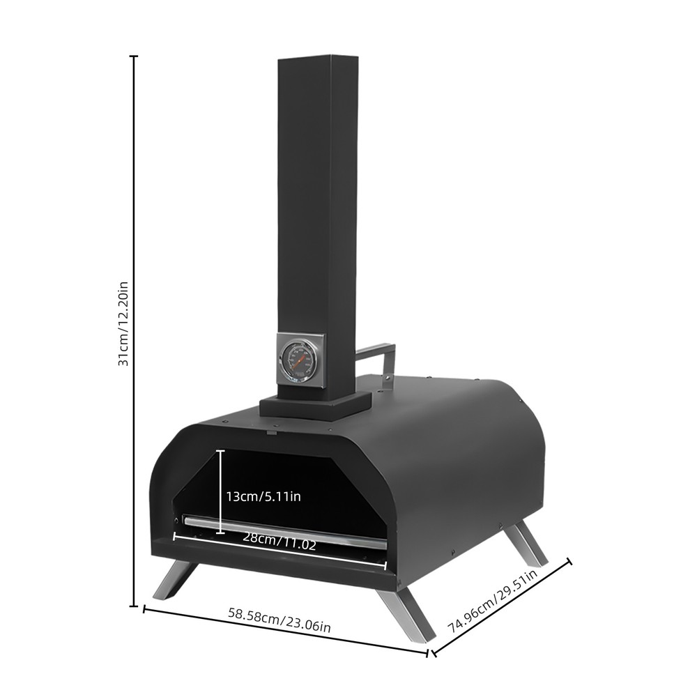 Feature: 1. 【Versatile Outdoor Cooking】: Our stainless steel pizza oven is the perfect addition to your outdoor cooking . With a -15 minute preheat time and the ability to temperatures of around 300°C, youu0027ll have deliciously crispy pizzas cooked in just 90 seconds. But it doesnu0027t stop at pizza - this versatile oven can also be used for baking, roasting, and grilling, making it a must-have for any outdoor cooking enthusiast. 2. 【Convenient and Portable Design】: Designed with convenience in mind, our outdoor pizza oven is perfect for outdoor camping and picnics. Its compact and portable design allows you to bring the wood fire pizza oven wherever you go, so you can enjoy homemade pizza even when youu0027re on the move. The built-in temperature gauge ensures precise cooking, while the lid keeps the heat trapped for efficient cooking. 3. 【Authentic Wood-Fired Taste】: Nothing beats the taste of a pizza cooked in a wood fire pizza oven. Our pellet pizza oven outdoor brings that authentic flavor right to your backyard. By using wood pellets as fuel, youu0027ll get that smoky, charred taste that canu0027t be replicated by traditional ovens. Impress your friends and family with restaurant-quality pizzas made right in your own backyard. 4. 【Durable and Efficient Construction】: Crafted from high-quality stainless steel, our outdoor oven is built to last. The sturdy construction ensures durability and long-lasting performance, while the efficient design allows for even heat distribution and retention. This means youu0027ll get consistent cooking results every time, whether youu0027re baking, roasting, or grilling. 5. 【Perfect for Any Size Pizza】: Our wood pellet pizza oven is designed to accommodate pizzas up to 11 inches in size. Whether you prefer thin crust or deep dish, this versatile oven can handle it all. Its spacious interior provides enough room for multiple pizzas, allowing you to cater to different tastes and preferences. Upgrade your outdoor cooking experience with our pizza oven today! Specification: Features: 【Versatile Outdoor Cooking】: Our stainless steel pizza oven is the perfect addition to your outdoor cooking . With a -15 minute preheat time and the ability to temperatures of around 300°C, you'll have deliciously crispy pizzas cooked in just 90 seconds. But it doesn't stop at pizza - this versatile oven can also be used for baking, roasting, and grilling, making it a must-have for any outdoor cooking enthusiast. 【Convenient and Portable Design】: Designed with convenience in mind, our outdoor pizza oven is perfect for outdoor camping and picnics. Its compact and portable design allows you to bring the wood fire pizza oven wherever you go, so you can enjoy homemade pizza even when you're on the move. The built-in temperature gauge ensures precise cooking, while the lid keeps the heat trapped for efficient cooking. 【Authentic Wood-Fired Taste】: Nothing beats the taste of a pizza cooked in a wood fire pizza oven. Our pellet pizza oven outdoor brings that authentic flavor right to your backyard. By using wood pellets as fuel, you'll get that smoky, charred taste that can't be replicated by traditional ovens. Impress your friends and family with restaurant-quality pizzas made right in your own backyard. 【Durable and Efficient Construction】: Crafted from high-quality stainless steel, our outdoor oven is built to last. The sturdy construction ensures durability and long-lasting performance, while the efficient design allows for even heat distribution and retention. This means you'll get consistent cooking results every time, whether you're baking, roasting, or grilling. 【Perfect for Any Size Pizza】: Our wood pellet pizza oven is designed to accommodate pizzas up to 11 inches in size. Whether you prefer thin crust or deep dish, this versatile oven can handle it all. Its spacious interior provides enough room for multiple pizzas, allowing you to cater to different tastes and preferences. Upgrade your outdoor cooking experience with our pizza oven today! Specification: Product material: Stainless steel Product size: 75 x 53 x 31cm / 29.53 x 20.87 x 12.2in Product color: Black Preheat time: 10-15min Temperature: Up to about 300°C / 572°F Packing List: 1 x Pizza Oven Package List: 1 x Pizza Oven