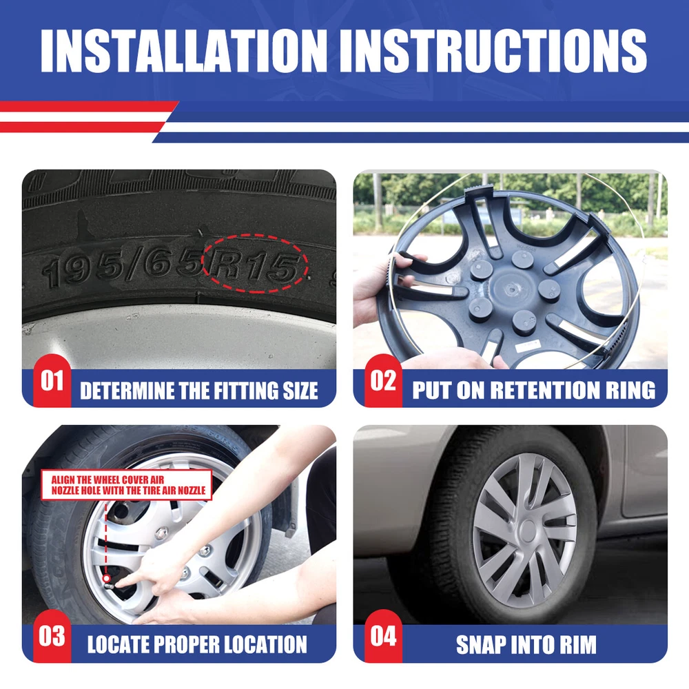 $ 19.014PCS 14-Inch Universal ABS Silver Snap-On Hubcaps for Cars & Trucks
