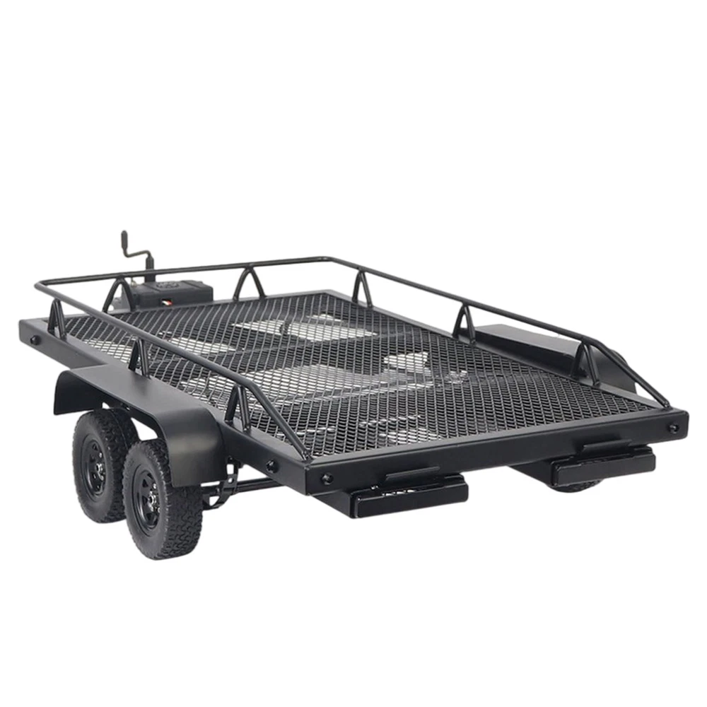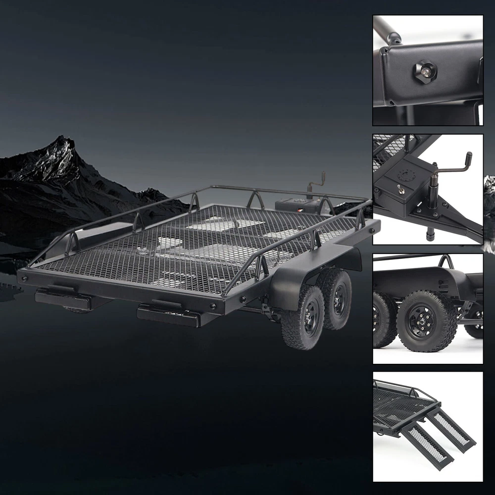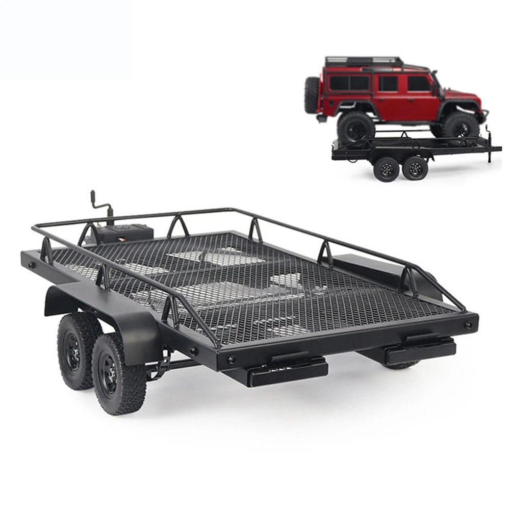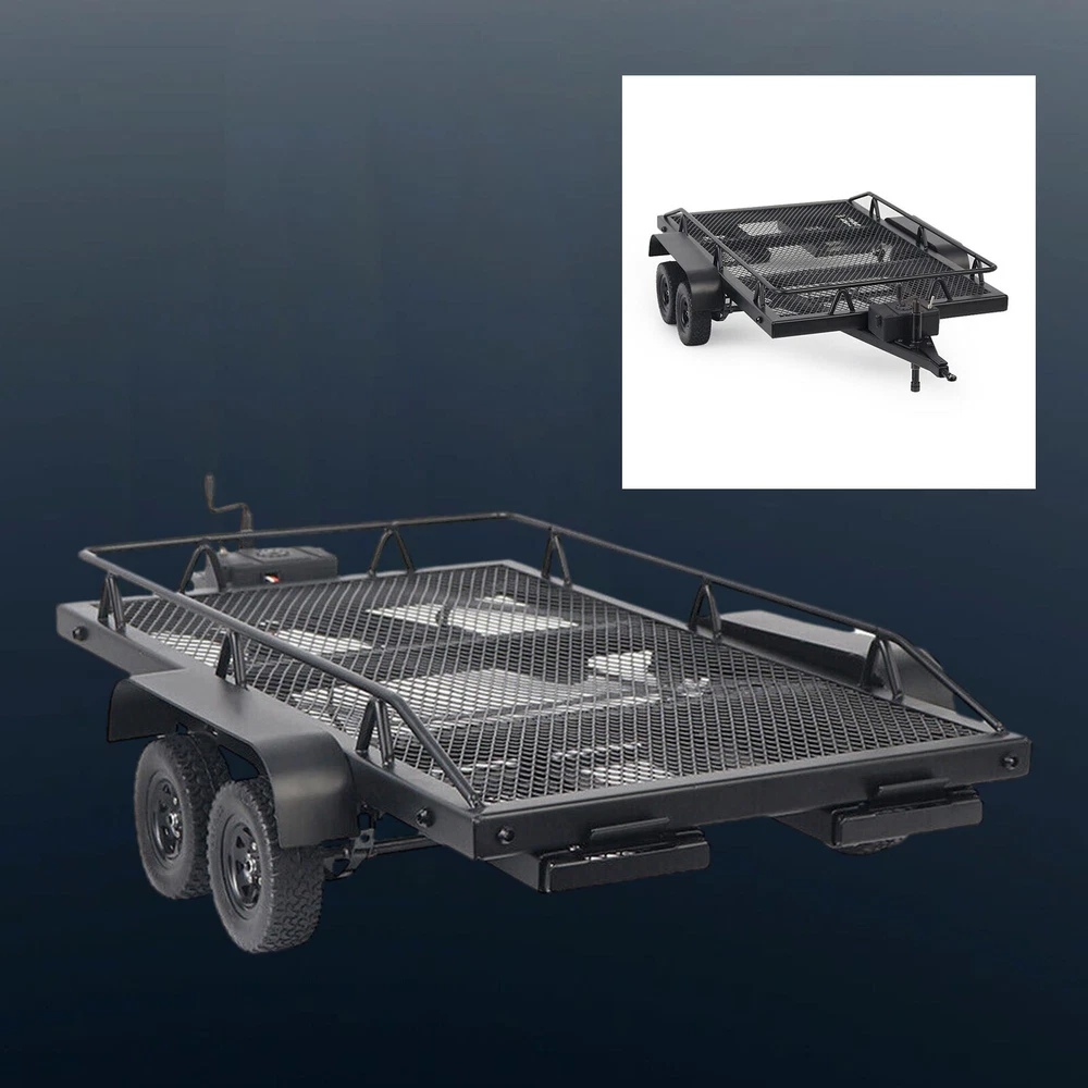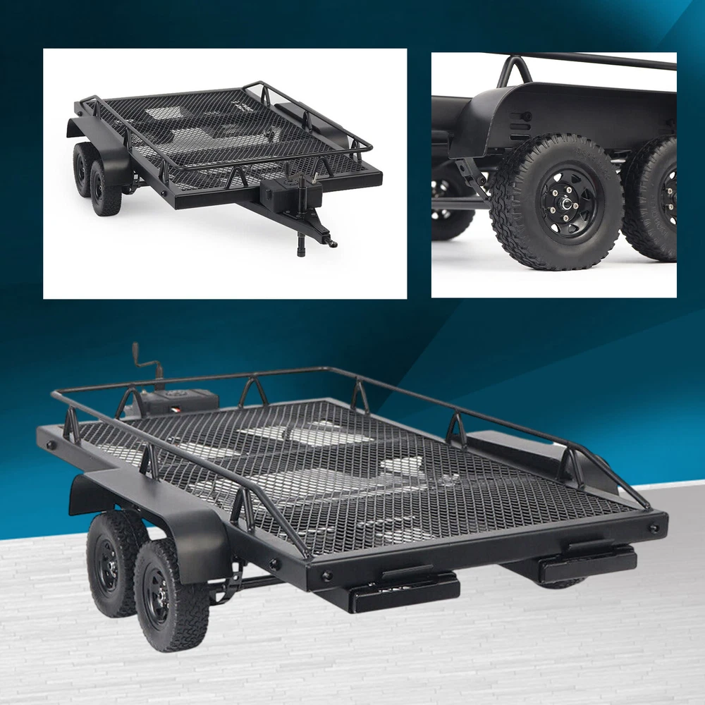 Feature: - 1/10 Scale RC Rock Crawler Model Heavy Duty Trailer - Fit for Traxxas Trx4 Redcat HSP HPI Axial SCX10 C001 D90 D110 RC4WD RC Truck Car - Material: Full Metal - With Leaf Suspension - Very cool accessory for remote control car models refit upgrade fans gift Specification: - Fit 1/10 RC Rock Crawler Truck - Material: FULL Metal - Color: BLACK - With Leaf Suspension - Trailer Dimension: 81.5x34x7.7CM/31.88"x13.38"x3.03" Package includes: 1 x 1/8 1/10 RC Vehicle Model Toy Heavy Duty Trailer Note: Due to the difference between different monitors, the picture may not reflect the actual color of the item Due to manual measurement, there may be 1-2mm error in size
