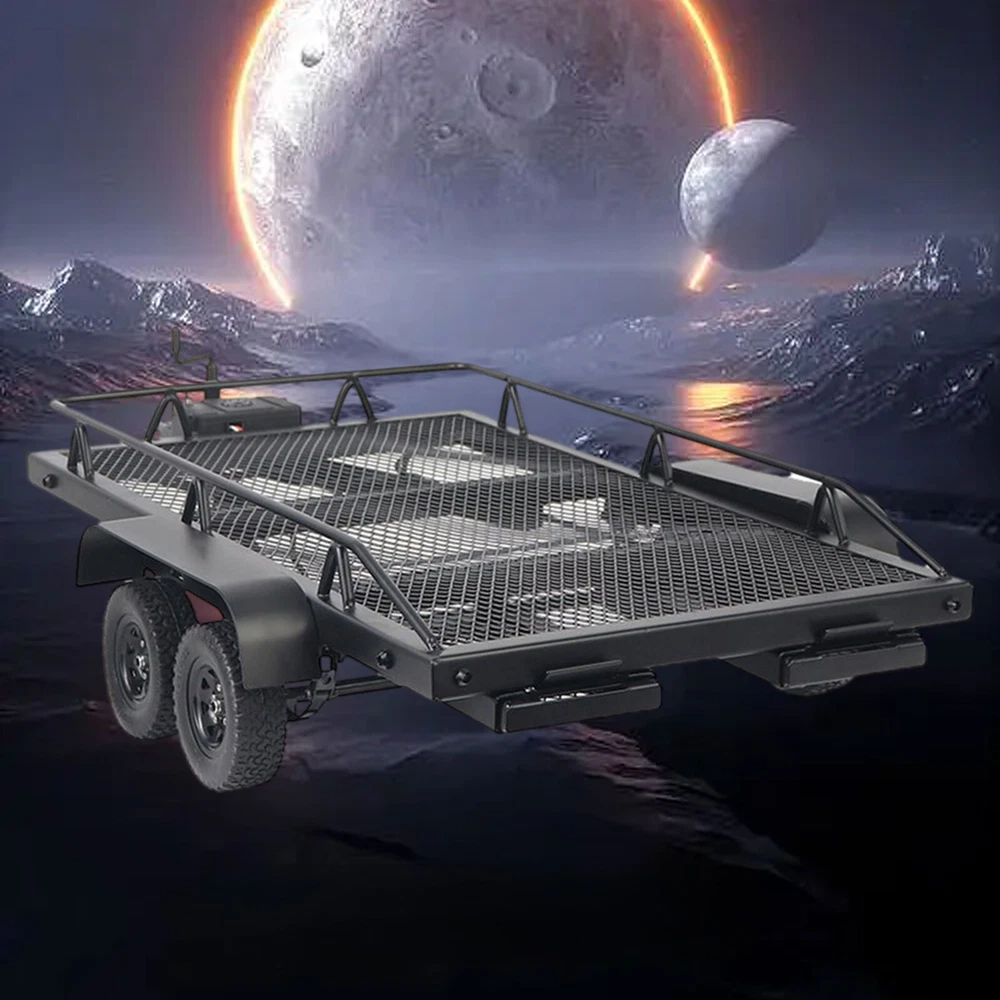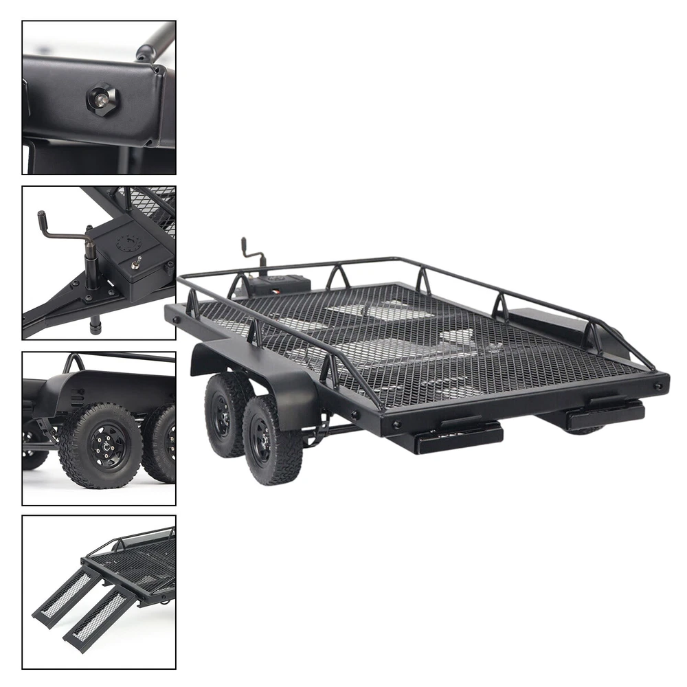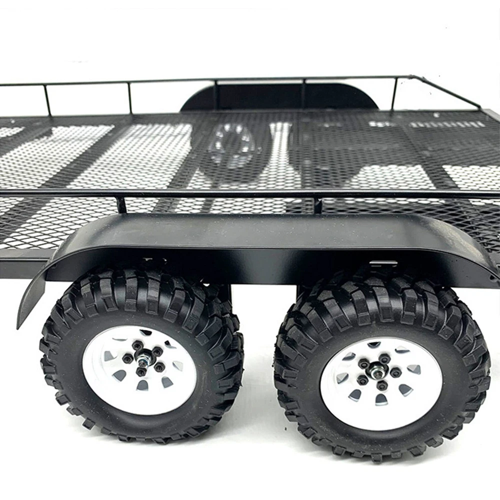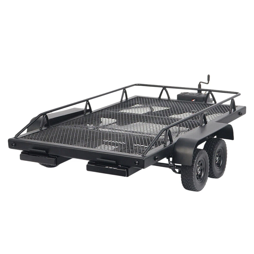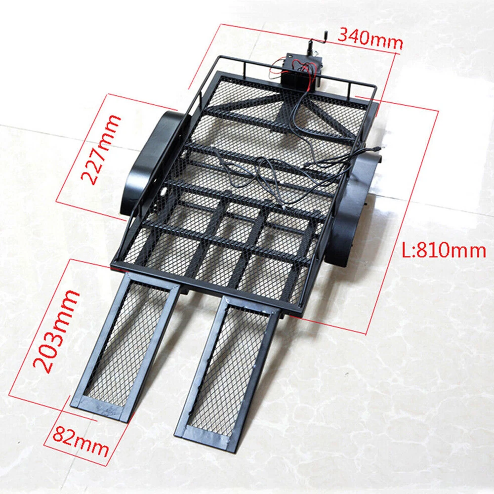 Feature: - 1/10 Scale RC Rock Crawler Model Heavy Duty Trailer - Fit for Traxxas Trx4 Redcat HSP HPI Axial SCX10 C001 D90 D110 RC4WD RC Truck Car - Material: Full Metal - With Leaf Suspension - Very cool accessory for remote control car models refit upgrade fans gift Specification: - Fit 1/10 RC Rock Crawler Truck - Material: FULL Metal - Color: BLACK - With Leaf Suspension - Trailer Dimension: 81.5x34x7.7CM/31.88"x13.38"x3.03" Package includes: 1 x 1/8 1/10 RC Vehicle Model Toy Heavy Duty Trailer Note: Due to the difference between different monitors, the picture may not reflect the actual color of the item Due to manual measurement, there may be 1-2mm error in size