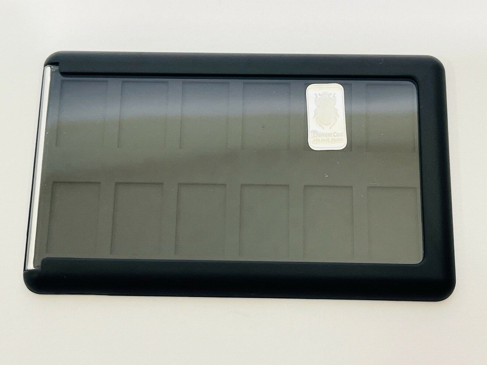 Element Card is here! Finally a vehicle for your precious metals that fits right into your wallet. Larger slots for the Element Card have been the most requested design change from the original Element Card. This particular Element Card holds single gram bullion bars from many different manufacturers including Pamp Suisse, Istanbul Gold Refinery, APMEX, and Credit Suisse. Included: 1 Element Card in matte black 1 Gram of silver bullion bar d ouble dragon exclusive design. 1 Element Card logo sticker decal