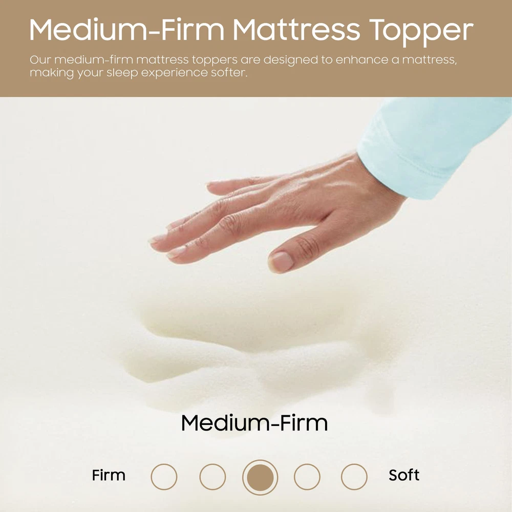 The premium foam adds luxurious softness while not taking away from the support of the mattress. These bed toppers have been effective in enhancing the comfort level of new and old mattresses alike, providing a better sleep experience for most people. This Convoluted Egg Shell Breathable Foam Topper is made from good quality foam that gently cradles you in individualized comfort and support. It also provides you with pressure-relieving cushioning in the hip and shoulder areas while still supplying enough support, so the body doesn't get imbalanced. These unique mattress toppers are to be used on top of your mattress for additional comfort. This prevents your body from sinking and curling while sleeping and promotes a better posture, which reduces and strain on your spine and increases energy levels during the day. Our premium-level mattresses are here to help you get the best possible comfort at all times when you sleep or lie down to relax. Comfort: A mattress topper can add an extra layer of comfort to your mattress, making it feel softer and more luxurious. This can be especially beneficial if you have a firm or uncomfortable mattress. Support: Toppers can provide additional support to your body while you sleep. This can help alleviate pain and pressure points and promote better alignment of your spine. CertiPUR-US certified foam: Rest easy knowing that the topper's foams are CertiPUR-US certified, meeting stringent standards for durability, performance, and content. Quality you can trust. Temperature regulation: Mattress toppers are designed to regulate temperature and keep you cool during the night. This can be especially beneficial if you tend to overheat while you sleep. Cost-effective: If you're not ready to invest in a new mattress, a mattress topper can be a cost-effective solution to improve your sleep experience. It's also easier to replace a topper than a mattress, which can be a more affordable option in the long run.
