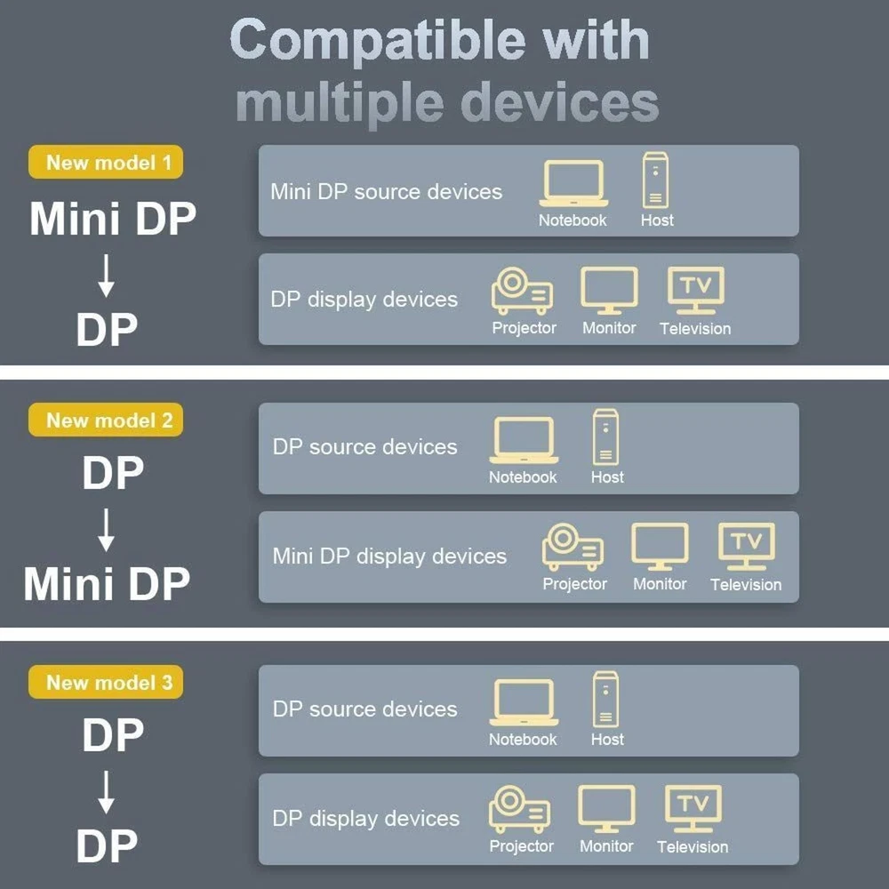 SAFE & SECURE SHOPPING 100% SATISFACTION GUARANTEED FAST SHIPPING Store Categories Store Categories Other DJI & RC Parts Game & Arcades Parts Watch Tools & Parts Auto Parts Headphone Parts Musical Parts Health & Beauty Home & Garden Toys Electronics B & I Military Models Office Suplies Outdoor & Sport You may also like You may also like High Accuracy Quartz Chronograph Watch Wrist Movement VK63A For VK SERIES 27.59 USD 19.99 USD 28 in 1 Game Card Case Holder Cartridge Box For Nintendo DS 3DS XL LL DSi MT I 9.79 USD 19.99 USD 200pcs 0.5&0.6mm Waterproof Watch O-Ring Rubber Gasket Assortment For Watchmaker 12.99 USD 1.99 USD Power Reset On Off Button Switch For Playstation2 for PS2 Slim 70000 Series 9.19 USD 1.99 USD Bluetooth Adapter Aux Audio Cable For Alpine KCE-237B/CDE-101/INA-W900/CDA-105 12.98 USD 15cm Diecast 1/72 WWII German Messerschmitt Me-262 Fighter Model Toy Gift 22.79 USD 1m Laptop Mini DP to DP Cable Conversion Cord 8K@60Hz 4K@144Hz DisplayPort 1.4 Product Description Features: Mini DP To DisplayPort Converter 8K Cable, This Mini DP to DisplayPort 8K Cable enables to connect from Laptops, Desktops equipped with Mini DisplayPort to your 8K External Monitors equipped with Big DisplayPort, So that you can achieve big size picture and video experiences in your monitors, tv or projector screens. It supports Bi-Directional Transmissions. Bi-Directional Transmission Mini DP DP 8K CableThis cable supporting Bi-Directional Transmissions, both supporting transfering from your mini dp laptops to your displayport displays and from your displayport computers to your mini displayport displays. DisplayPort 1.4, Ultra HD 8K Video, Games and Picture Experiences, the Mini DisplayPort to DisplayPort Cable supports max Resolution up to 8K (7680X4320)@60Hz, 4K (3840x2160)@144Hz, 8K Image Quality, Smooth Immensive Experiences, 3D. Specifications: Protocol: DisplayPort 1.4 Support data frequency: 8K@60Hz, 4K@144Hz Length: 1m Color: Black+Grey Connector: Mini DP, DP Package Include: 1 x Mini DP to DP Cable Shipping Returns Contact Us Payment Shipping 1. Items sent from US warehouse. 2.Receiving time = Processing time + Shipping time 3. Processing Time: Around 1-2 business Days 4. Shipping Time: 3-5 business day it may have a little delay during some holiday (such as Christmas),any problem ,please feel free to contact Returns 1. 30 days warranty from the purchased date. Please contact us via email before returning the defective item. 2.Our warranty does not extended to any product that are physically damaged or that are not under normal operating conditions as result of misuse or improper installation on the buyer/user's part. 3.Return items should include the original packaging and all accessories. buyers MUST contact us for the returning address. 4.In all cases, buyers pay shipping fees at their own cost to return products for exchange or refund. We will be responsible for the postage of replacements. Refund will be made upon receipt of the returned item. Contact Us Pls contact us if you have any problems,we will try our best to solve for you Payment We accept all verified payment from eBay. Copyright © 2022 Tongtool