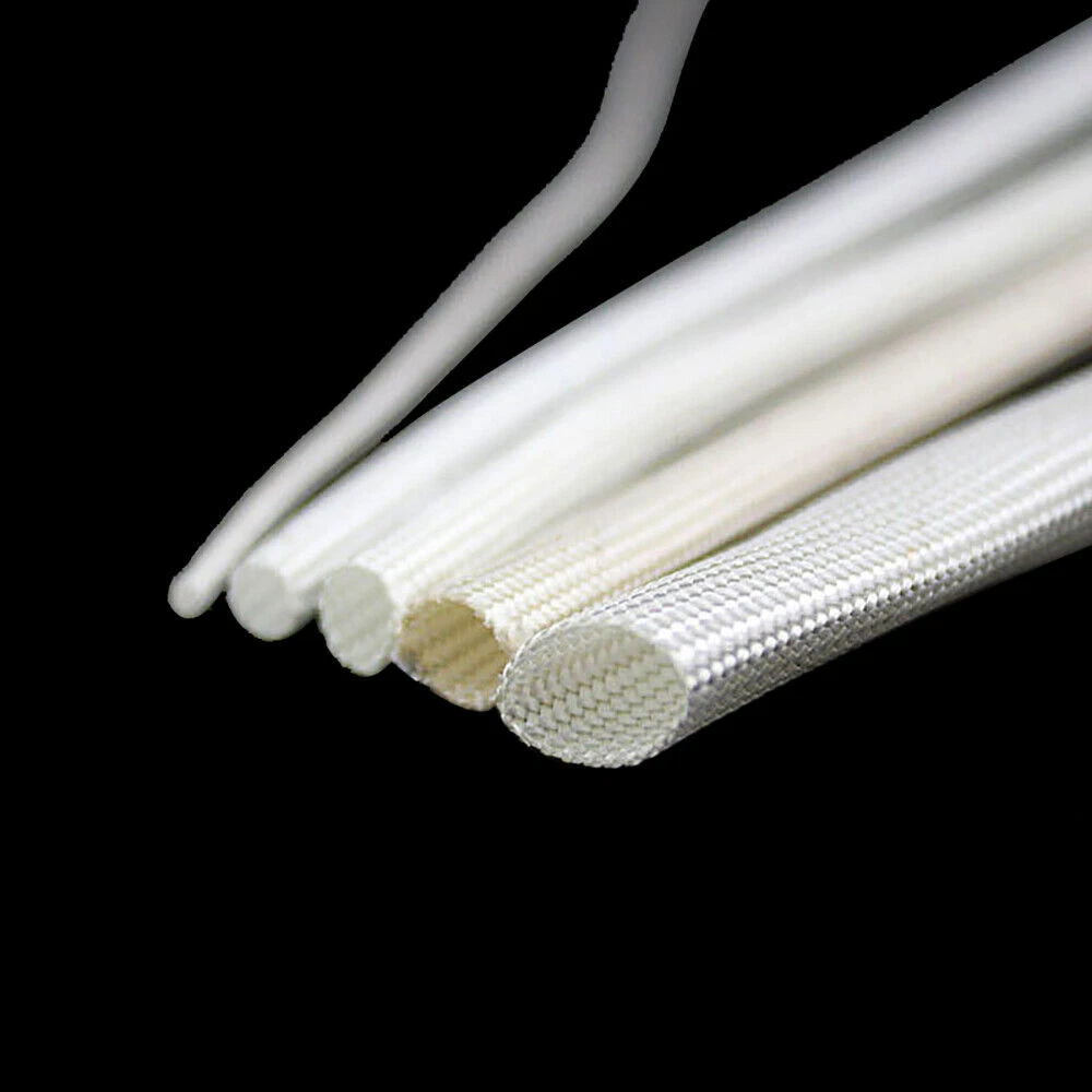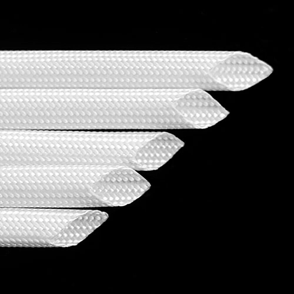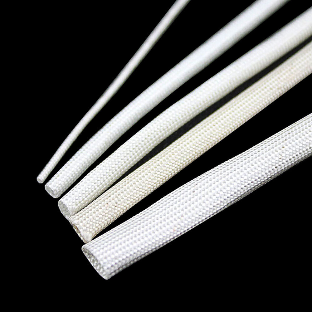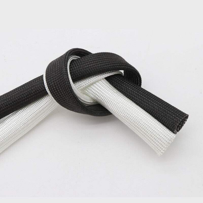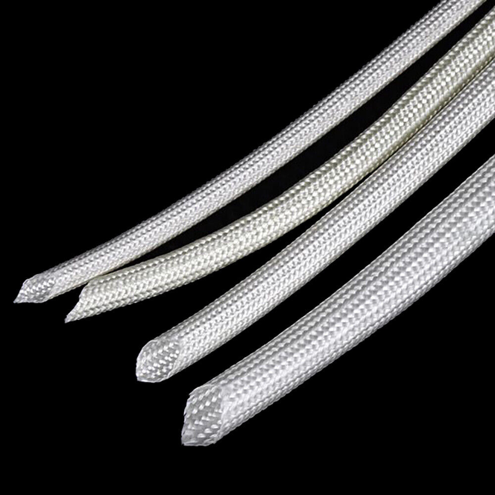 1mm - 50mm Flexible Fiberglass Braided Hose Insulation Tube Sleeve White Black