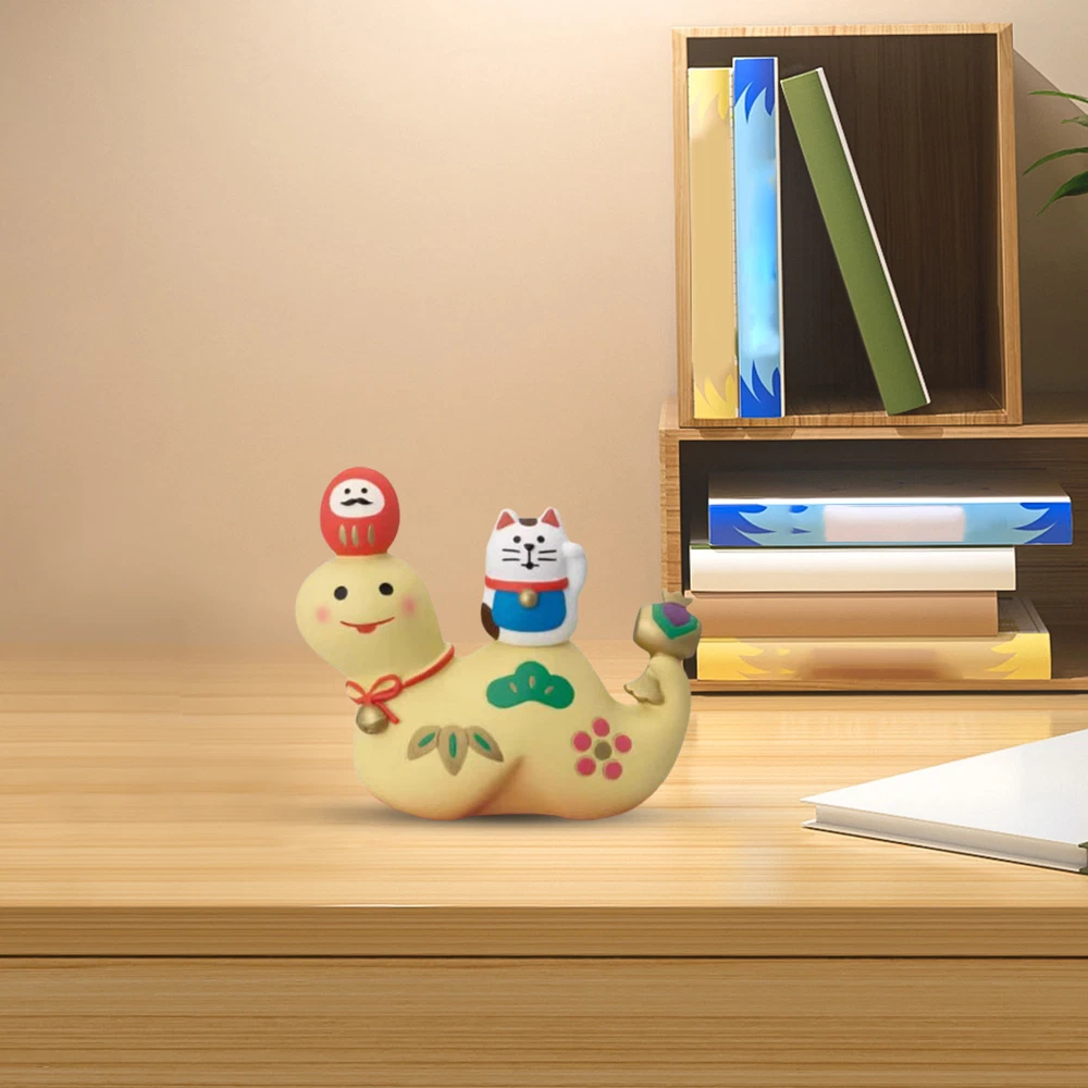 1pc 2025 Snake Year Fortune Cat Ornament Decoration Cute Animal Resin Sculpture