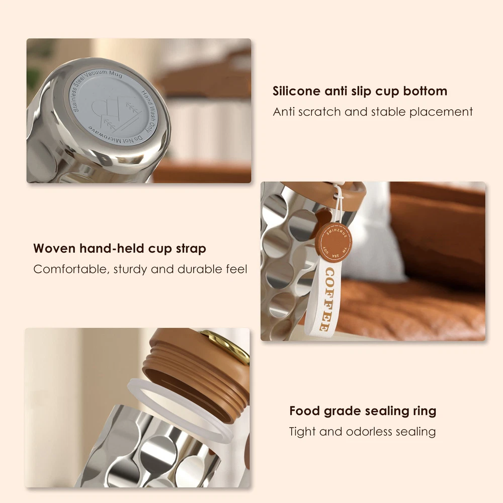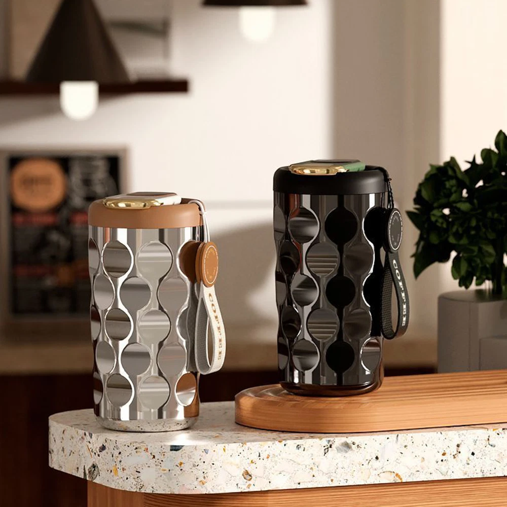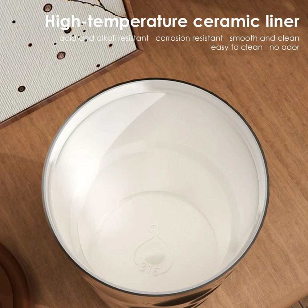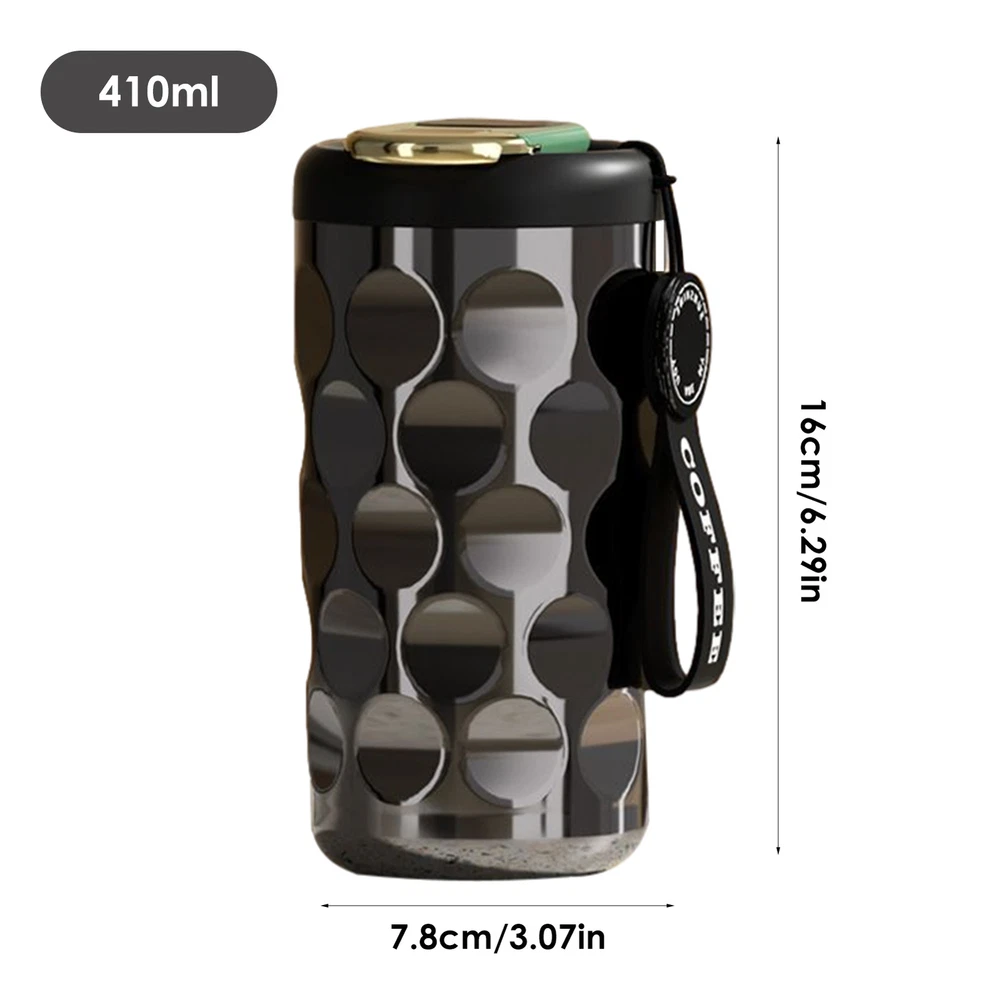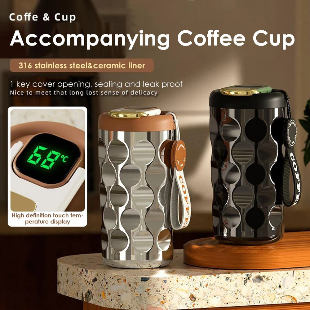 Bullet Points: Temperature Monitoring: The LED display of this stainless steel vacuum mug, powered by a built-in button battery and intelligent chip, accurately shows the temperature of your drink. Enjoy your beverage at your ideal temperature and avoid scalds. 316 Stainless Steel Inner: With a sleek design and a 316 stainless steel inner core, our vacuum mug has a 316 high-density ceramic coating lining that's safe and reliable. Plus, its excellent thermal insulation will keep your drinks hot or cold for longer without any hint of rust or oxidation. Unmatched Thermal Retention: Our Stainless Steel Vacuum Mug features a reinforced PP lid that maximizes air tightness and prevents leakage. The food-grade silicone seal ensures stable and leak-proof storage, while the non-slip silicone base adds stability. Keep your drink hot or cold for hours. With a Handy Handle: Experience long-lasting temperature control with our Stainless Steel Vacuum Mug that boasts a 6-layer insulation structure, keeping your drink hot or cold for more than 6 hours. The handy handle ensures easy portability without burdening your hand. Wide Range of Uses: Whether you're exploring the good outdoors, on a road trip, or chilling at home, this stainless steel vacuum mug keeps drinks hot or cold for hours. Perfect for all occasions, from camping expeditions to party gatherings, it's a reliable companion. Experience excellent temperature retention with our Vacuum Insulated Mug. The 316 stainless steel inner and 6 layers of insulation structure ensure your drink stays hot or cold. With a non-slip stable base, it's perfect for any environment or place. Plus, it's easy to correctly read the temperature. Specification: Material: Shell: 304 stainless steel; Liner: Ceramic; Lid: Food grade PP; Sealing ring: silicone for food contact Volume: 410ml Weight: About 350g Performance: Cold resistance -40 degrees Celsius/heat resistance 100 degrees Celsius Packing List: 1pcs* Insulated Coffee Mug 1pcs* Instructions in Chinese and English Note: Due to different lighting and screen settings, the item color may be slightly different from the picture. Due to different manual measurements, please allow a 1-2cm difference in size.
